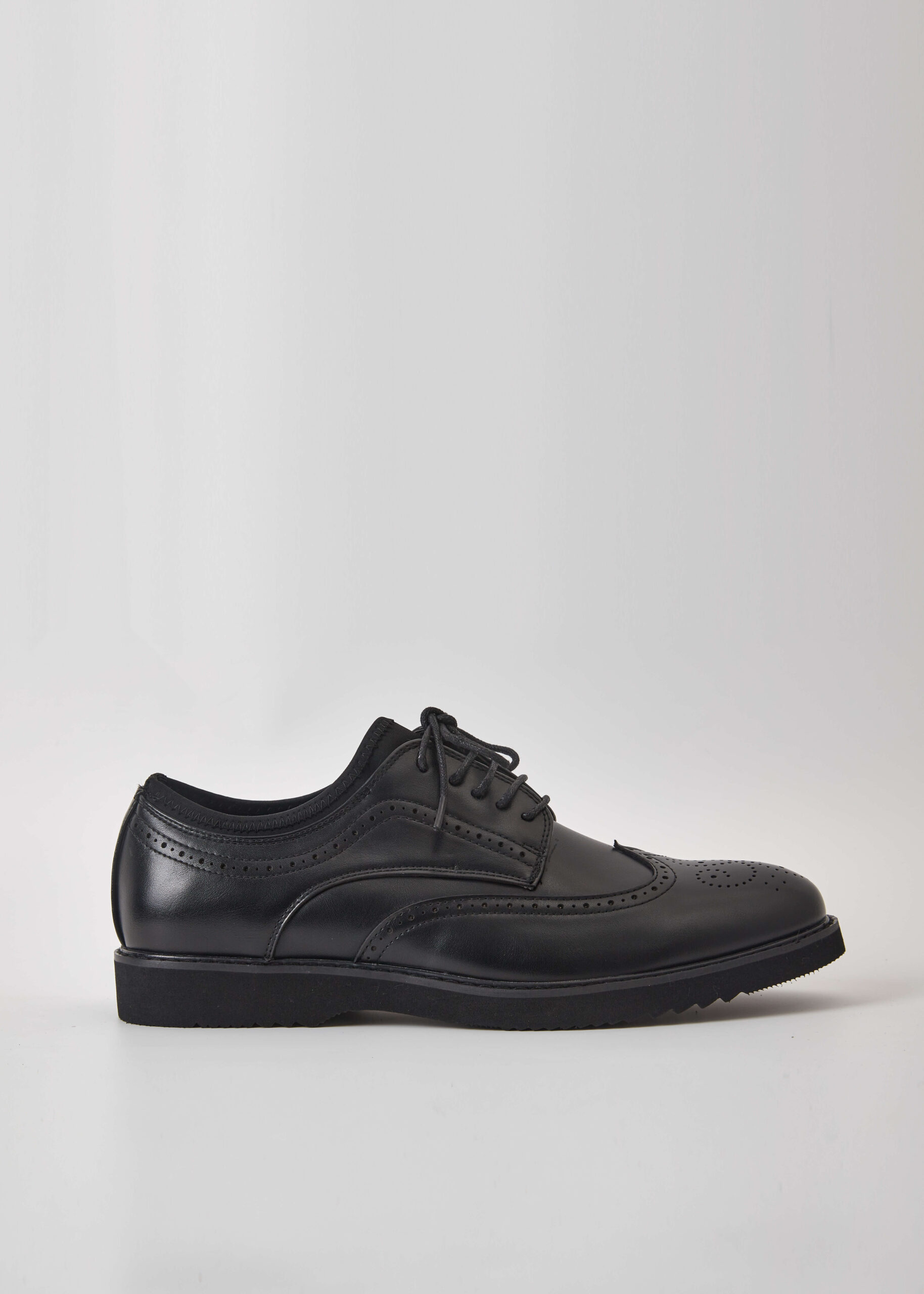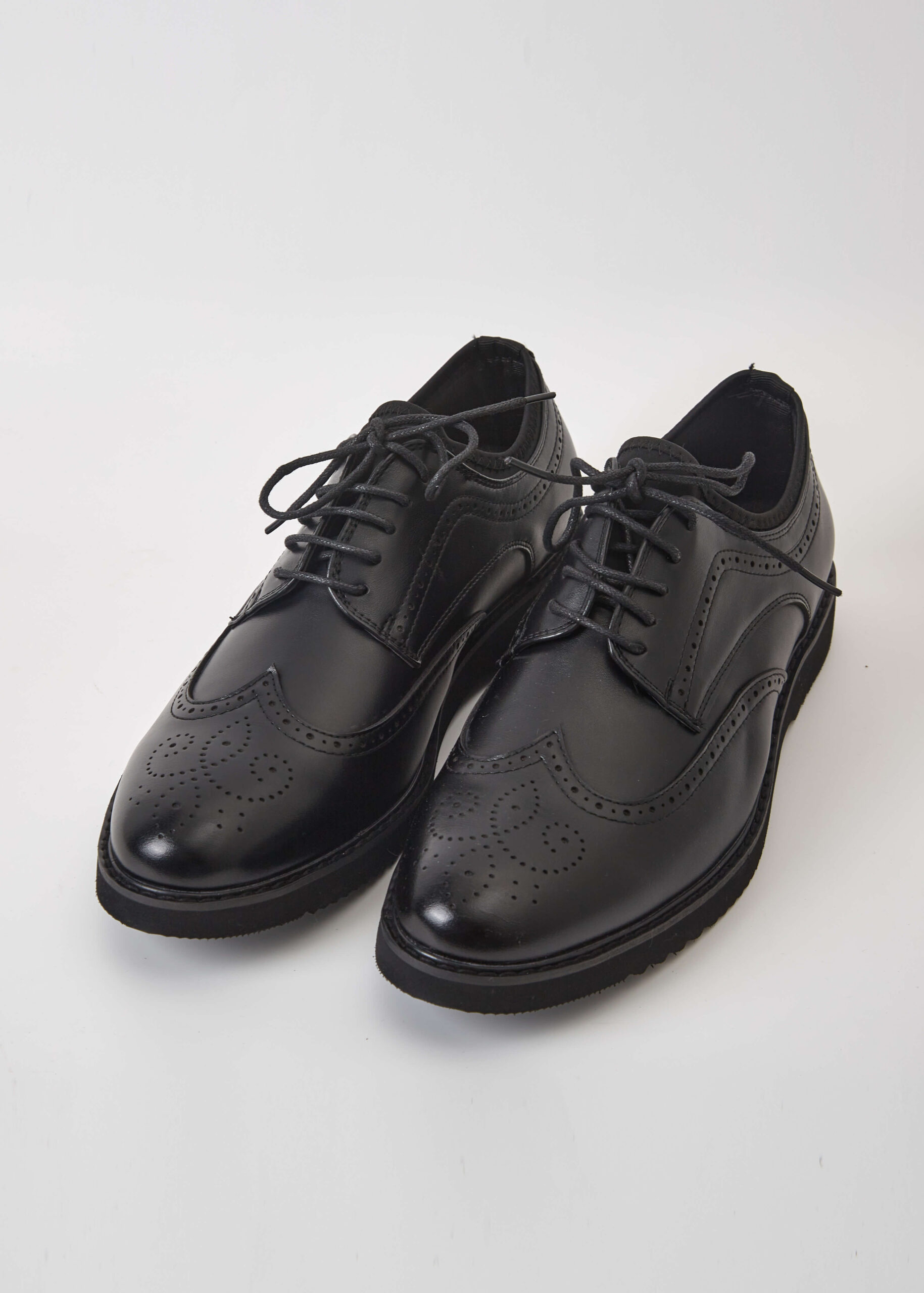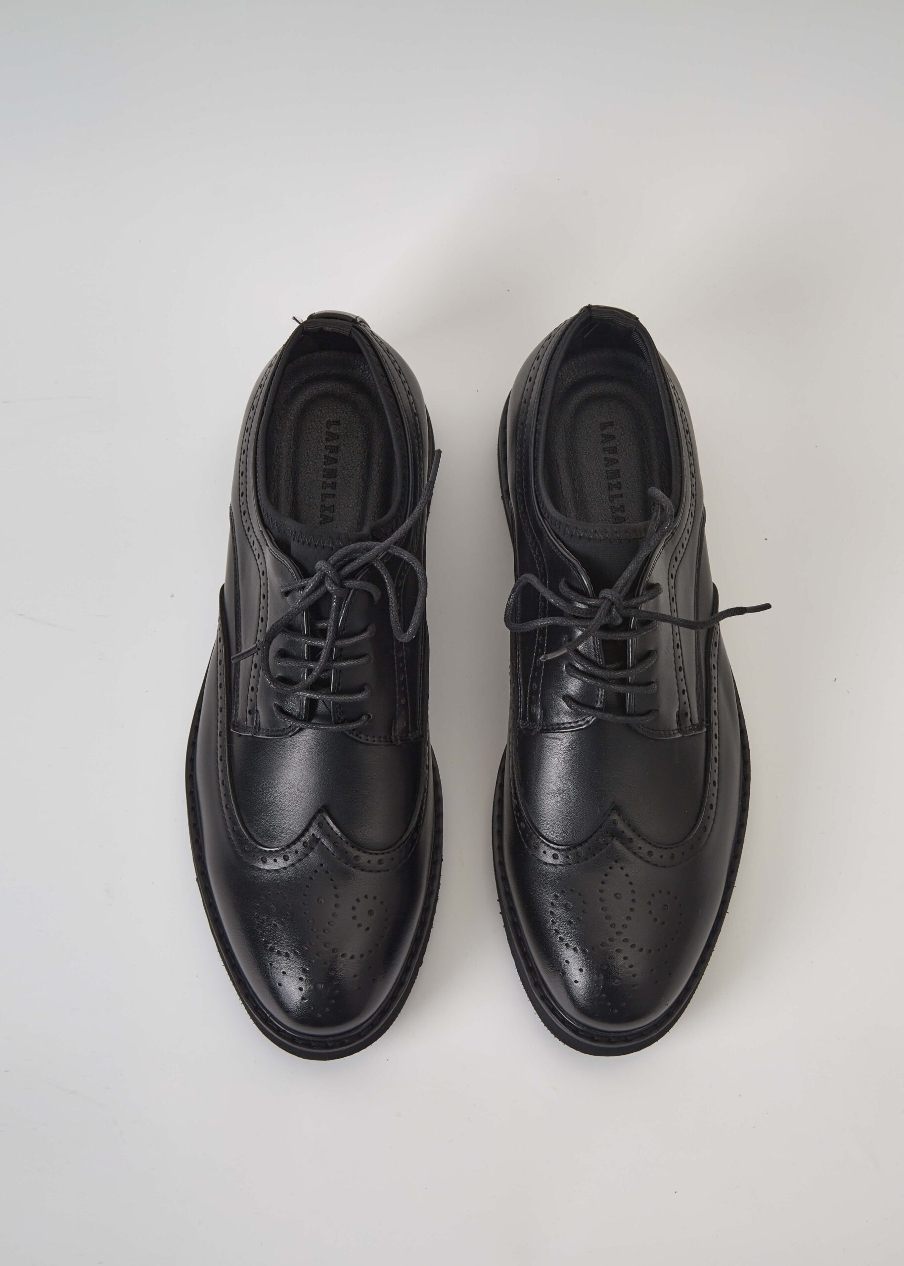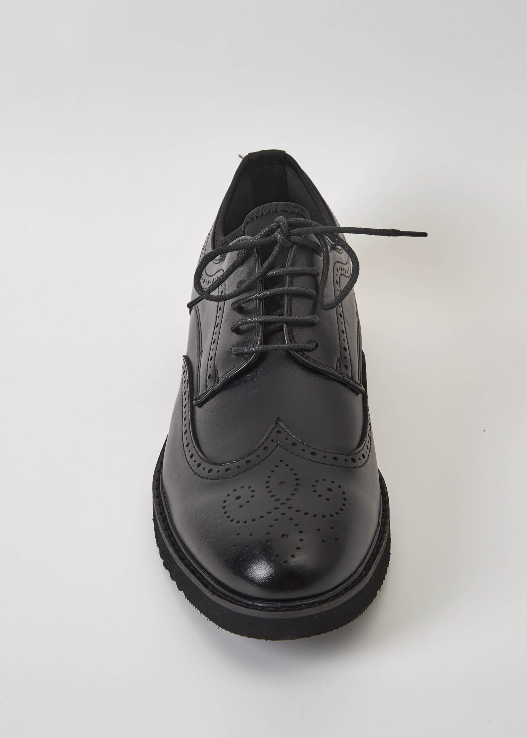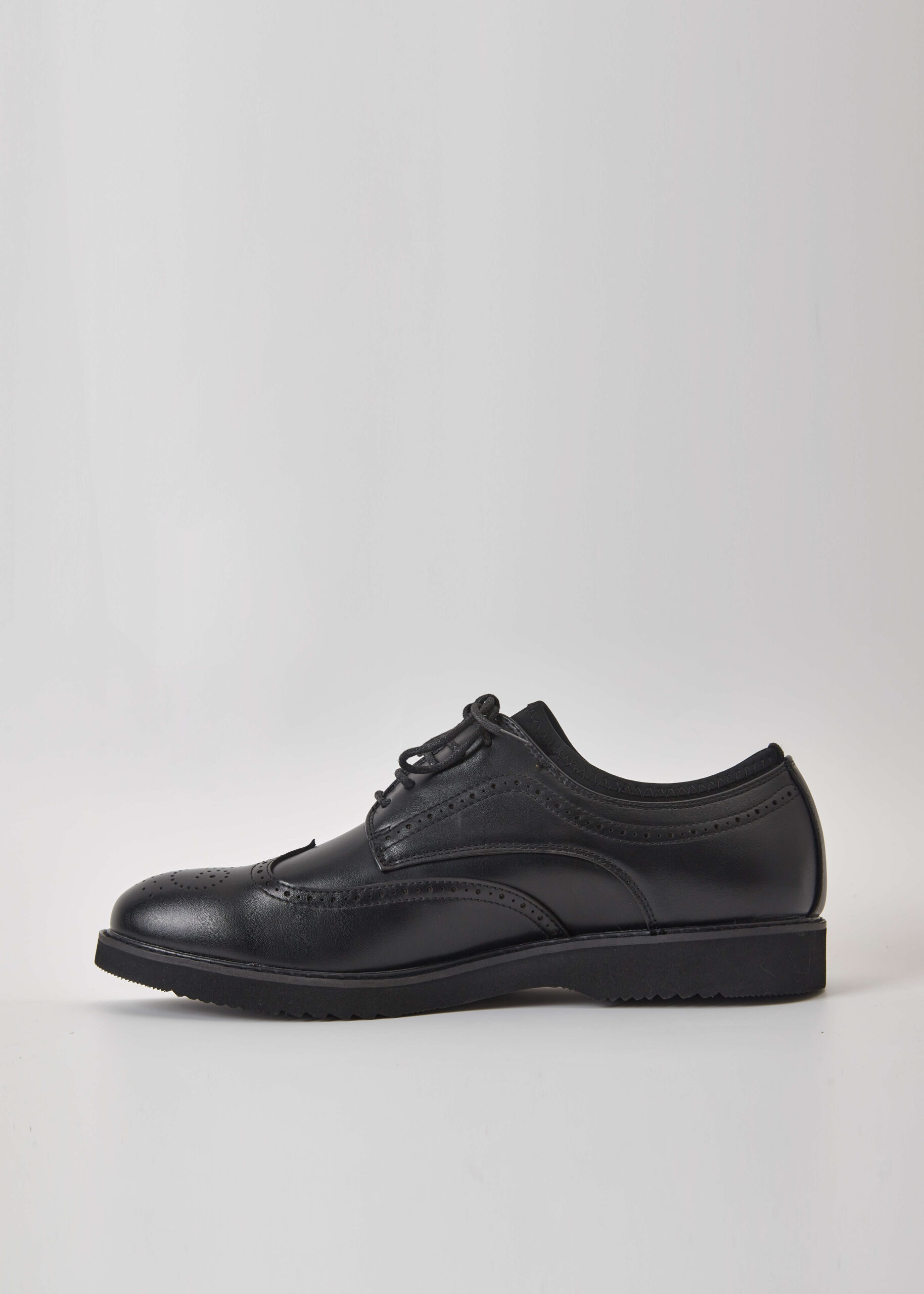 حذاء رجالي, جلد, مقدمة مدورة, نعل مطاطي, رباط امامي, تصميم مزخرف, انيق وعصري