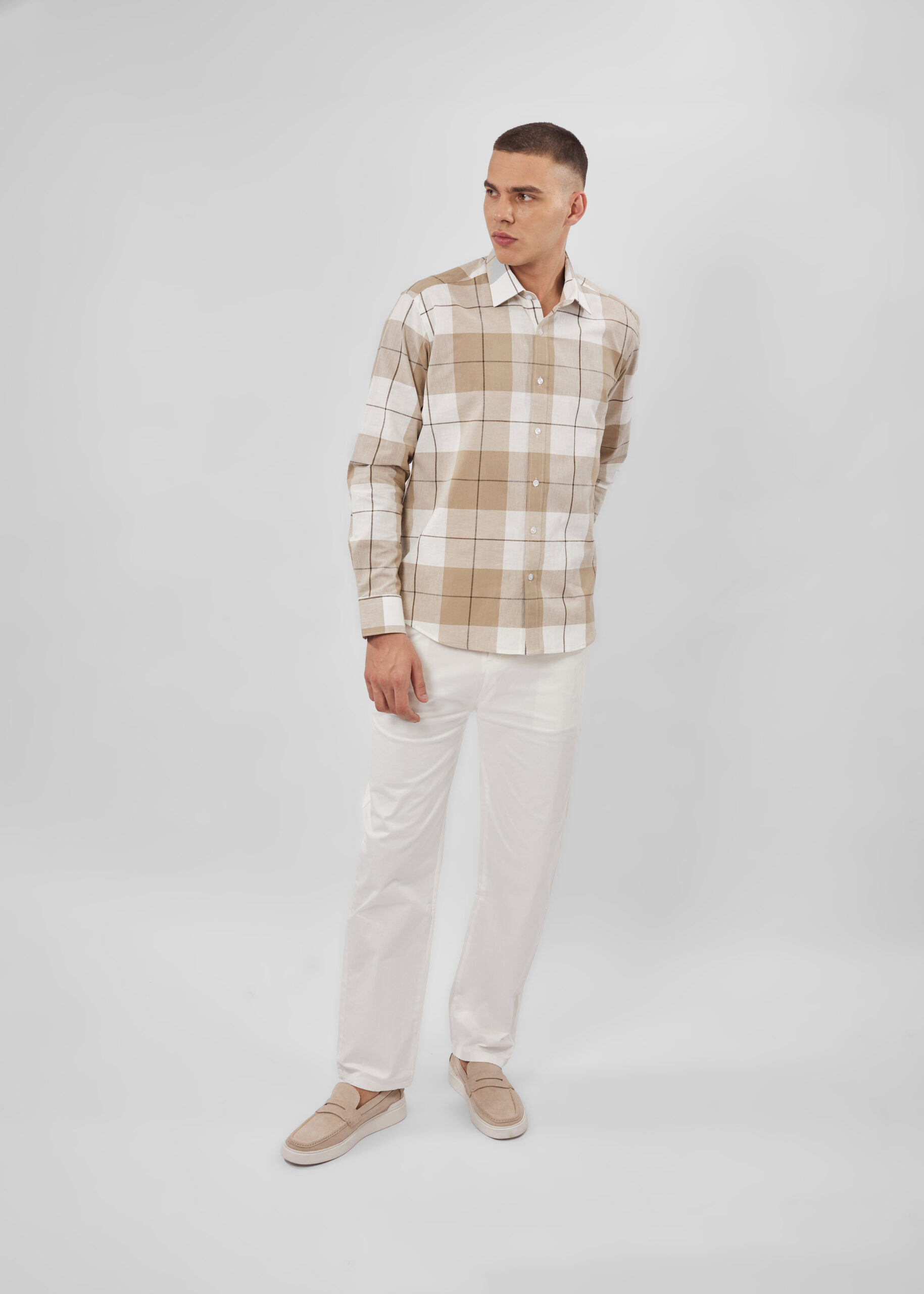 قميص رجالي, Slim-Fit, كاروهات, ازرار من الامام للاغلاق, ياقة مثنية مع زر من الامام, اكمام طويلة مع معصم ضيق, انيق وعملي