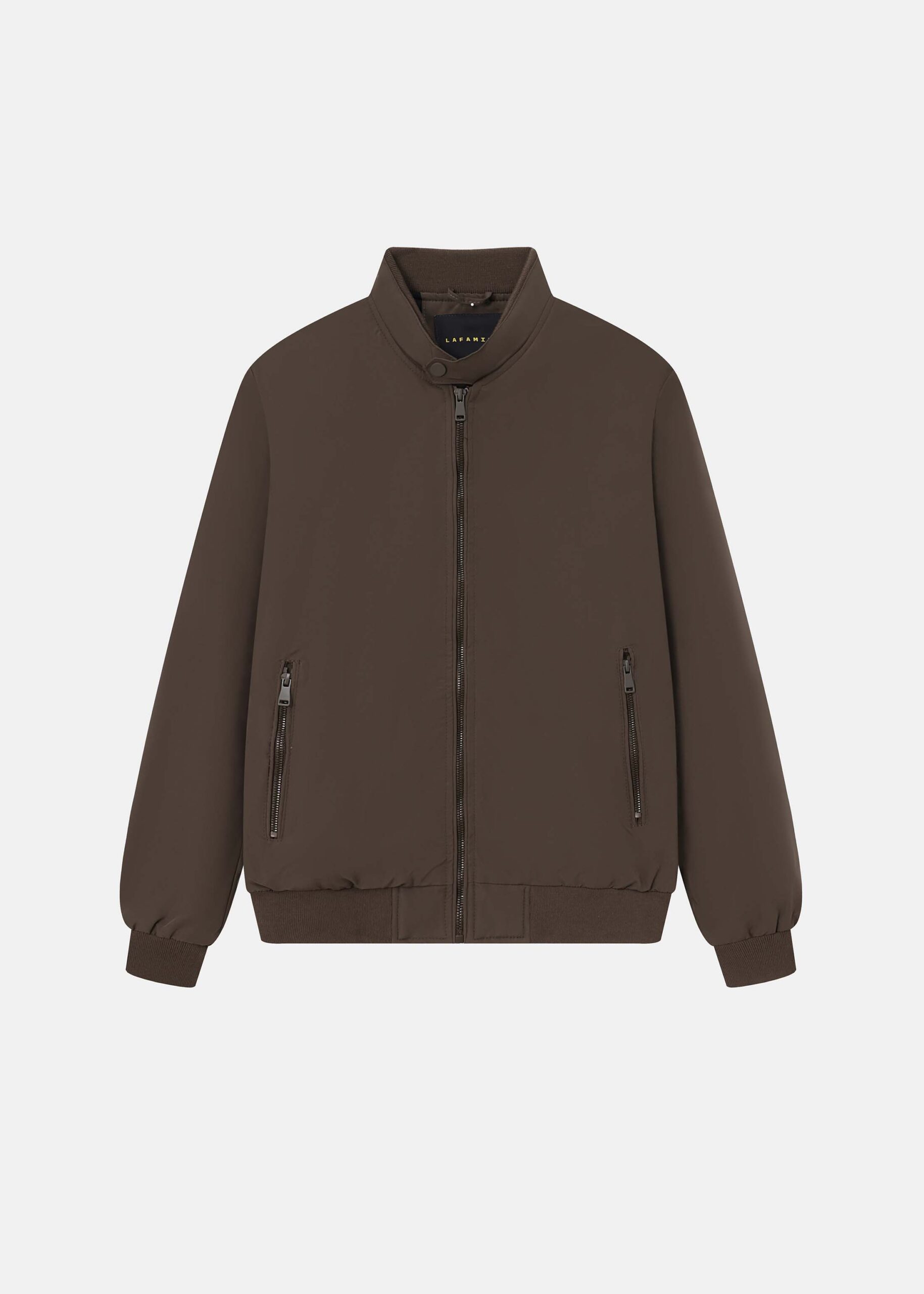 Men jacket, plain, stand collar with front button, long sleeves with tight cuff, front pockets with zipper closure, front zipper closure, unique and practical