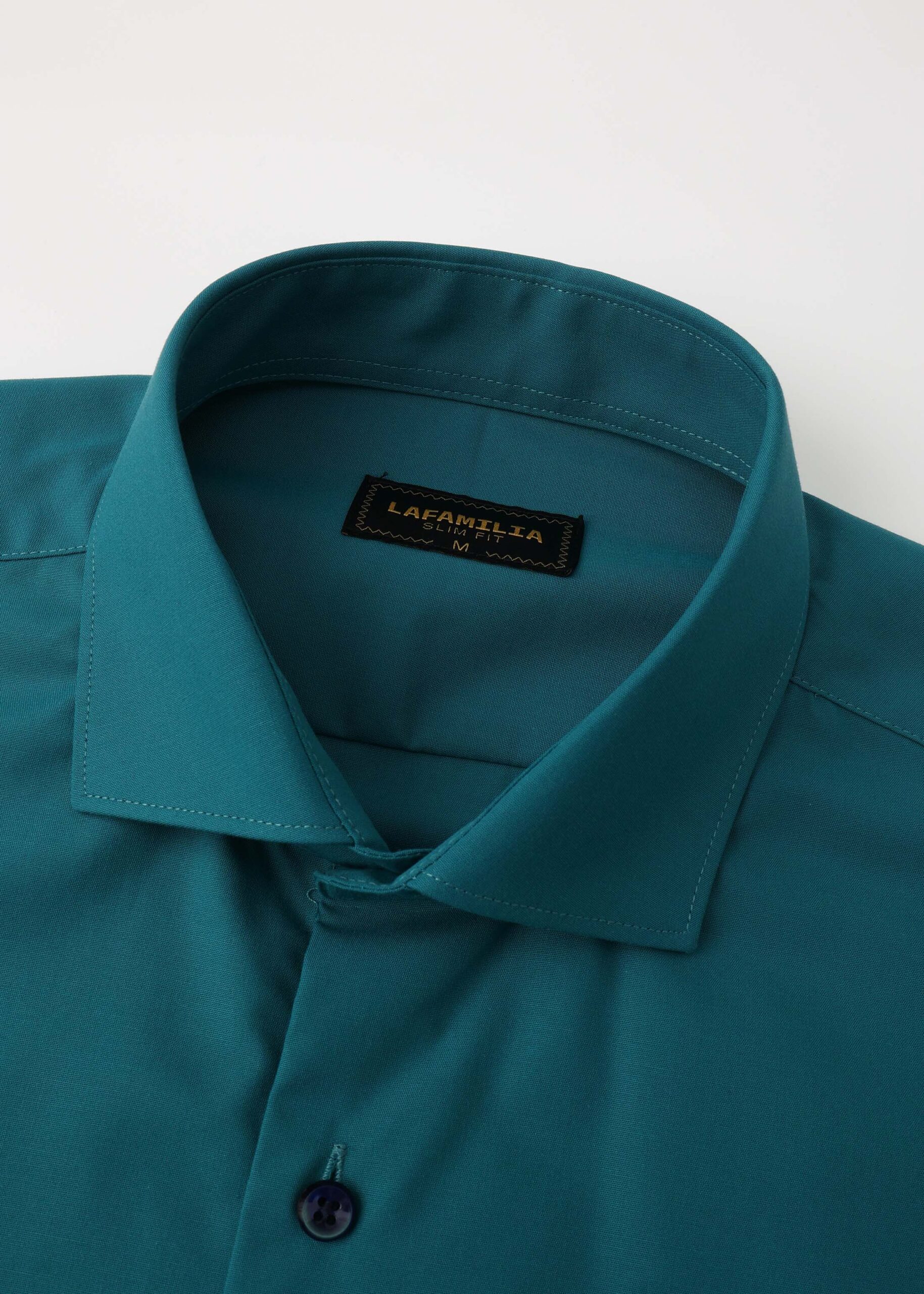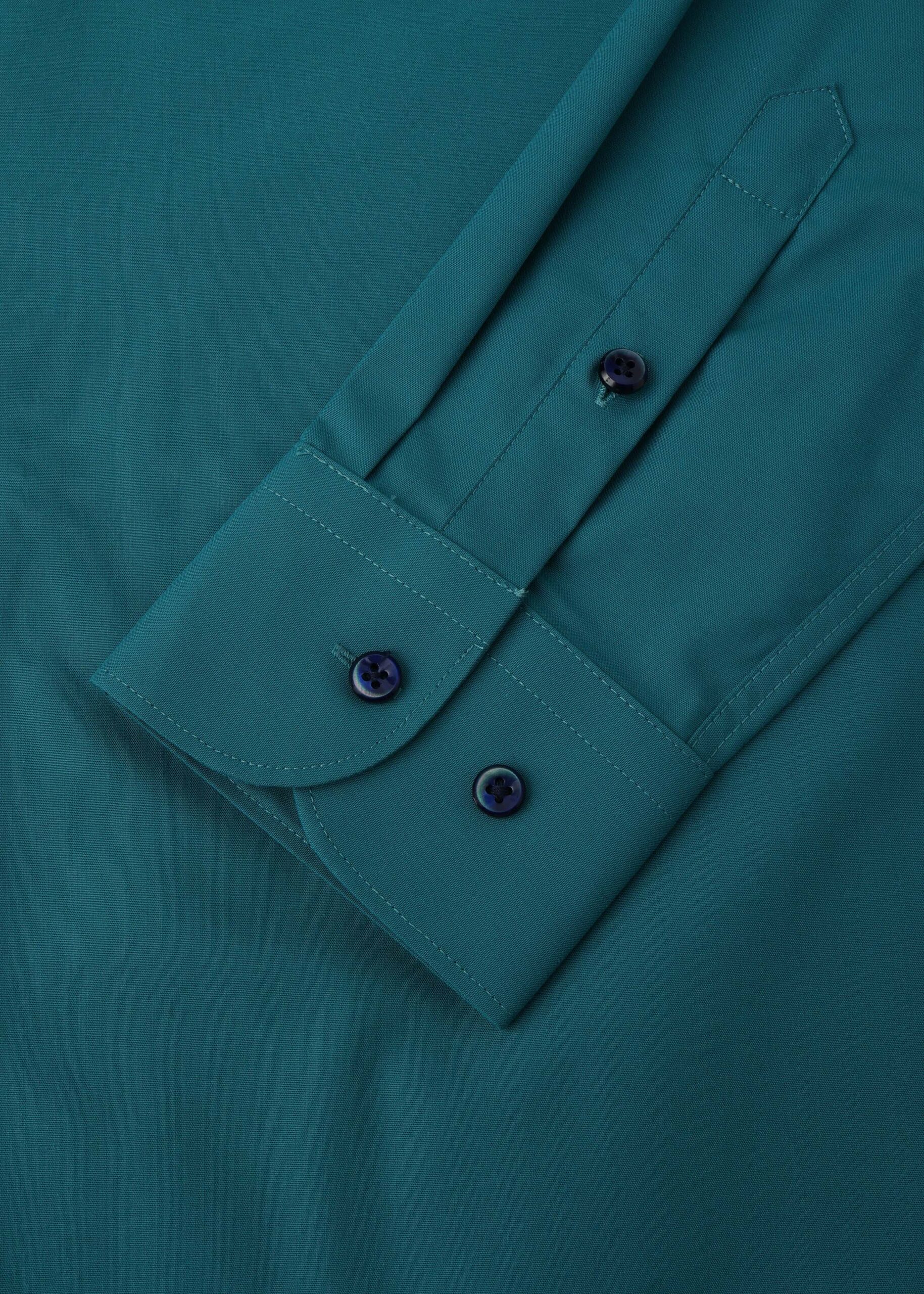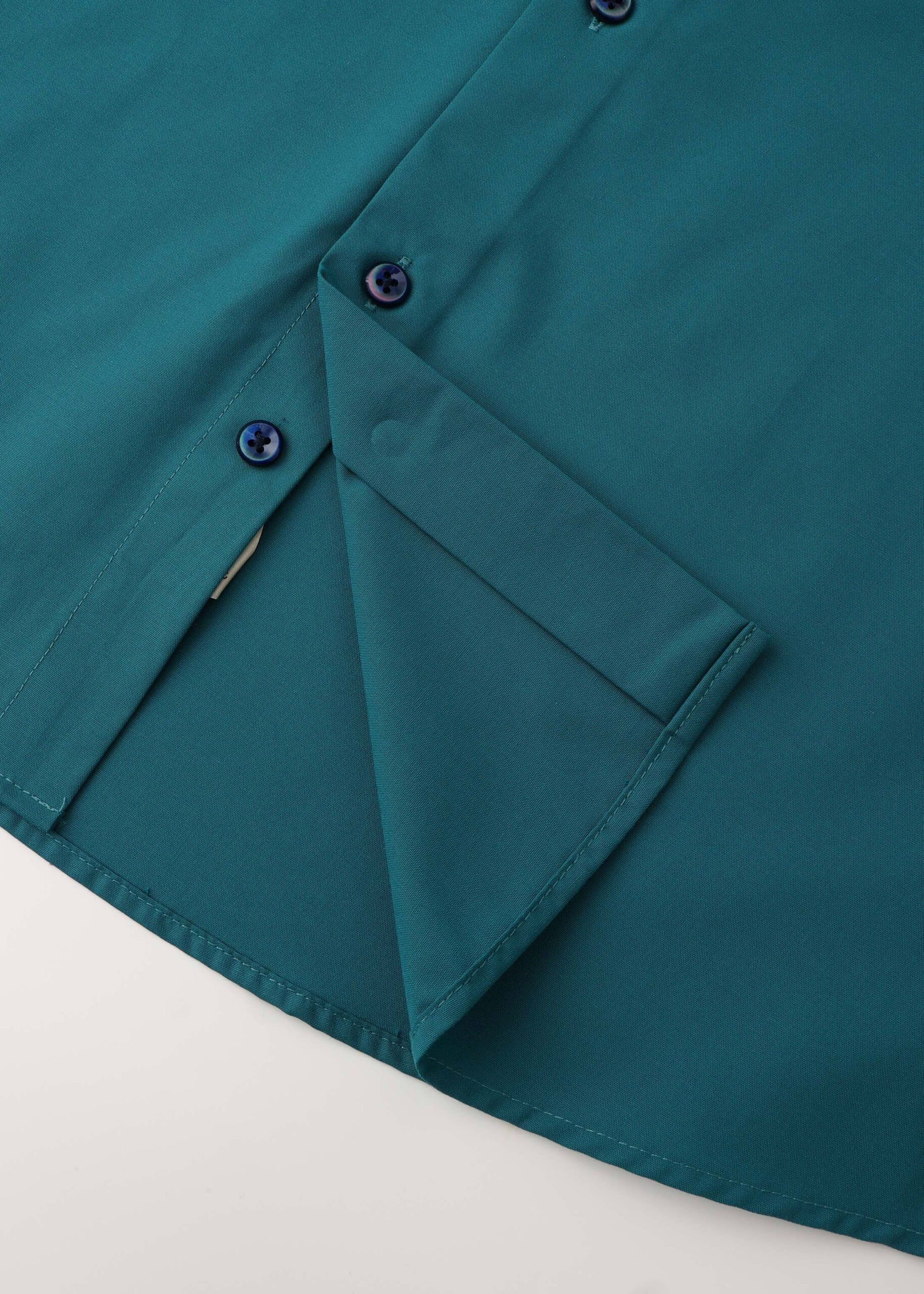 قميص رجالي, Slim-Fit, سادة, ازرار من الامام للاغلاق, ياقة مثنية مع زر من الامام, اكمام طويلة مع معصم ضيق, انيق وعملي