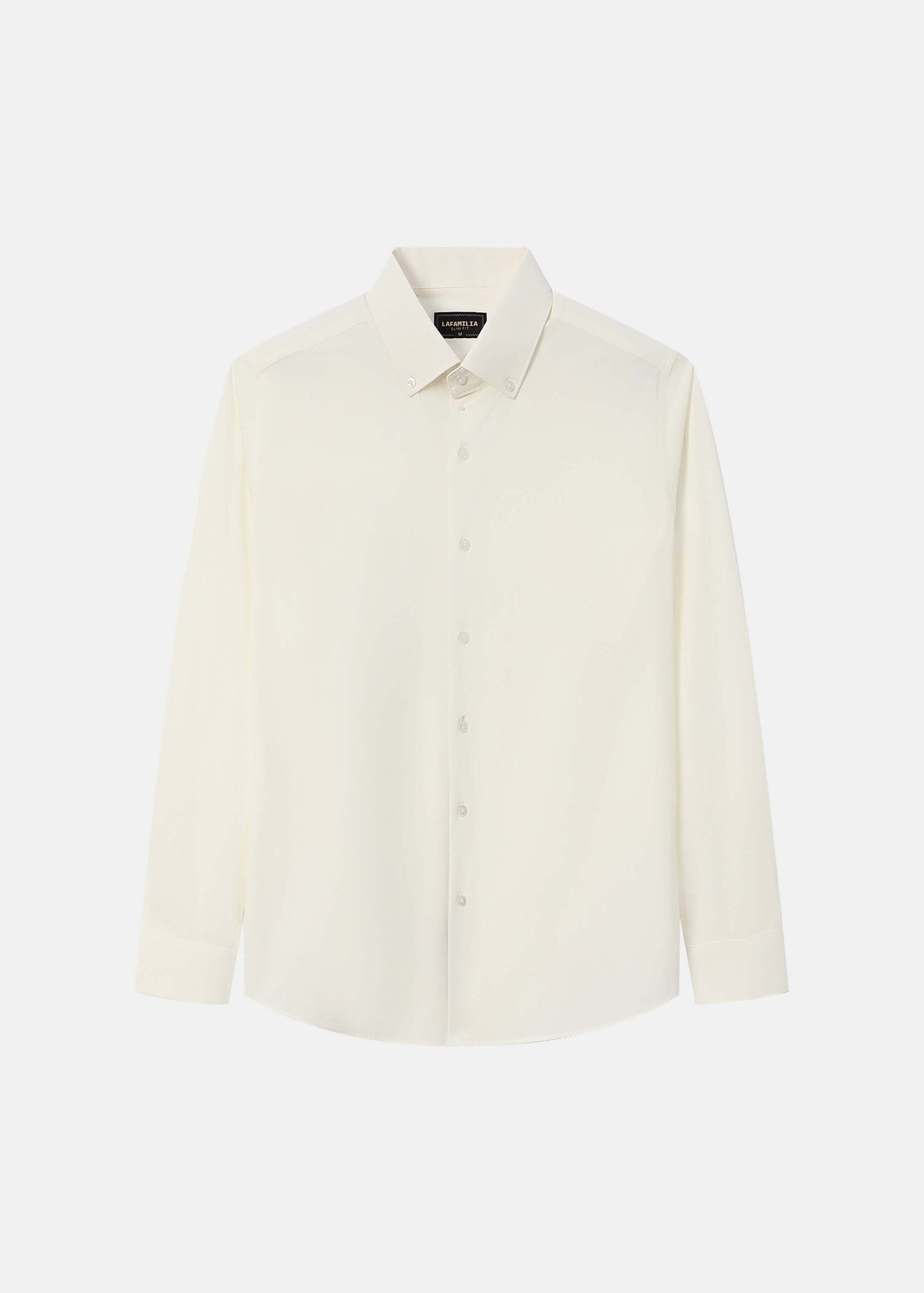 قميص رجالي, Slim-Fit, سادة, ازرار من الامام للاغلاق, ياقة مثنية مع زر من الامام, اكمام طويلة مع معصم ضيق, انيق وعملي