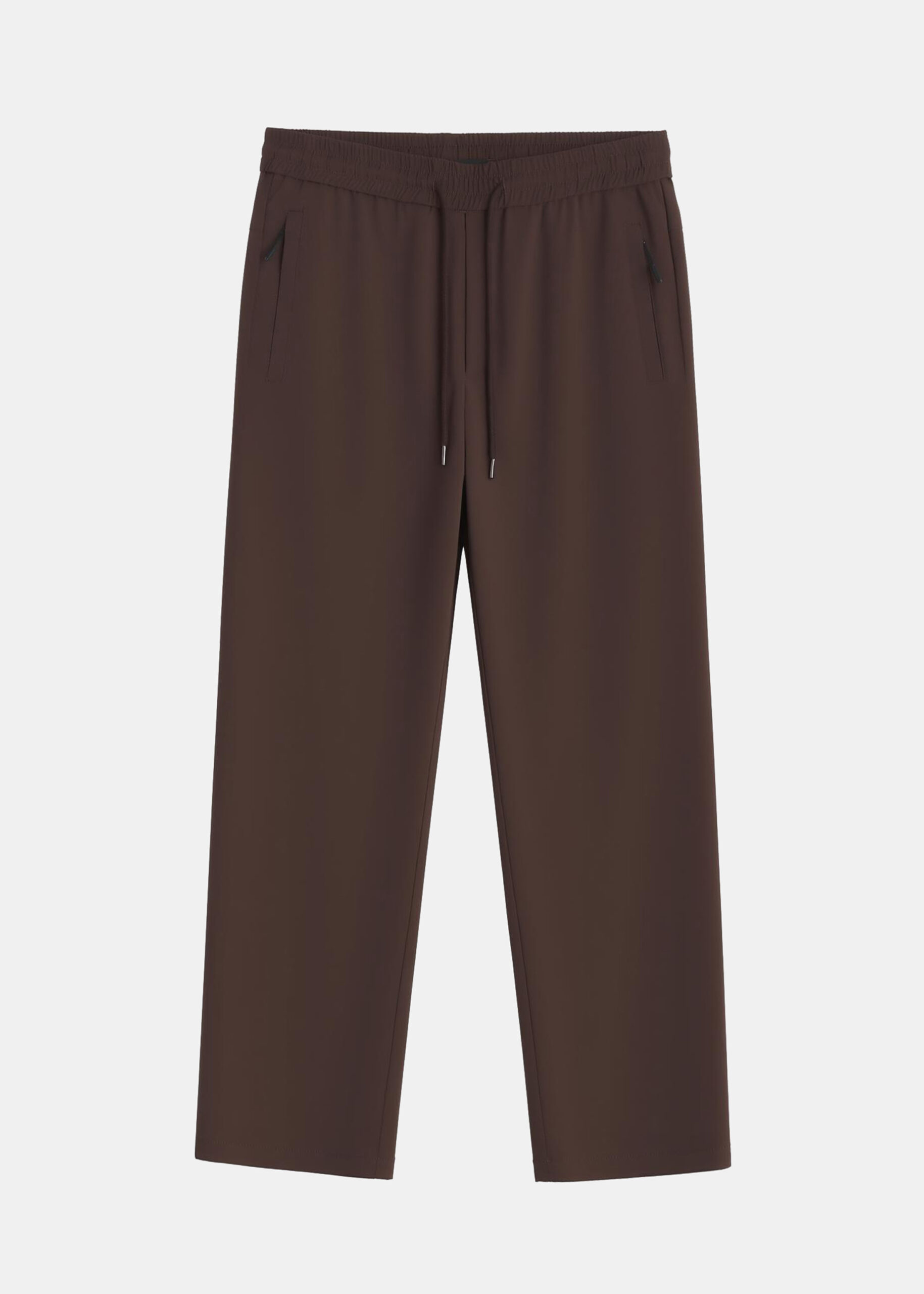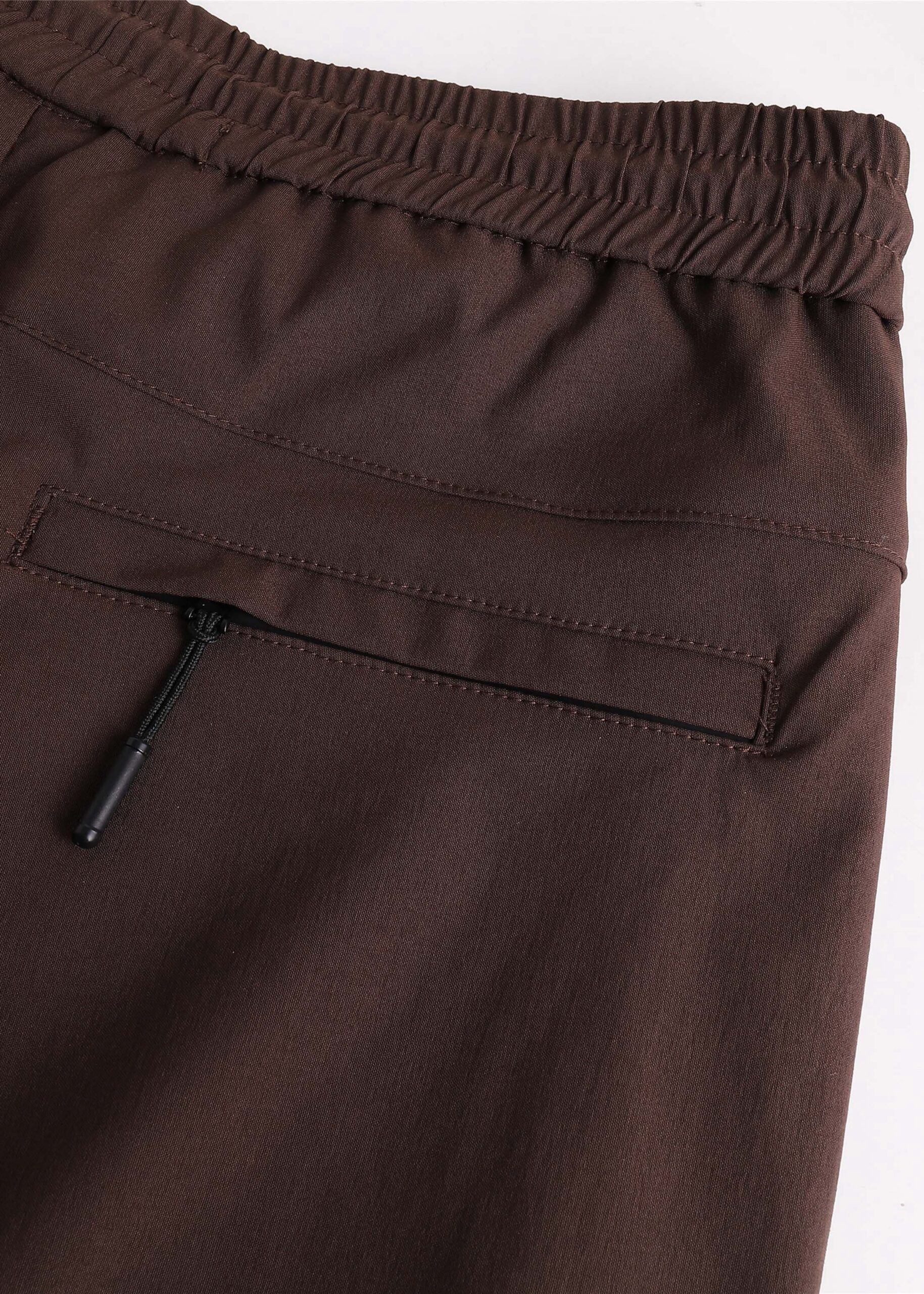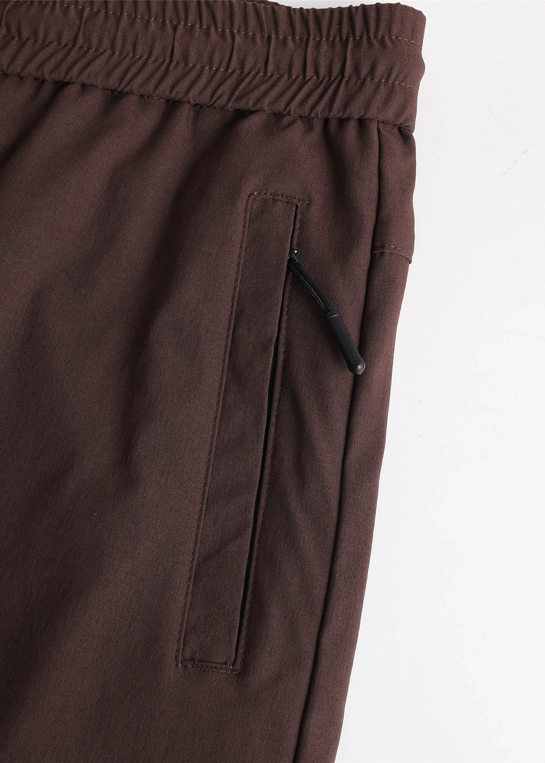 Men trouser, plain, elastic waist with front tie, , front and back pockets with zip closure, unique and modern