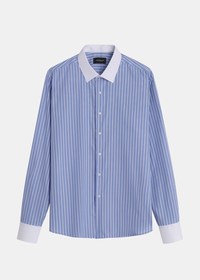 قميص رجالي, Regular-Fit, مخطط, ياقة سادة مثنية, ازرار من الامام للاغلاق, اكمام طويلة مع معصم سادة وازرار للاغلاق, انيق وعصري