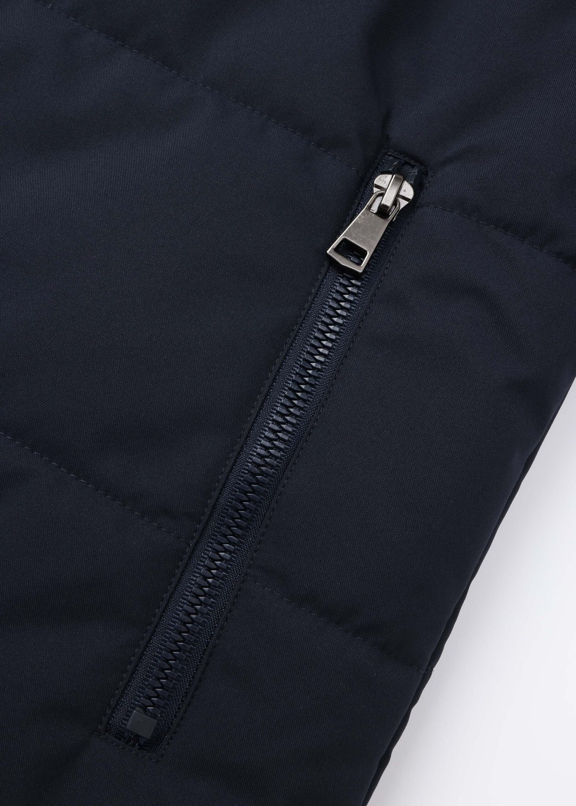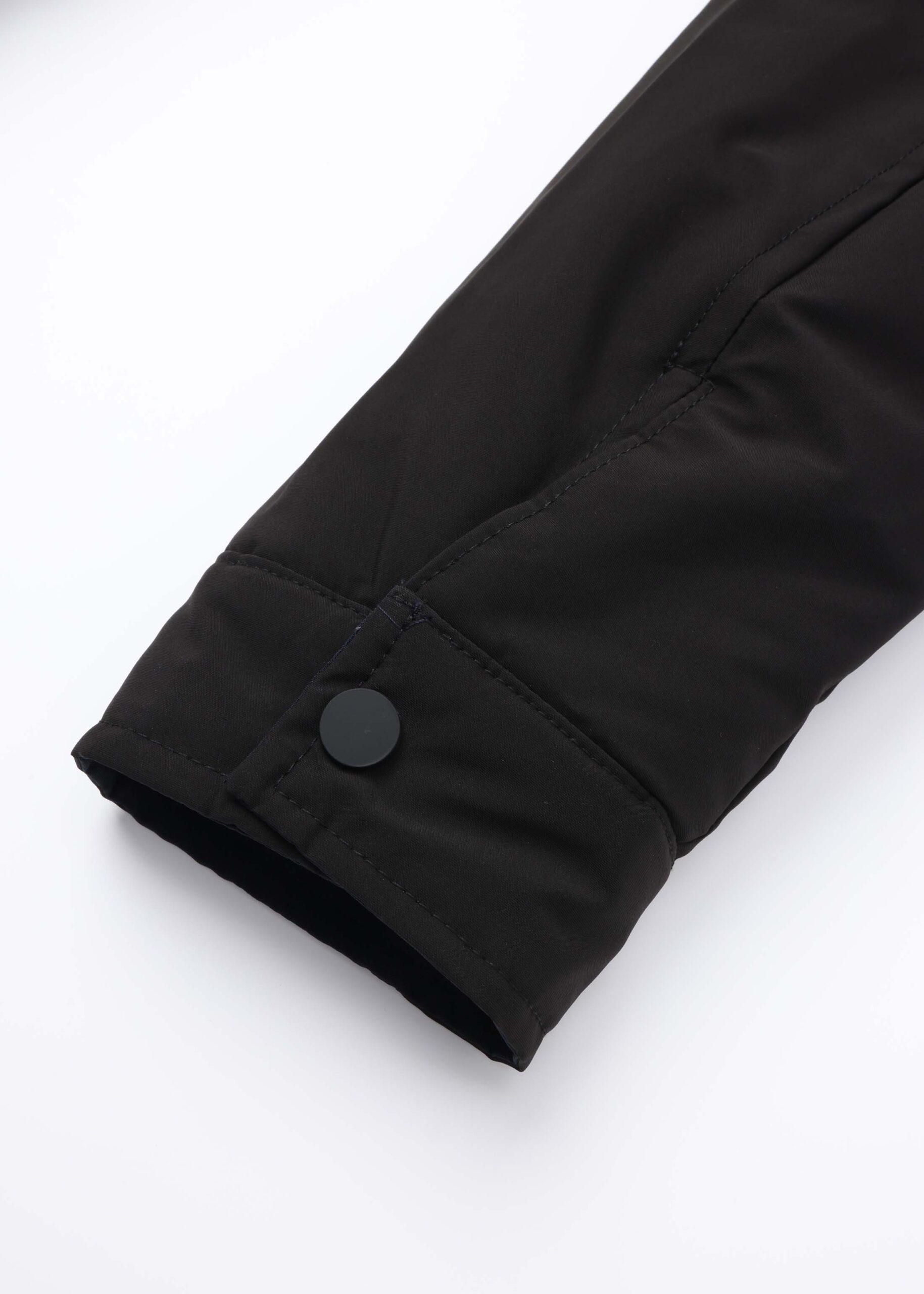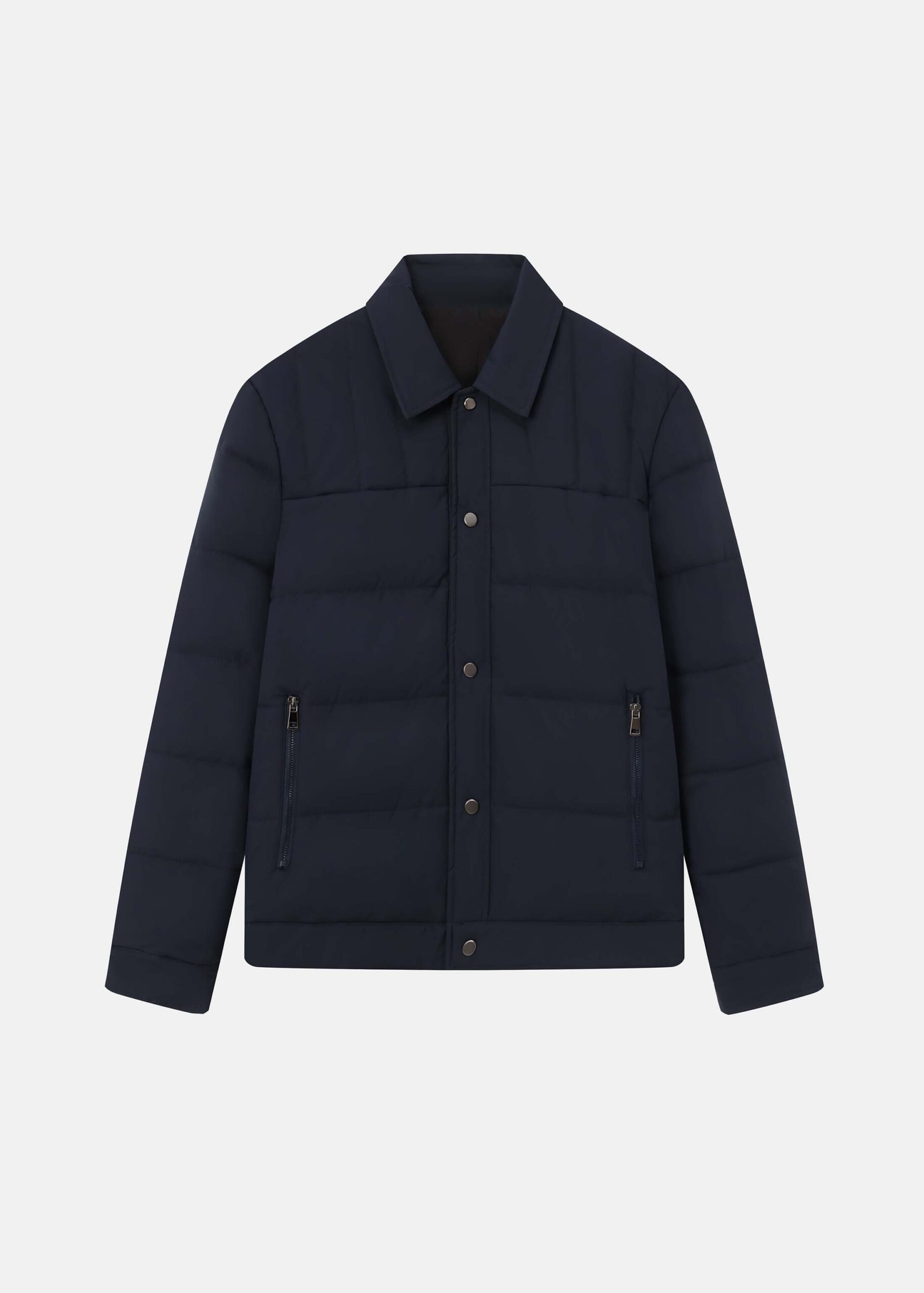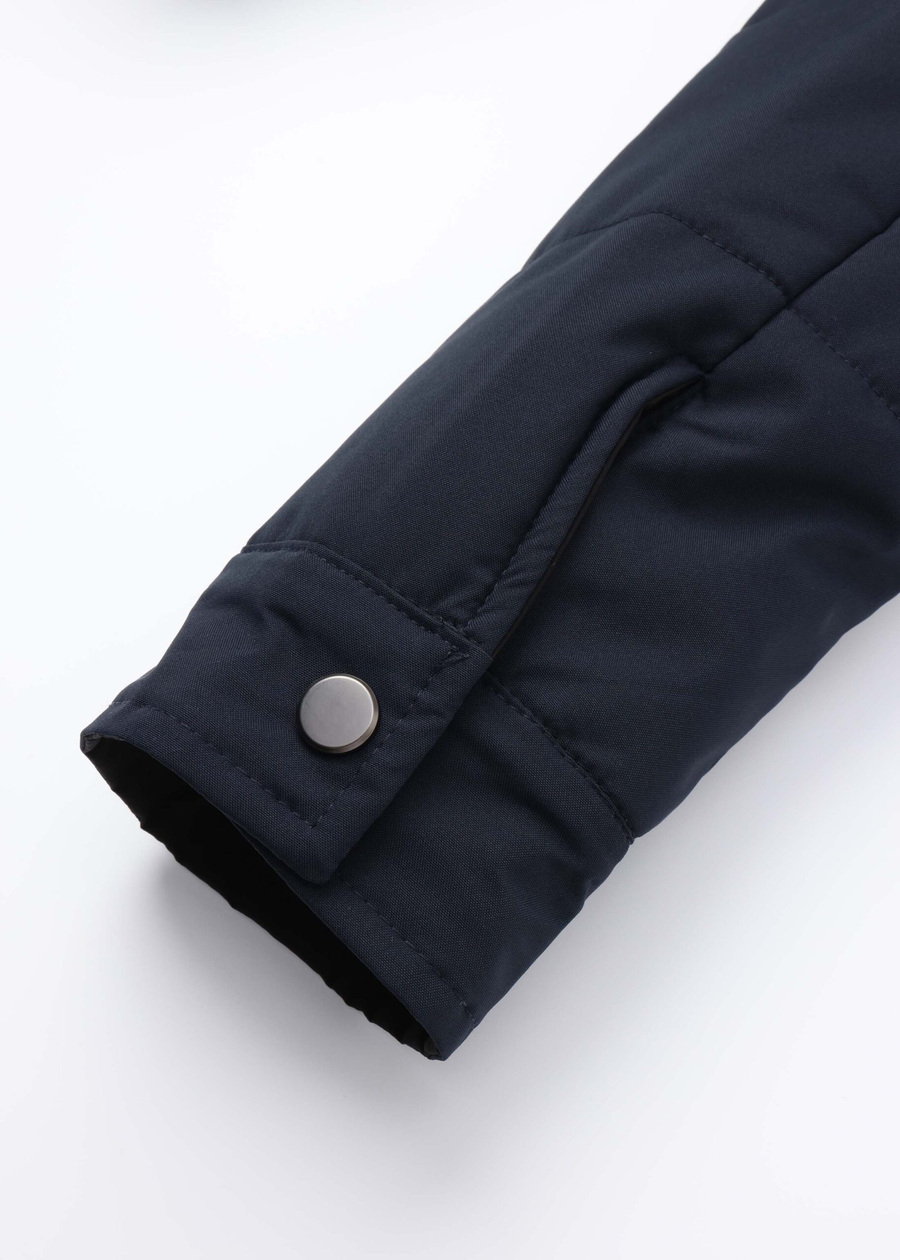 Men jacket, reversible, two-tone, padded side, plain side, front pockets, front buttons to close, long sleeves with tight cuff, rolled collar, warm and practical