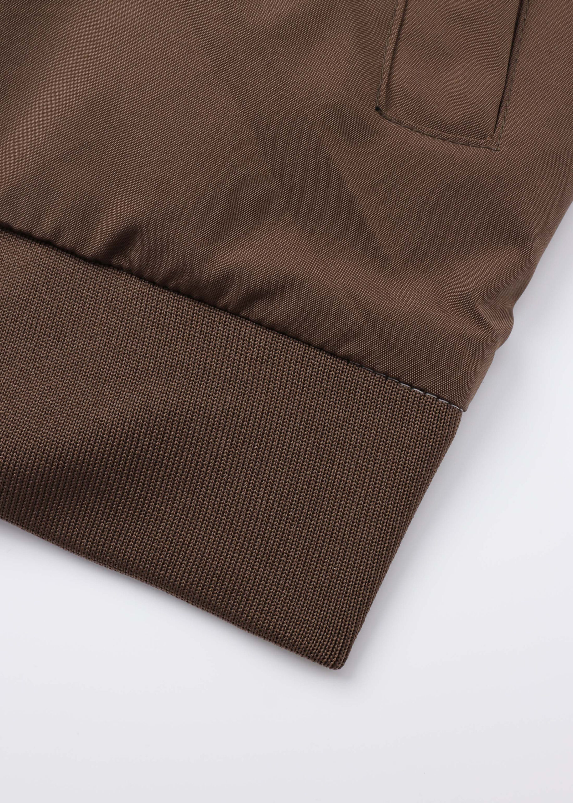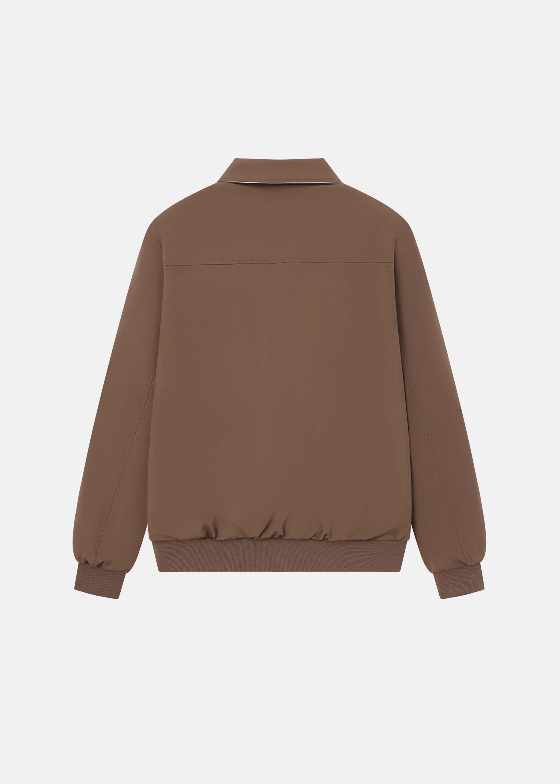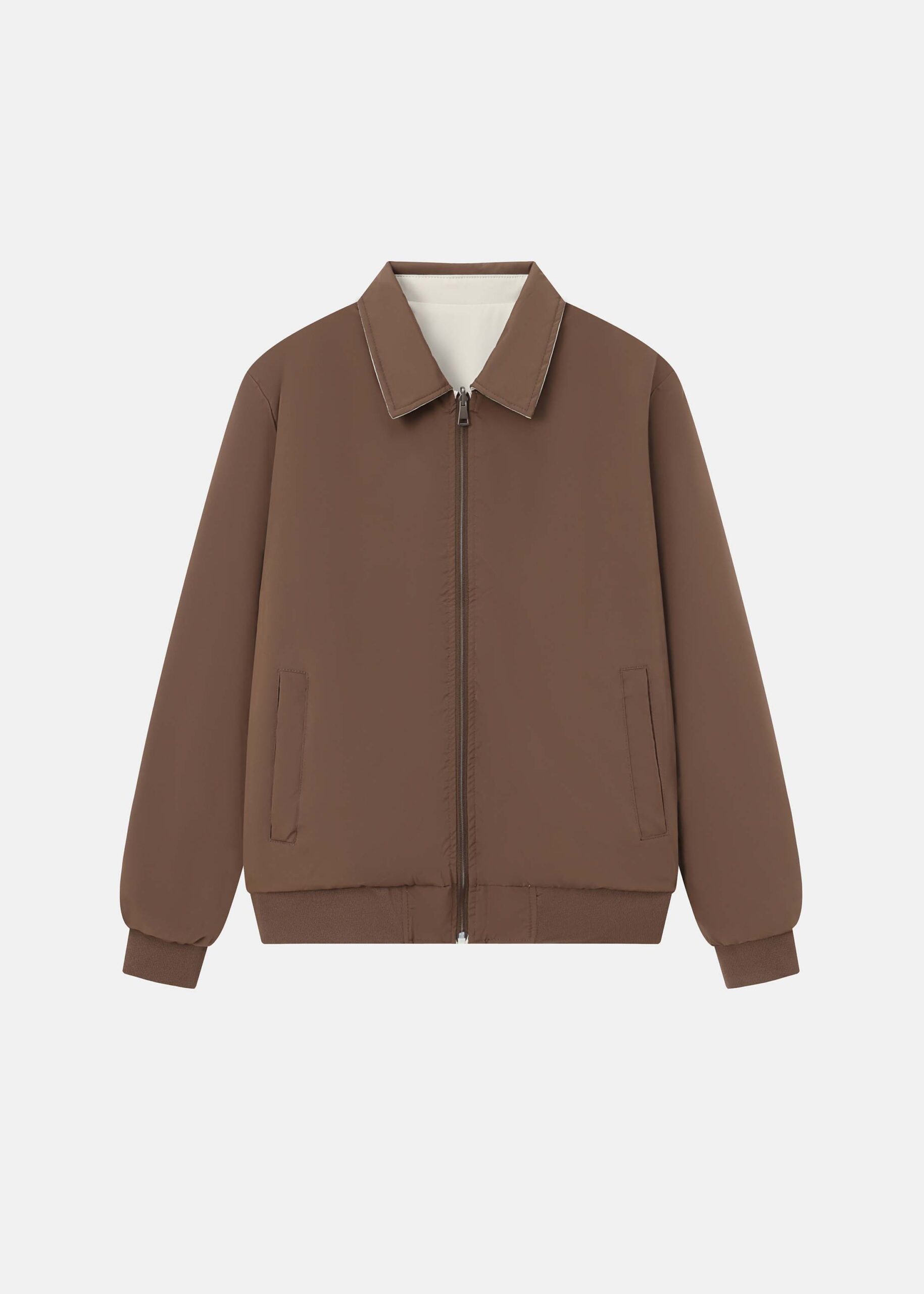 Men jacket, reversible, two-tone, rolled collar, front zipper closure, front pockets, long sleeves with tight cuff, unique and modern