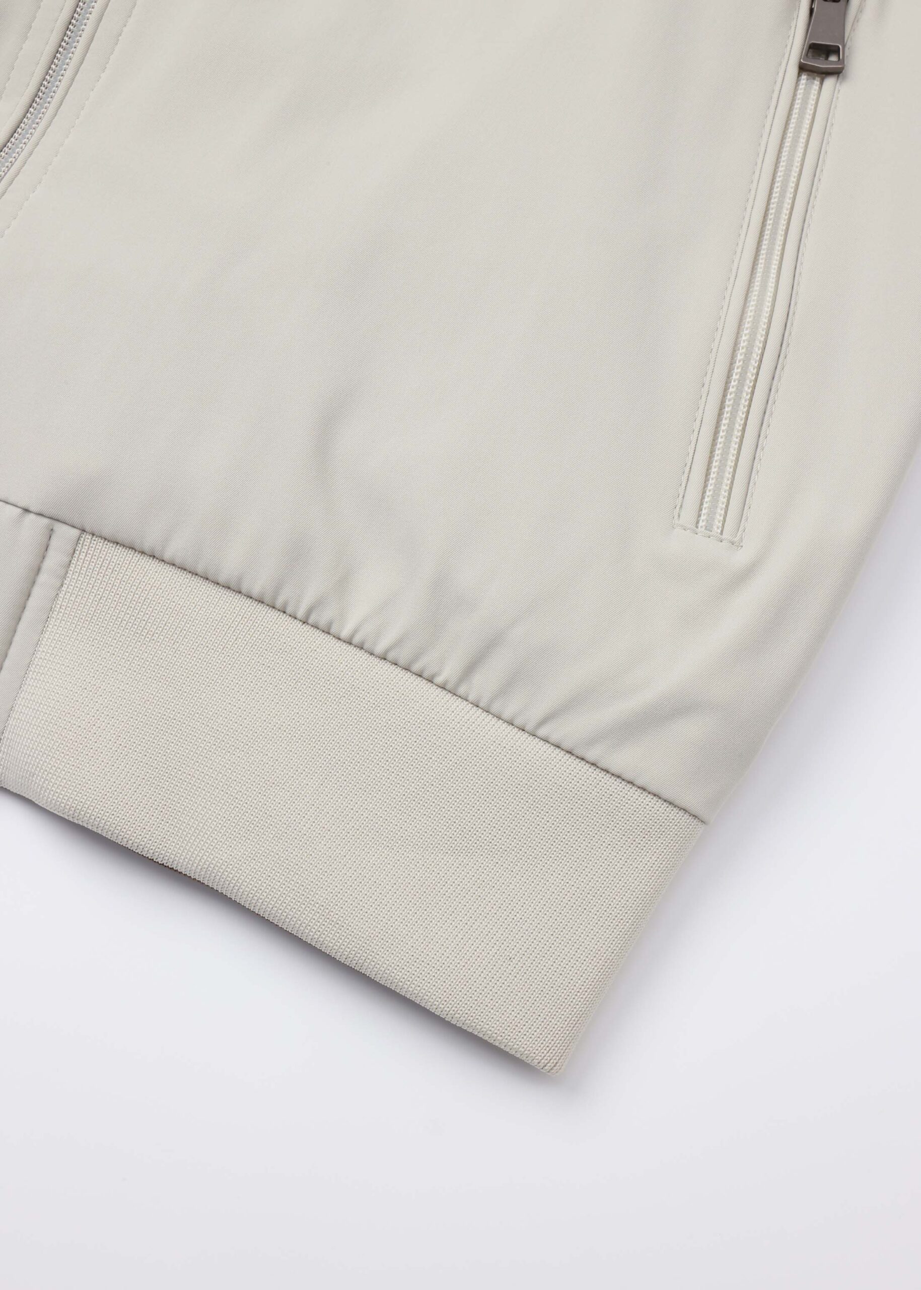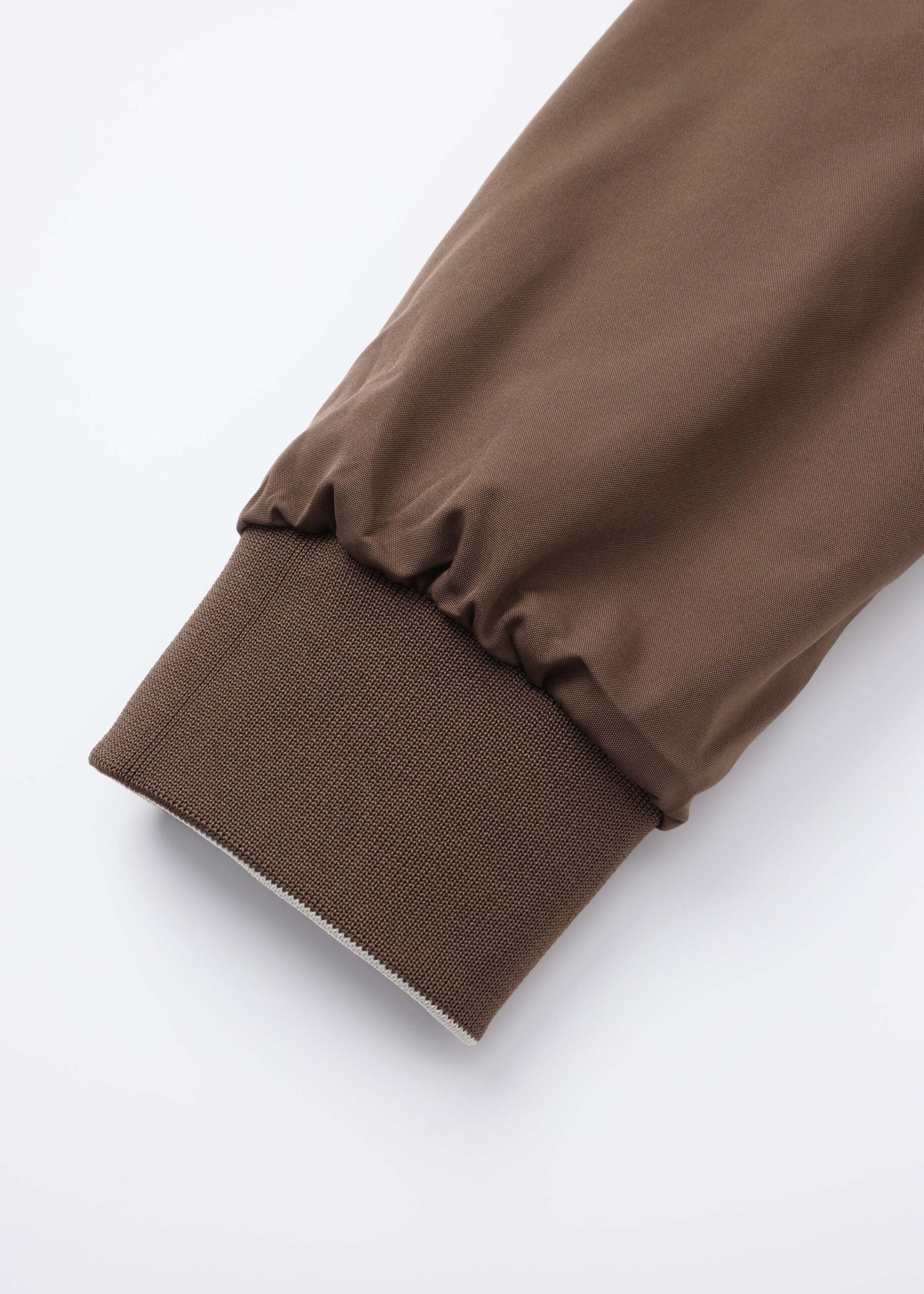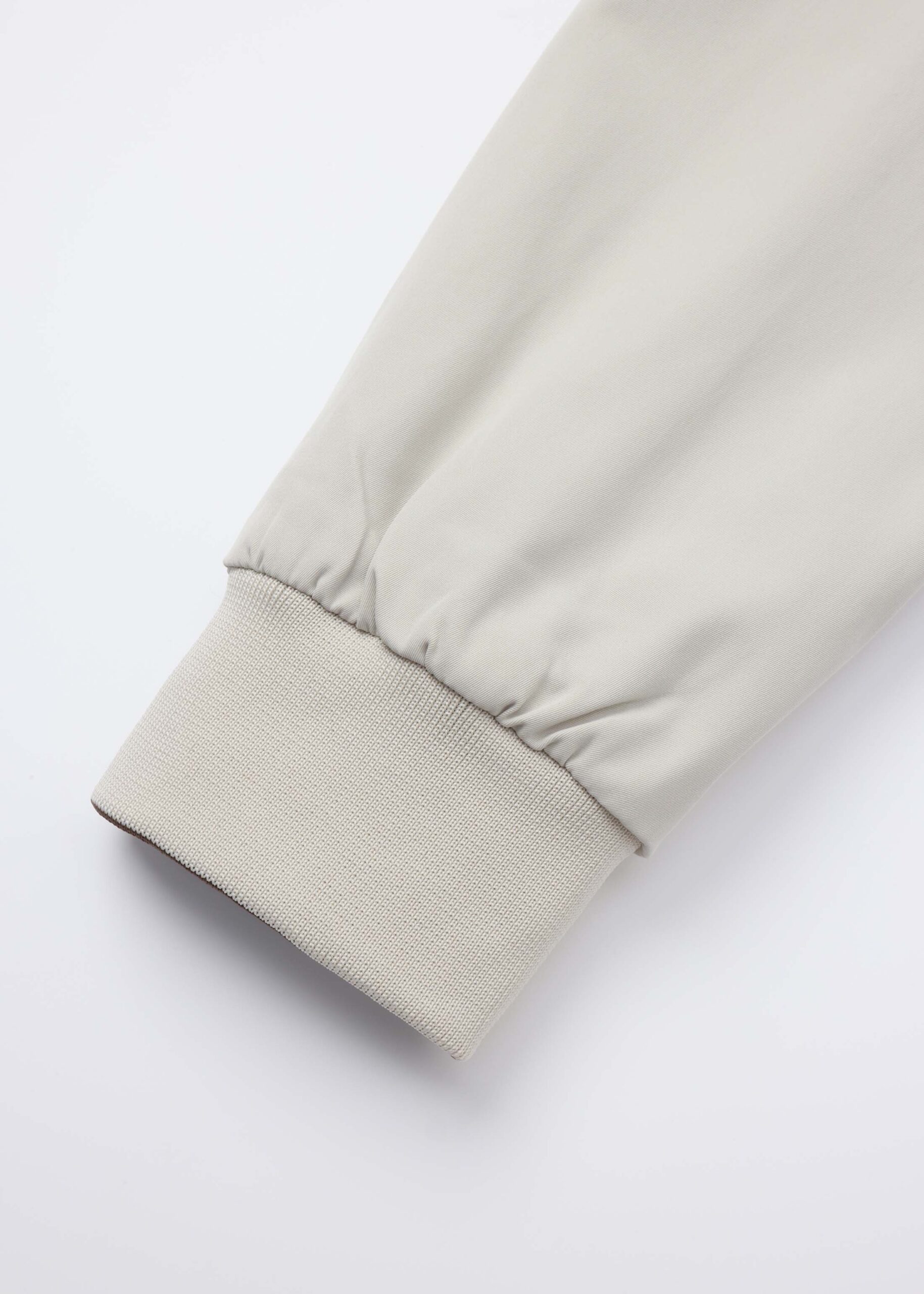 Men jacket, reversible, two-tone, rolled collar, front zipper closure, front pockets, long sleeves with tight cuff, unique and modern