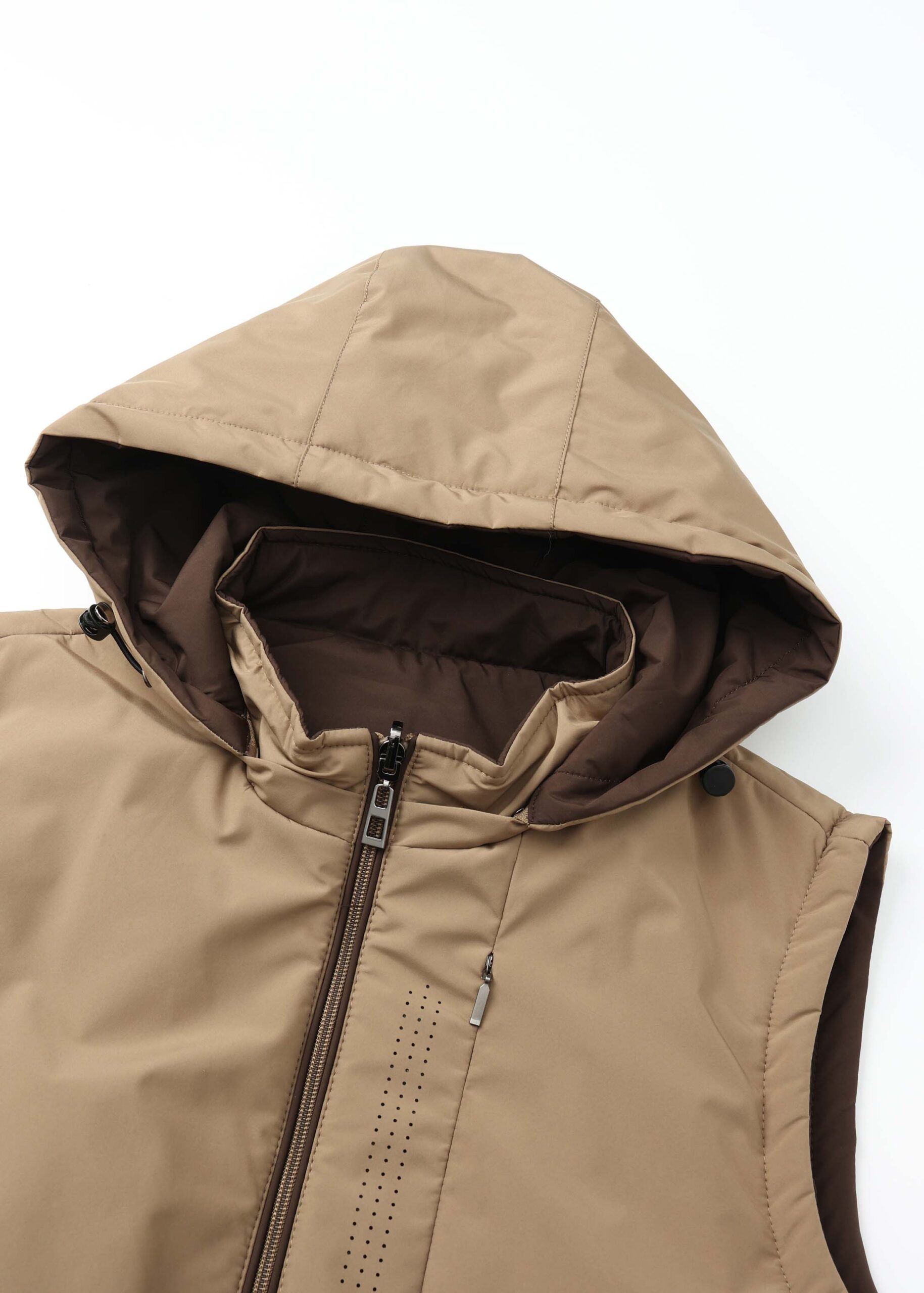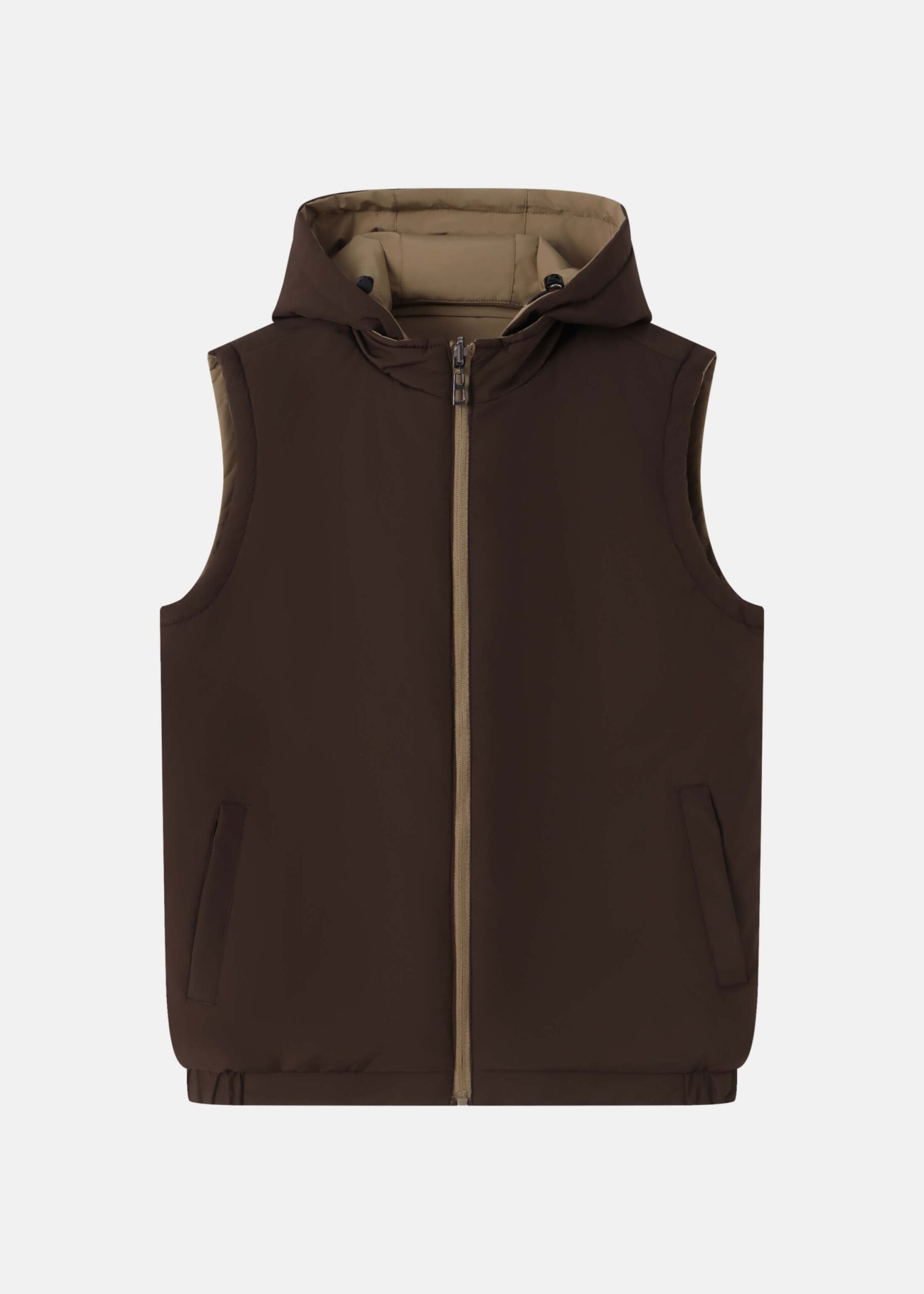 Men vest, plain, reversible, two-tone, sleeveless, stand collar, front zipper closure, hood, front pockets, unique and practical