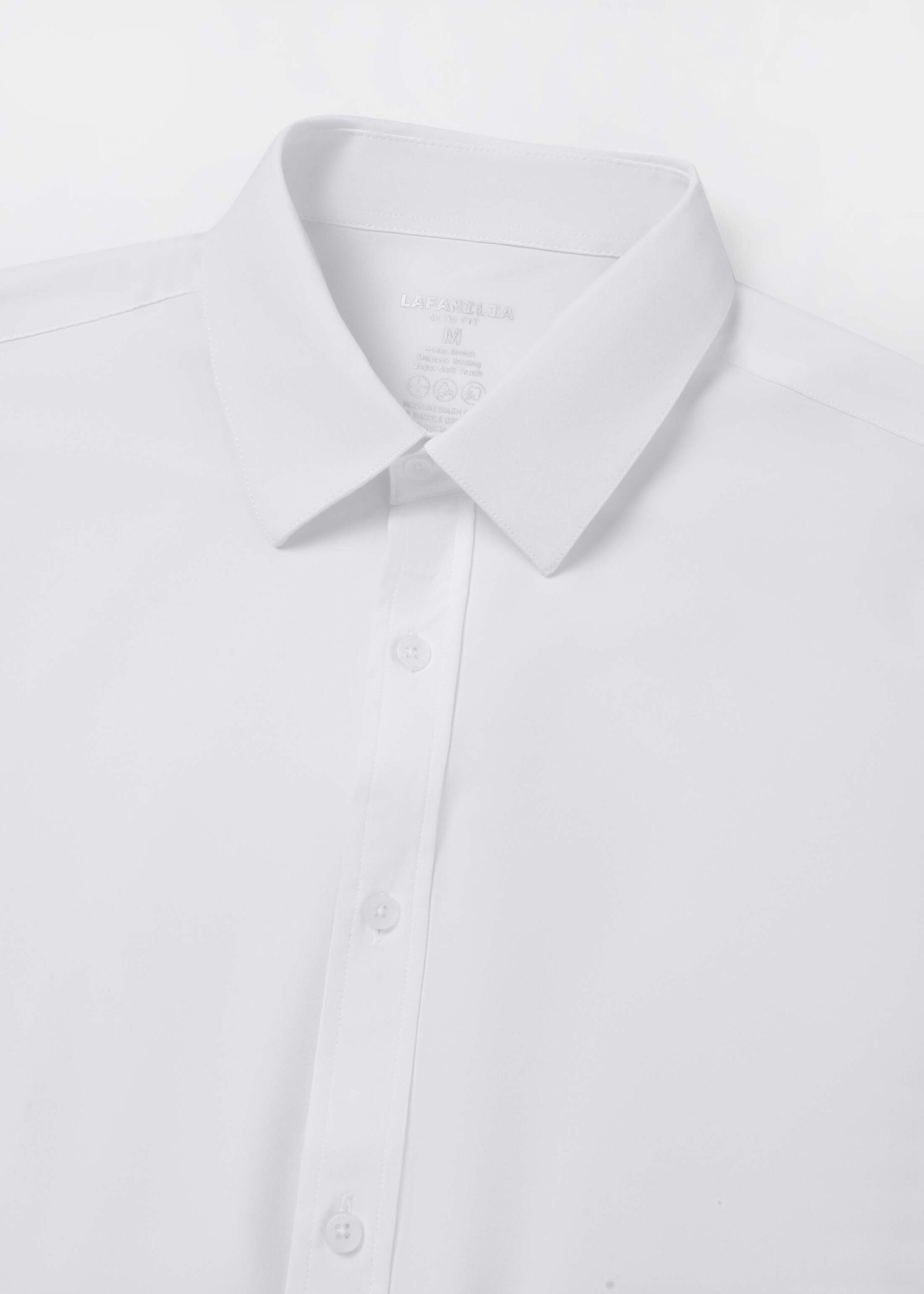 قميص رجالي, سادة, Slim-Fit, ياقة مثنية, ازرار من الامام للاغلاق, اكمام طويلة مع معصم ضيق, انيق وعصري