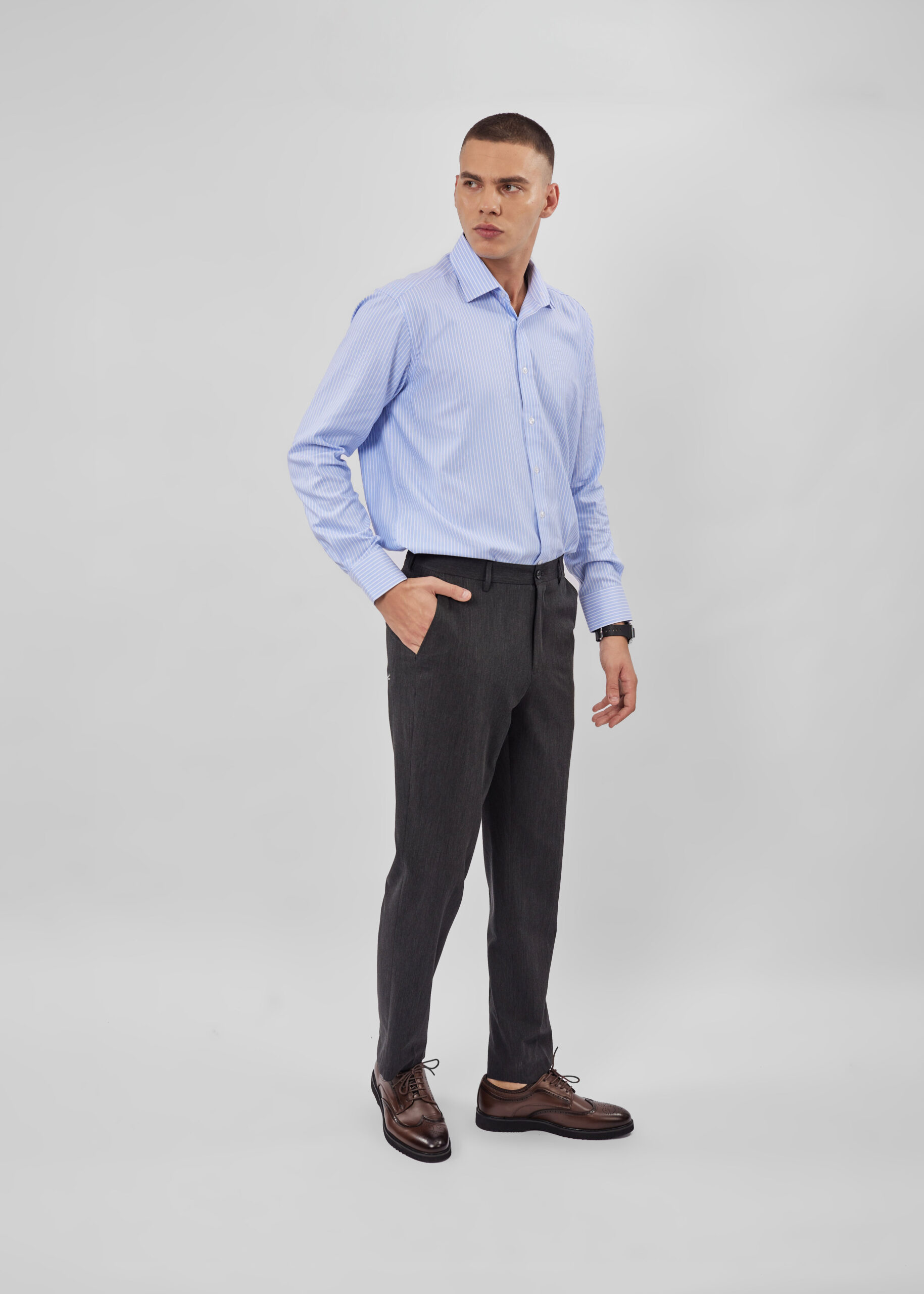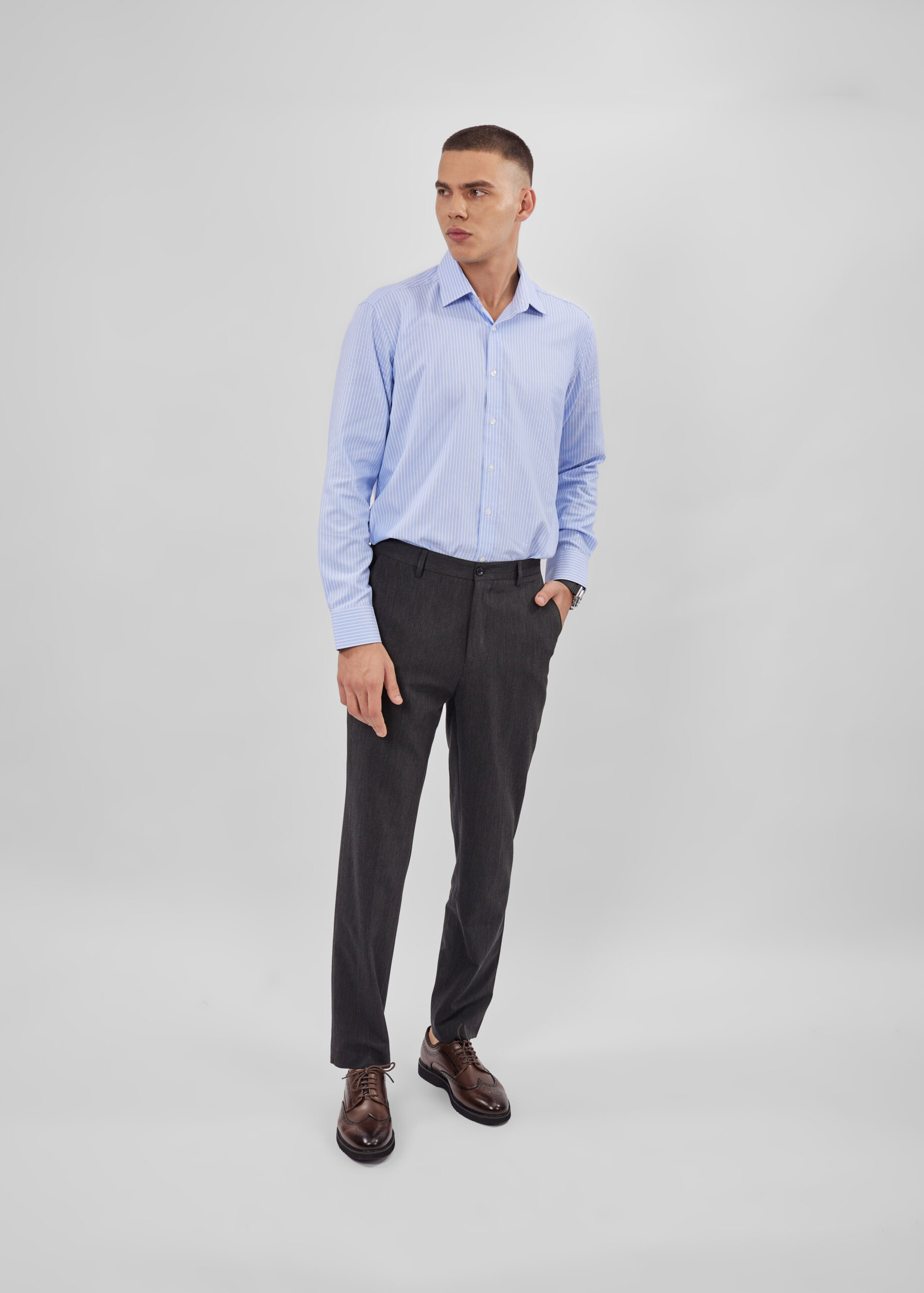 قميص رجالي, Slim-Fit, مخطط, ازرار من الامام للاغلاق, ياقة مثنية مع زر من الامام, اكمام طويلة مع معصم ضيق, انيق وعملي