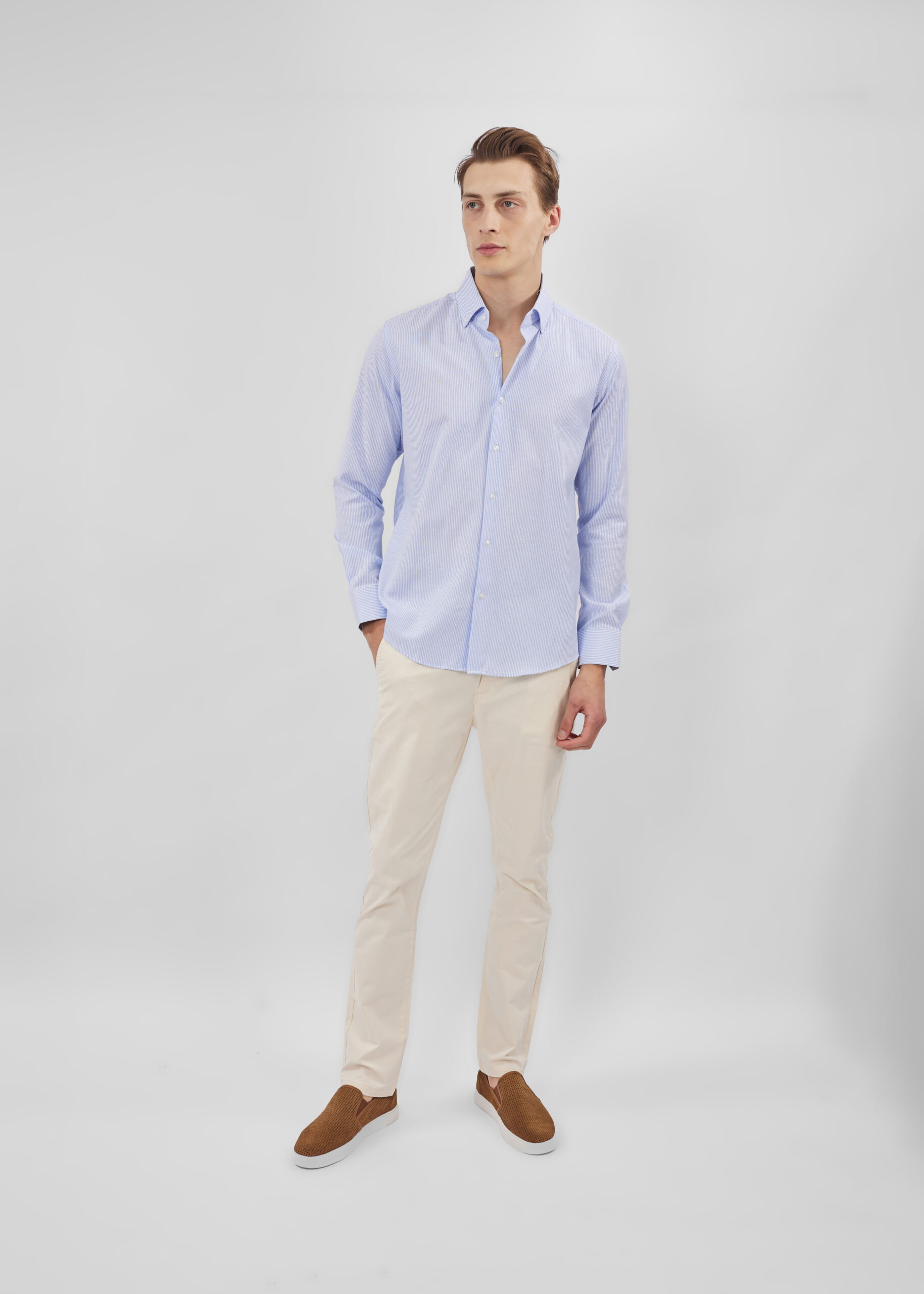 قميص رجالي, Slim-Fit, مخطط, ازرار من الامام للاغلاق, ياقة مثنية مع زر من الامام, اكمام طويلة مع معصم ضيق, انيق وعملي