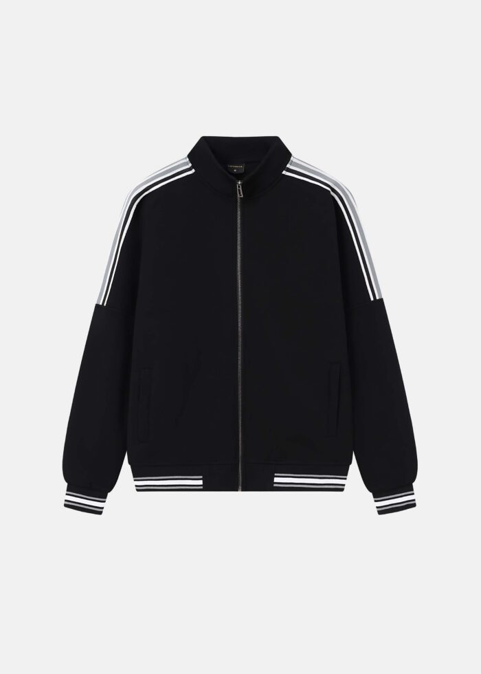 جاكيت رجالي, مخطط, ياقة مرتفعة, سحاب من الامام للاغلاق, جيوب من الامام, اكمام طويلة مع معصم ضيق, انيق وعملي