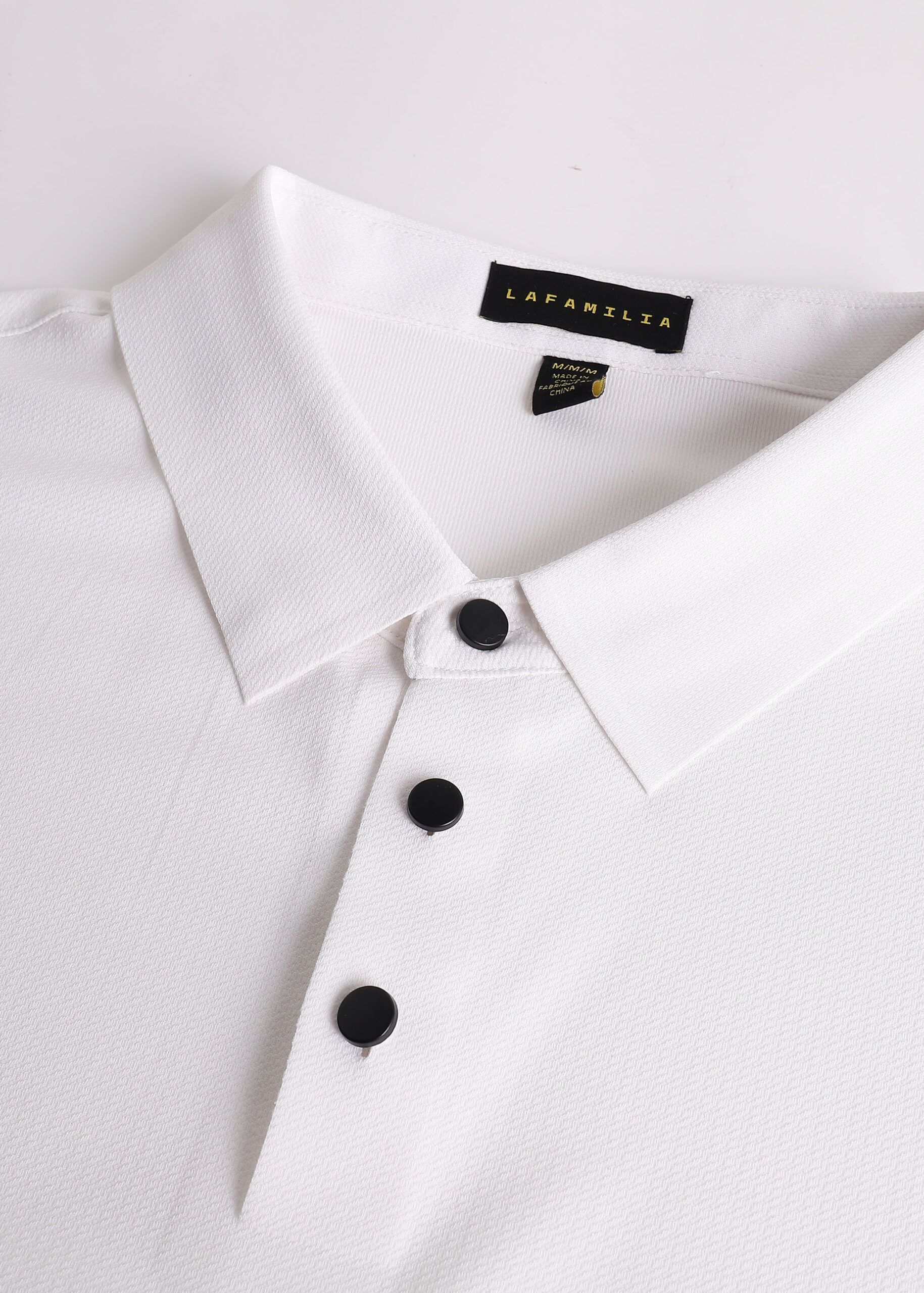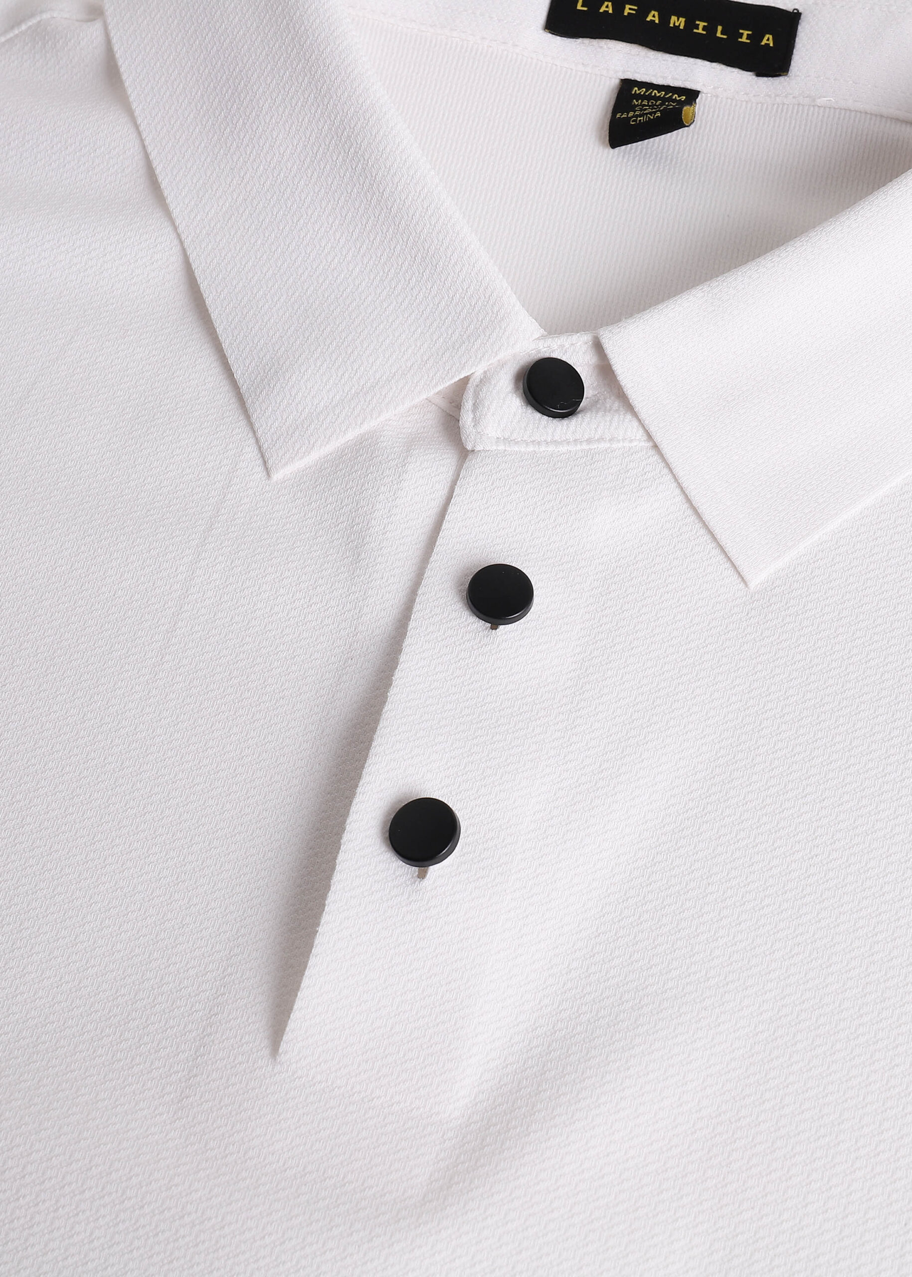 Men polo shirt, textured fabric, rolled collar with front buttons, short sleeves, unique and modern