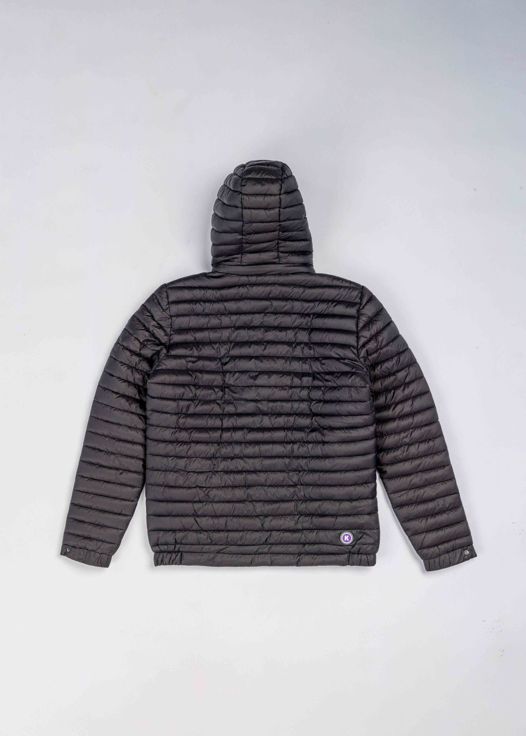 Men jacket, waterproof, striped fabric, hood, front zipper closure, front pockets, long sleeves with elastic cuff, unique and practical