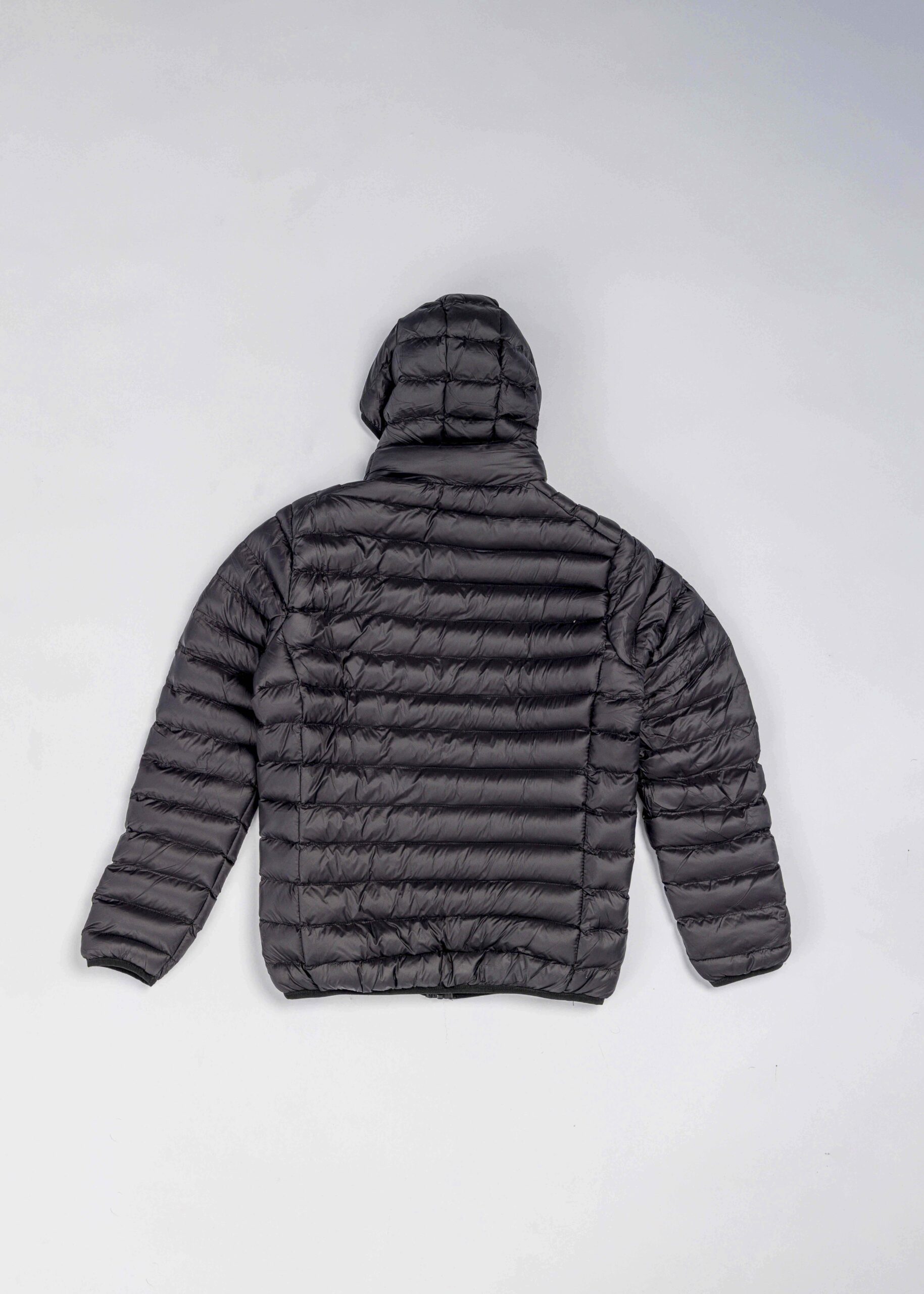 Men jacket, waterproof, striped fabric, hood, front zipper closure, front pockets, long sleeves, unique and practical
