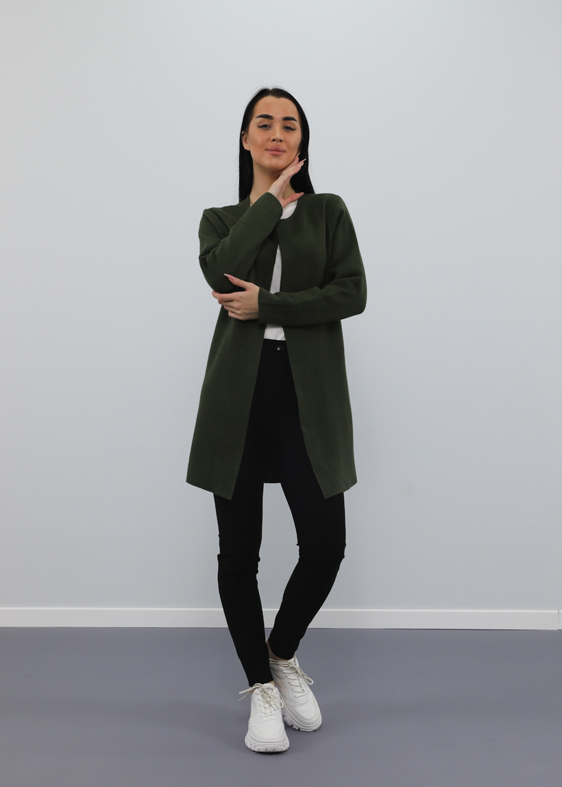 *جاكيت صوف ستاتي سادة مفتوح من الأمام بأكمام طويلة