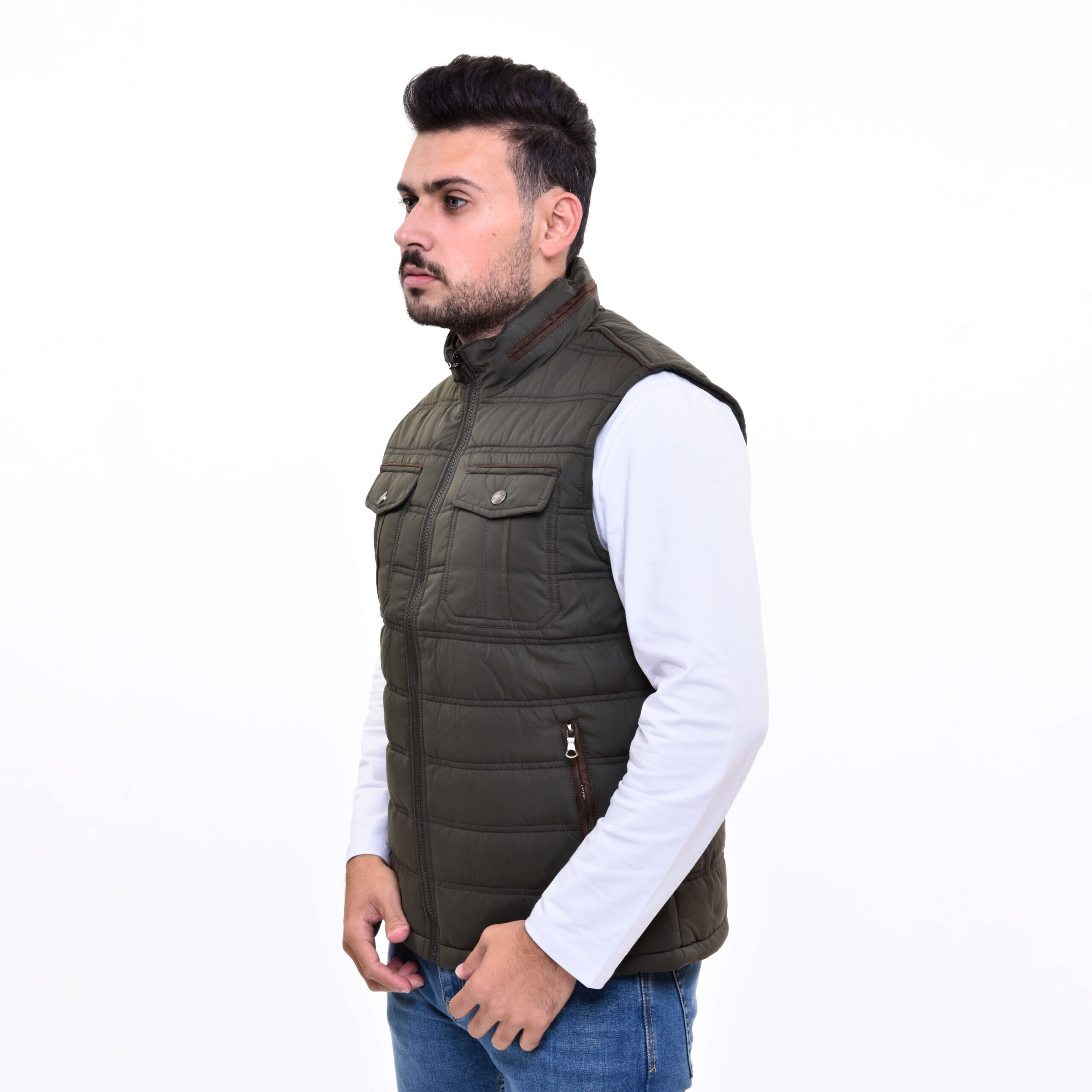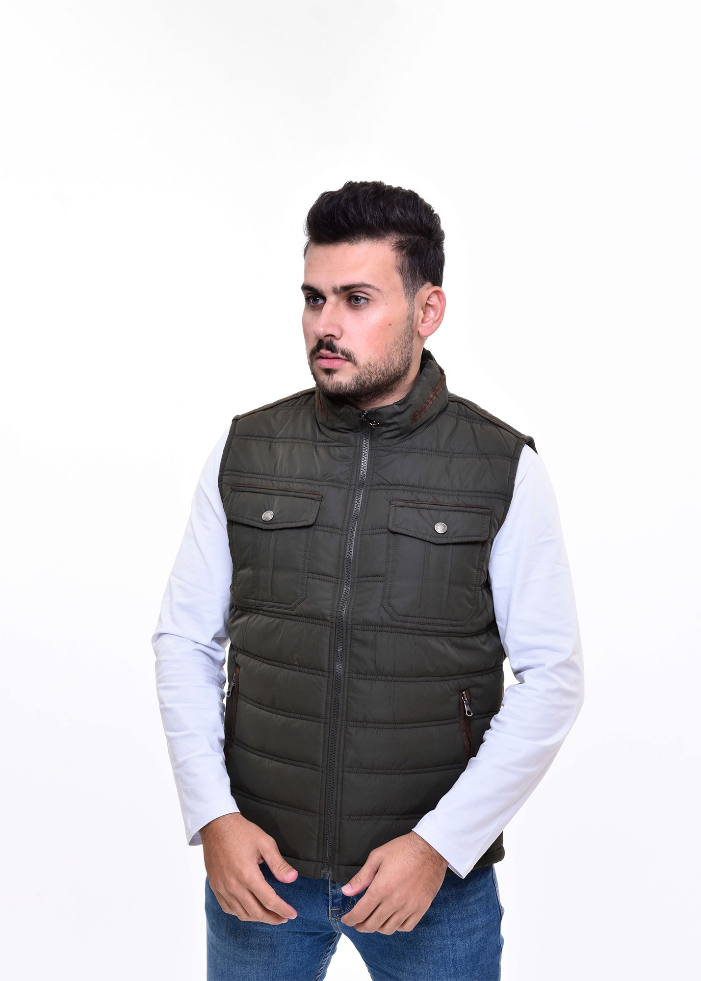 فست تصميم منجد يتميز بجيوب قلب على الصدر، جيوب أمامية بسحاب و سحاب أمامي للأغلاق.