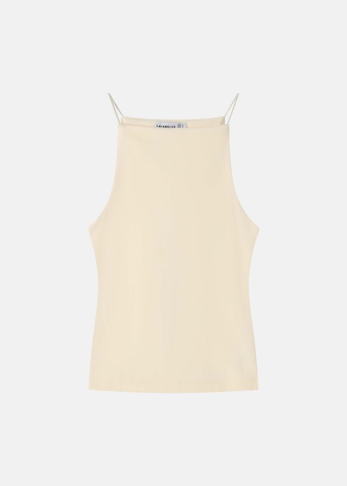 توب نسائي, بيسك, سادة, ياقة مربعة, بدون اكمام, انيقة وعملية