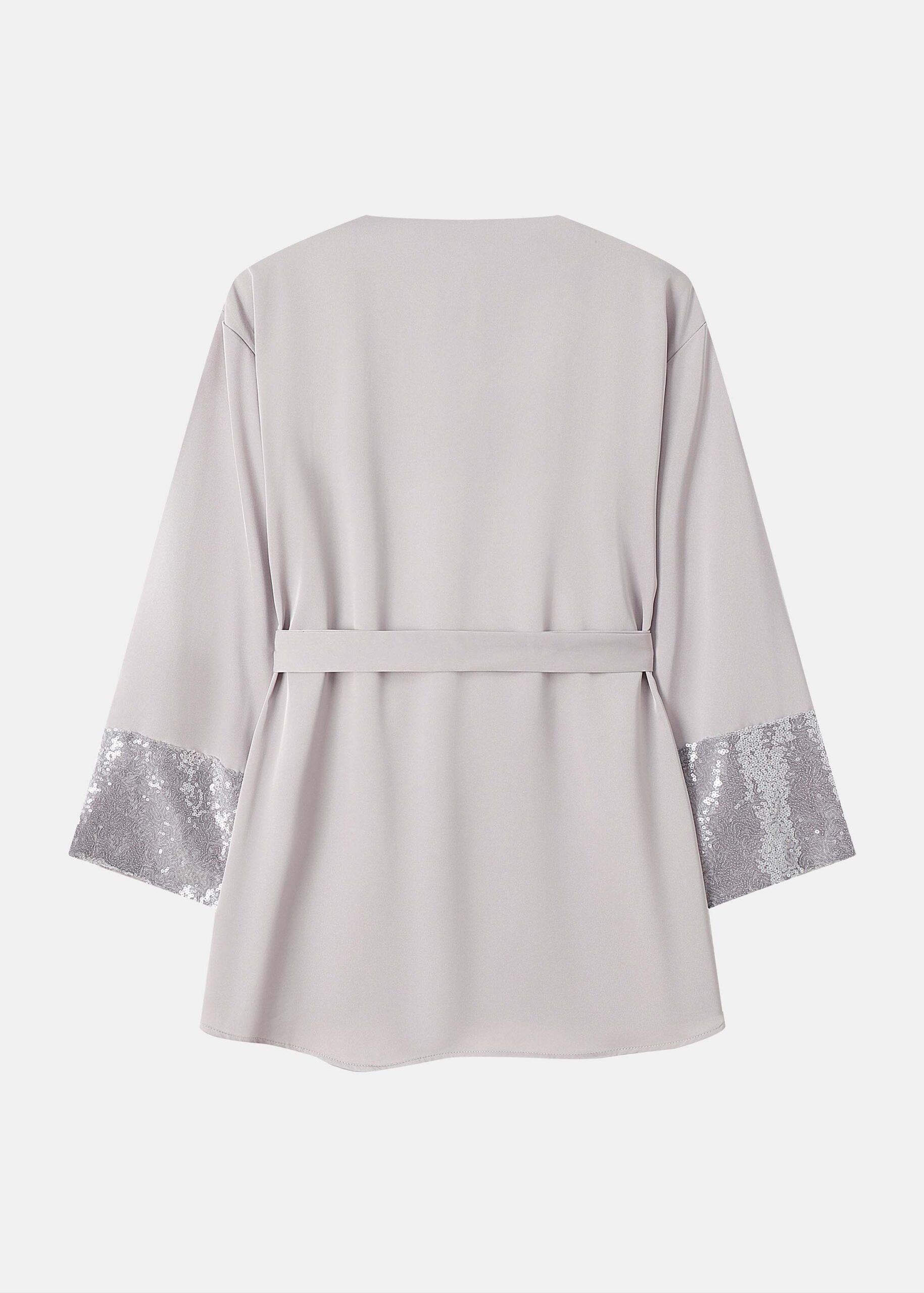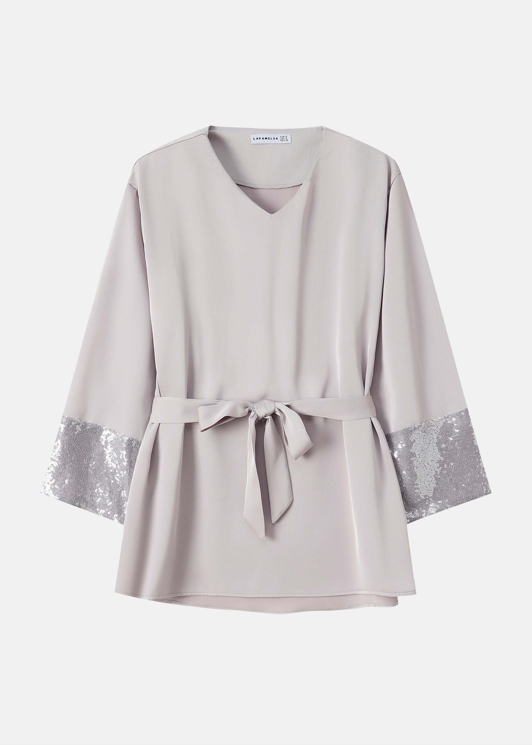 بلوزة نسائي, ياقة سبعة, اكمام طويلة مع معصم مزين بالترتر, حزام للربط على الخصر, انيقة وعصرية