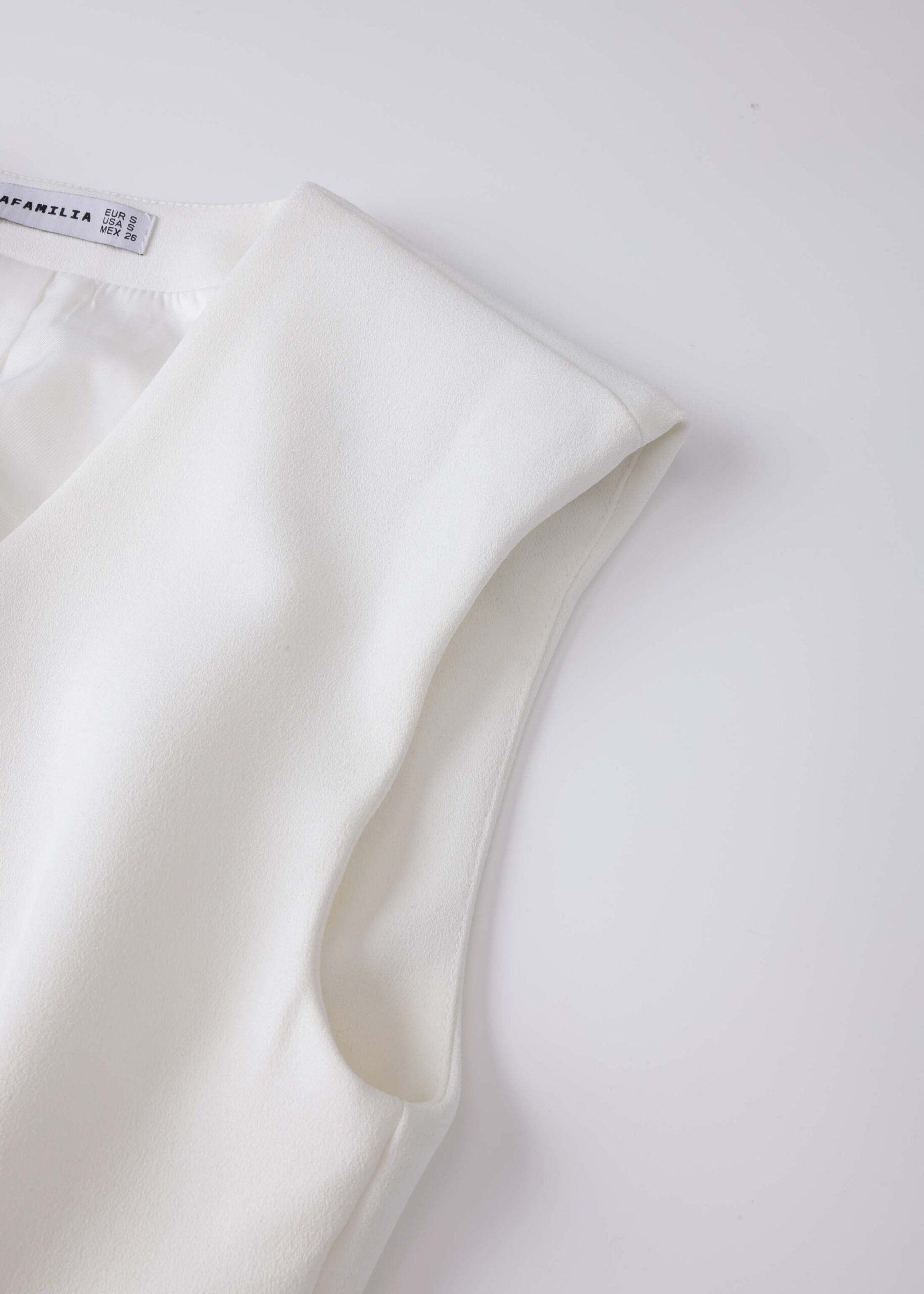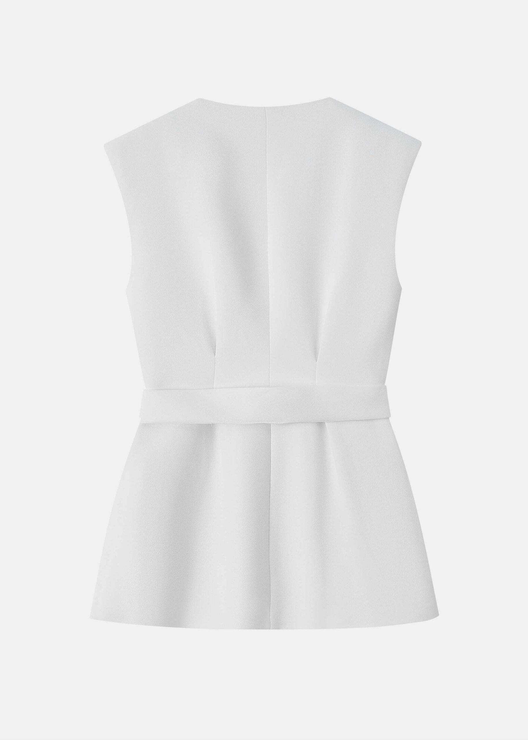 Women vest, V neck, sleeveless, tie belt at the waist, front pockets, pleats from the back, unique and modern