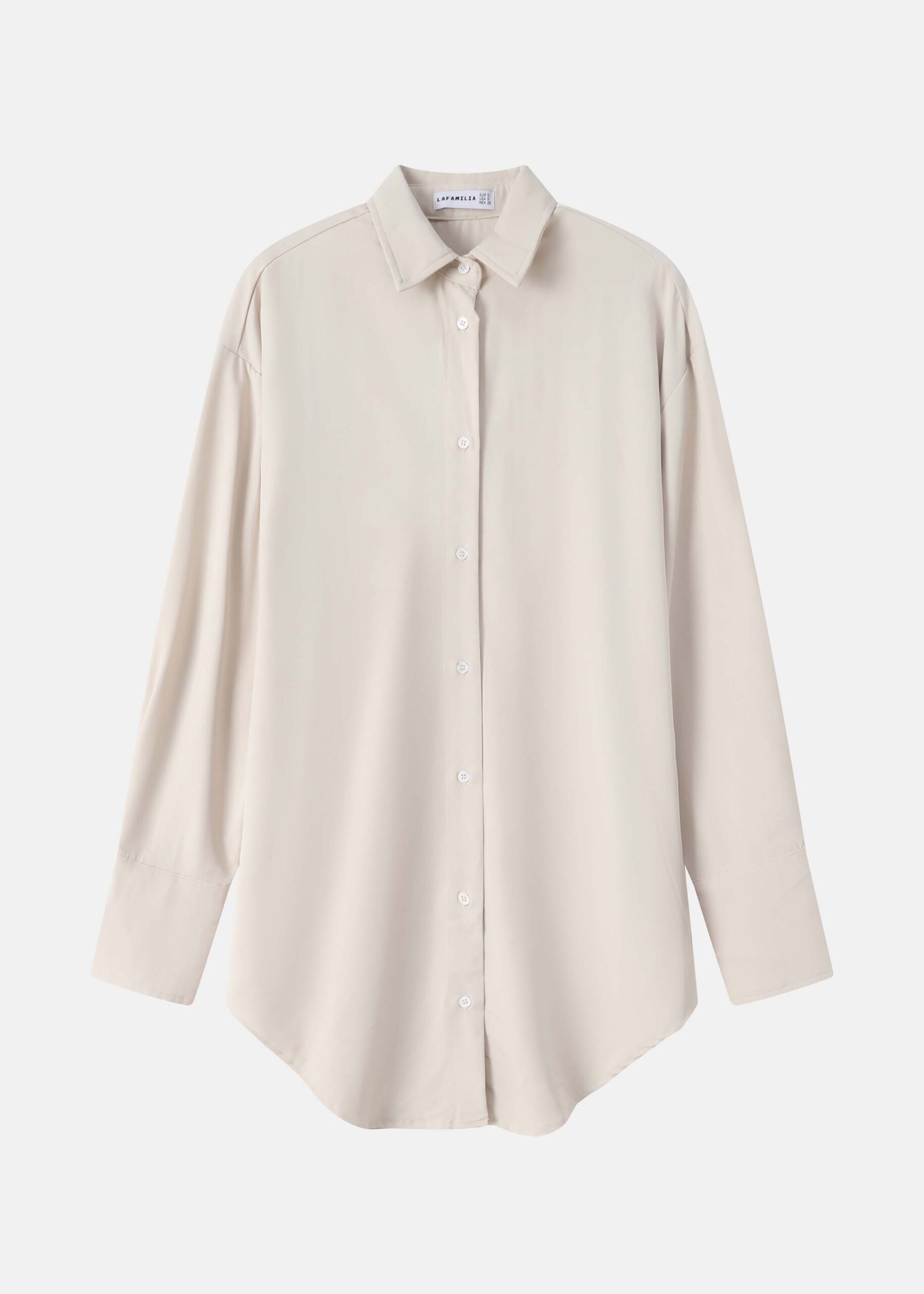 قميص نسائي, سادة, طويل, ياقة مثنية, ازرار من الامام للاغلاق, اكمام طويلة مع معصم ضيق, انيق وعصري