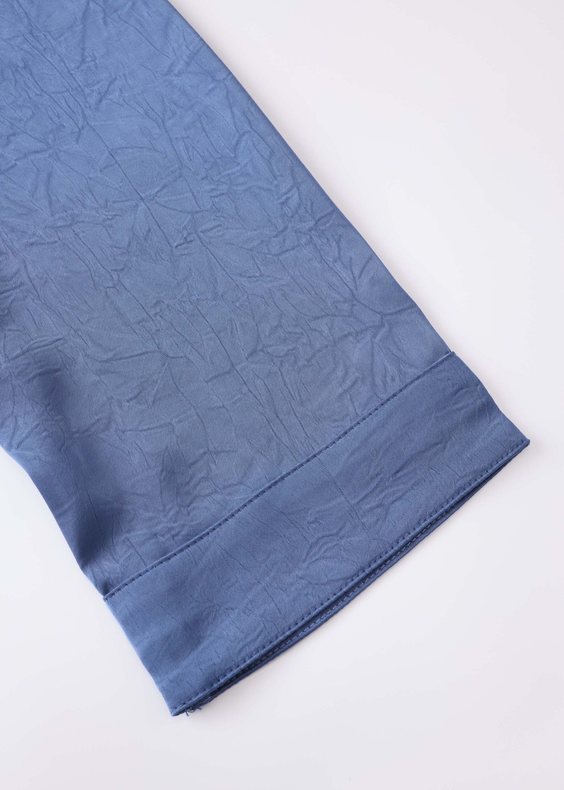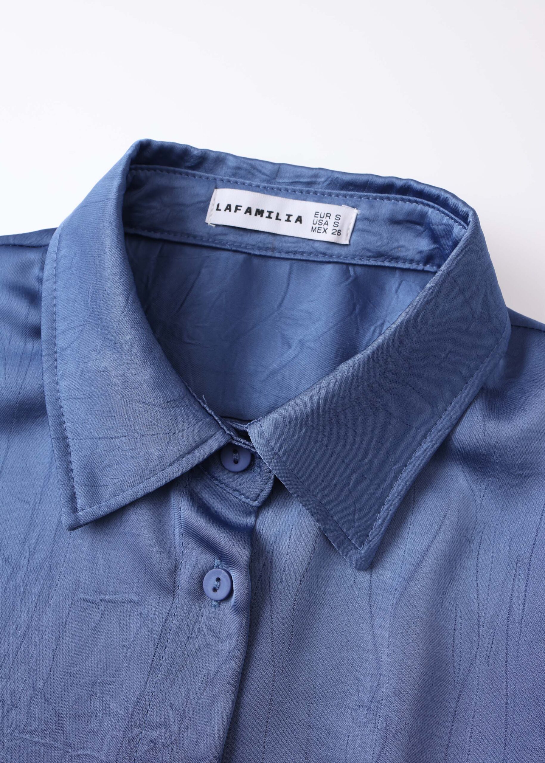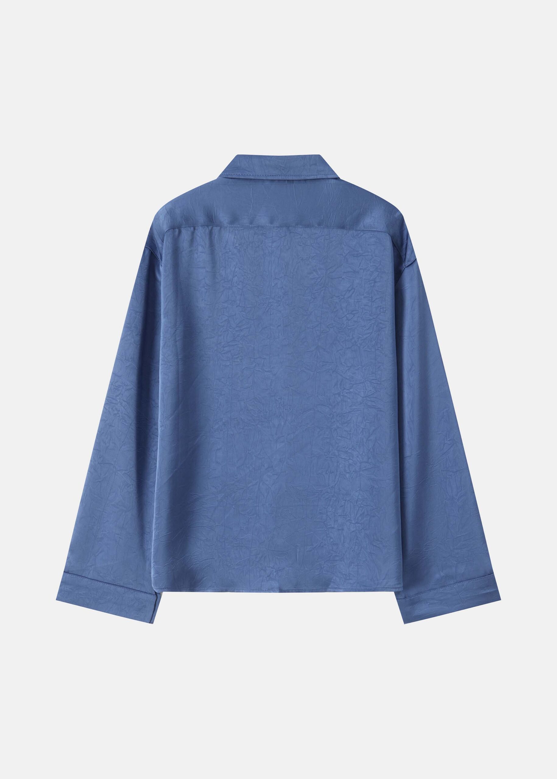 Women shirt, satin, crinkled fabric, rolled collar, front buttons to close, long sleeves, unique and practical