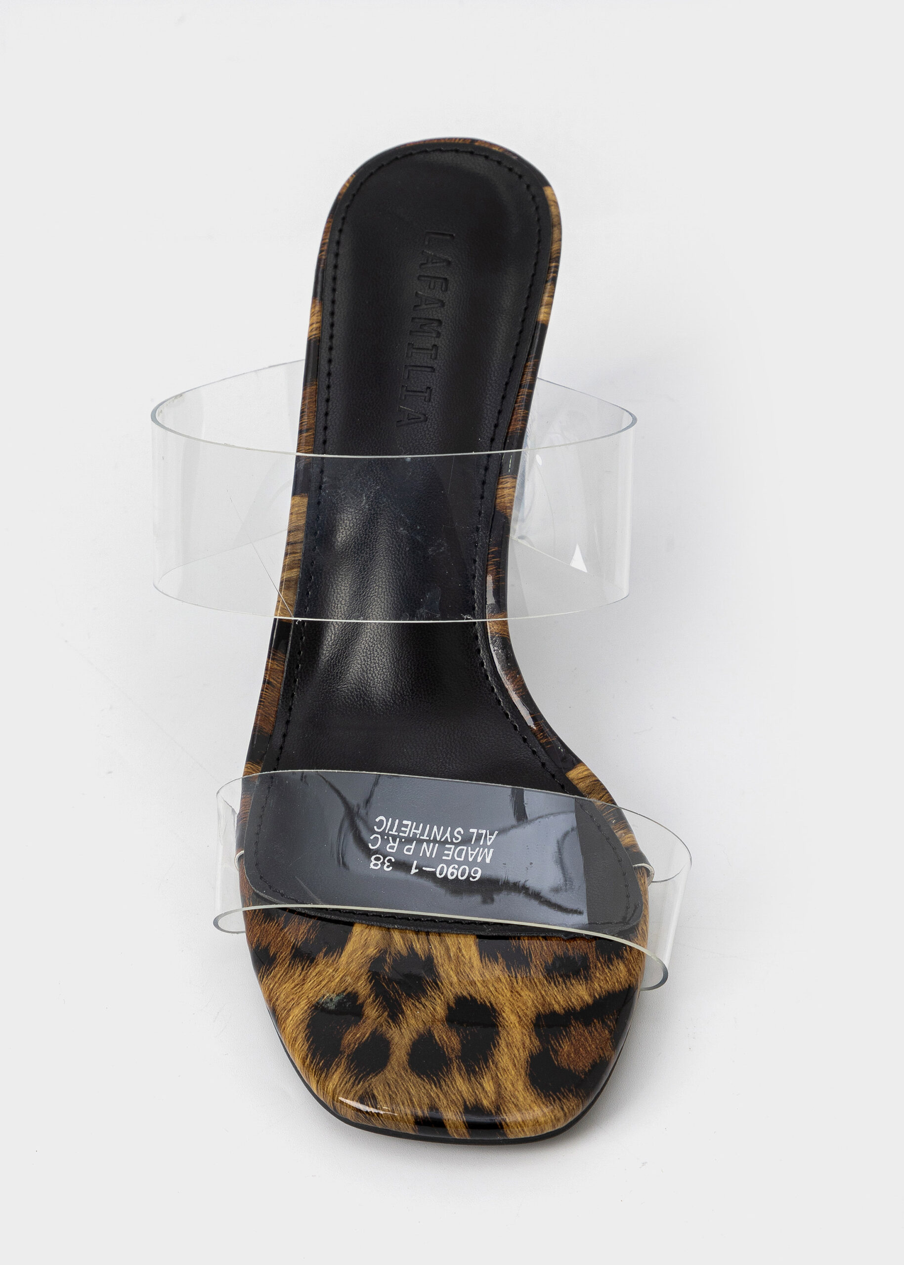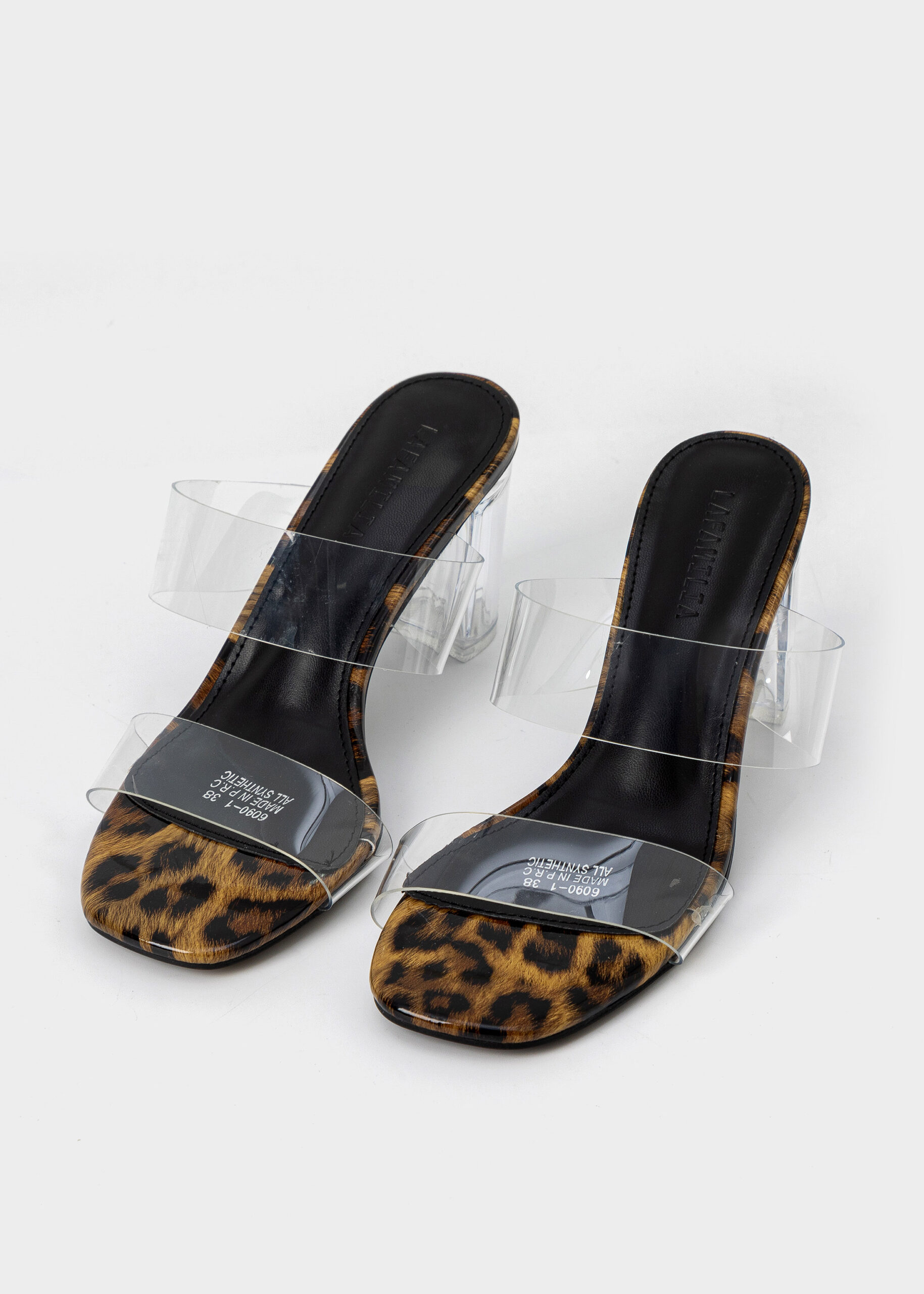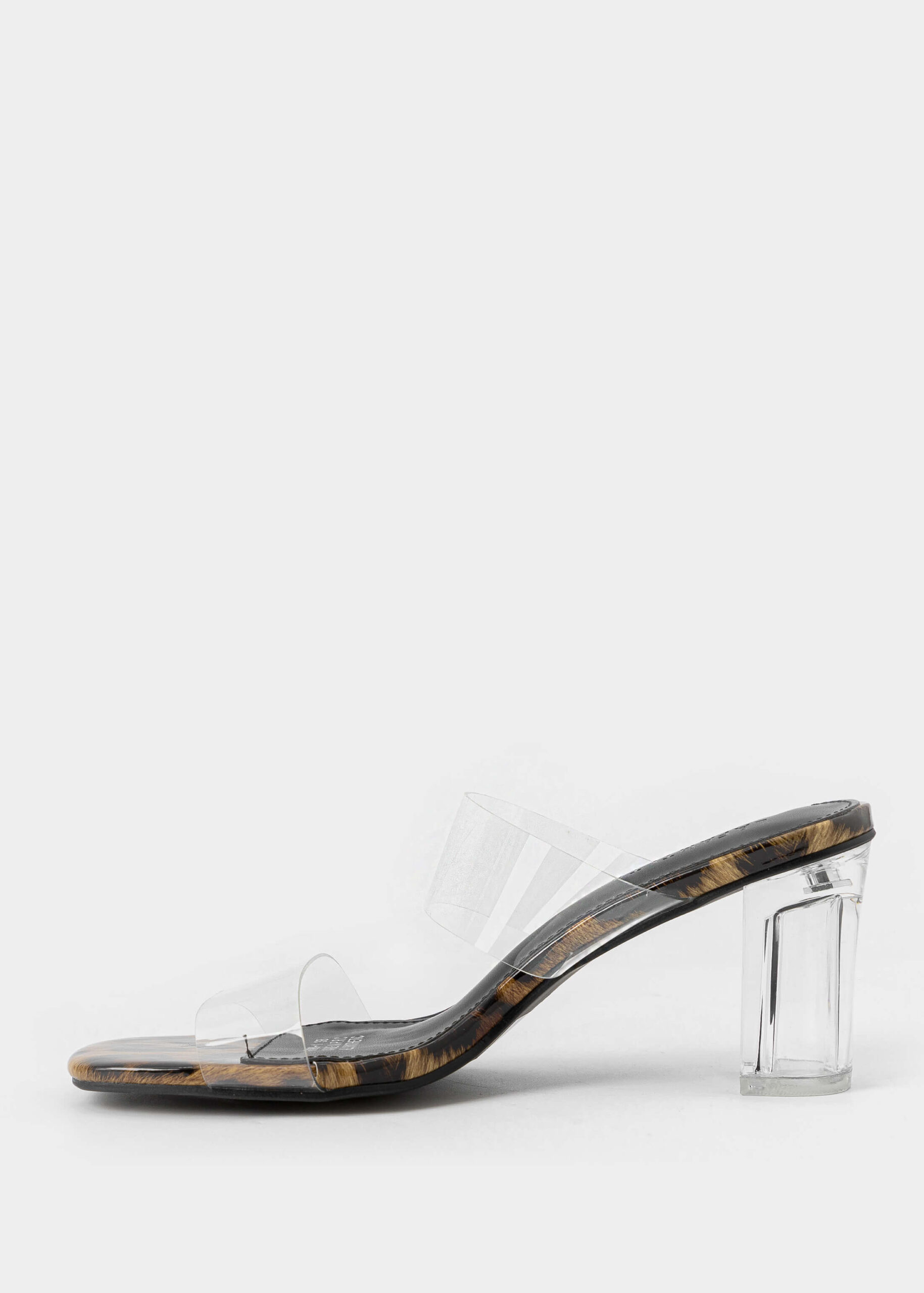 سليبر نسائي, اشرطة علوية شفافة, كعب عالي شفاف, مقدمة مدورة مفتوحة, انيق وعصري