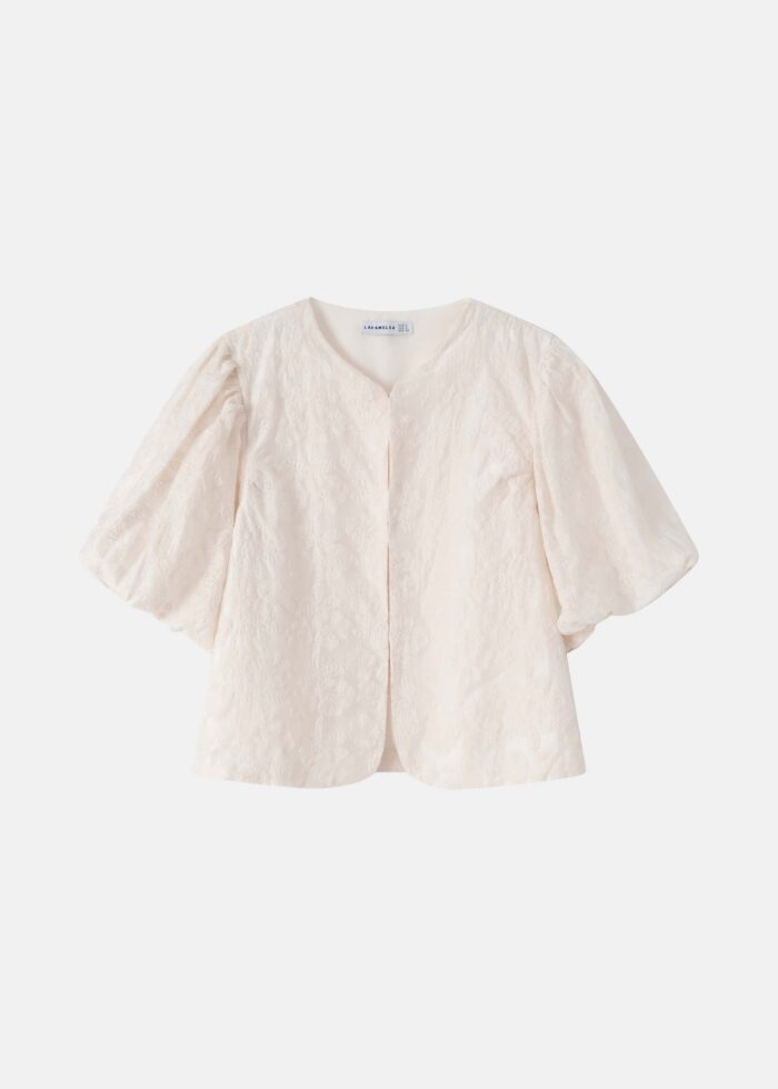 جاكيت نسائي, كروب, مزين بتطريز, ياقة مدورة, اكمام قصيرة مع اطراف مطاطية من الداخل, مشابك من الامام للاغلاق, انيق وعصري
