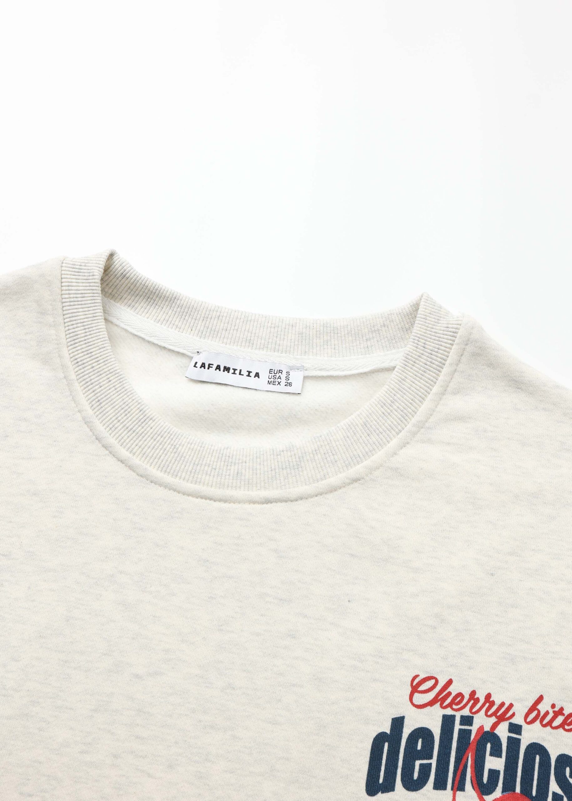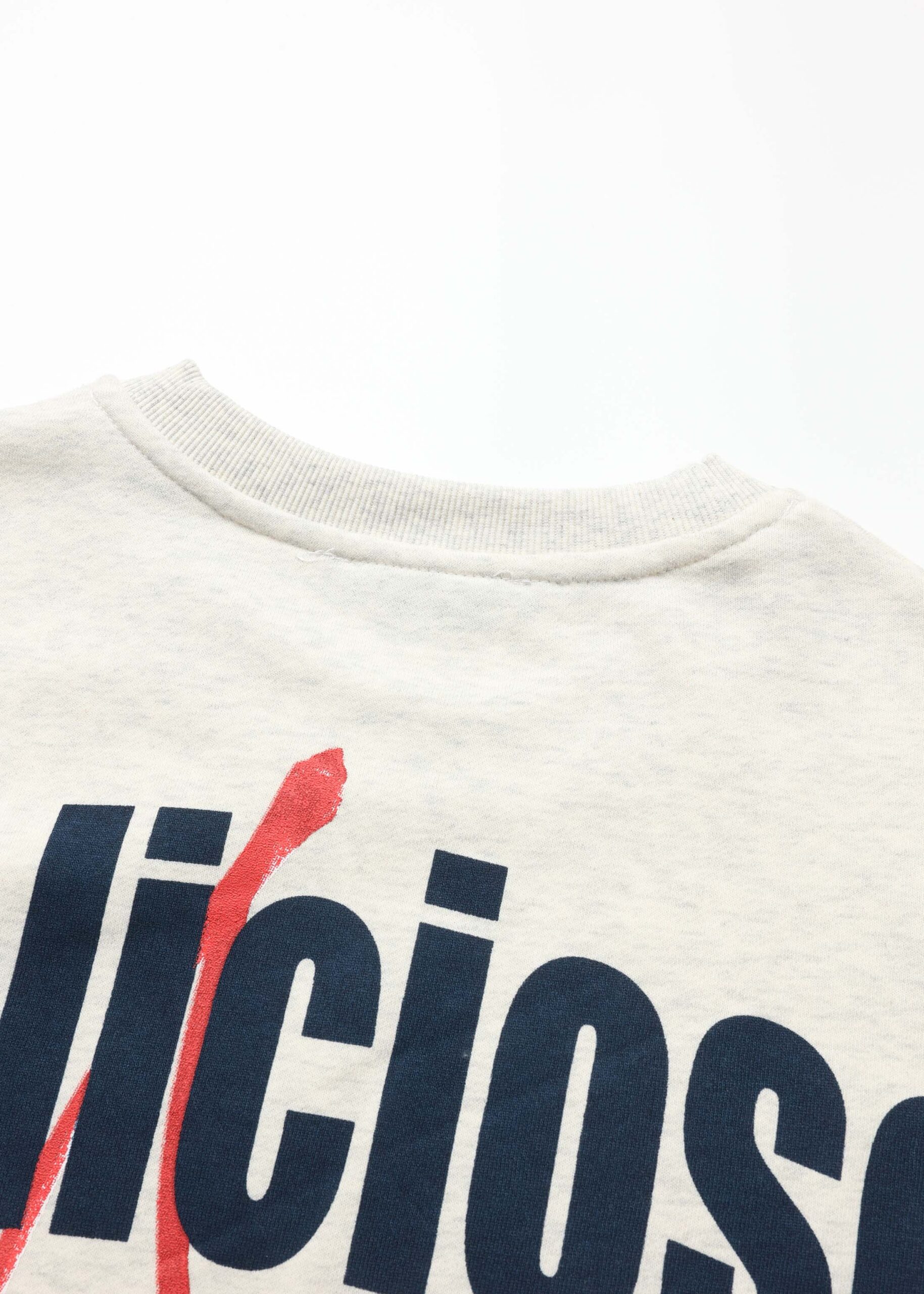 سويتشيرت نسائي, طباعة “Delicioso” من الامام والخلف, ياقة مدورة, اكمام طويلة, معصم ضيق, انيقة وعملية