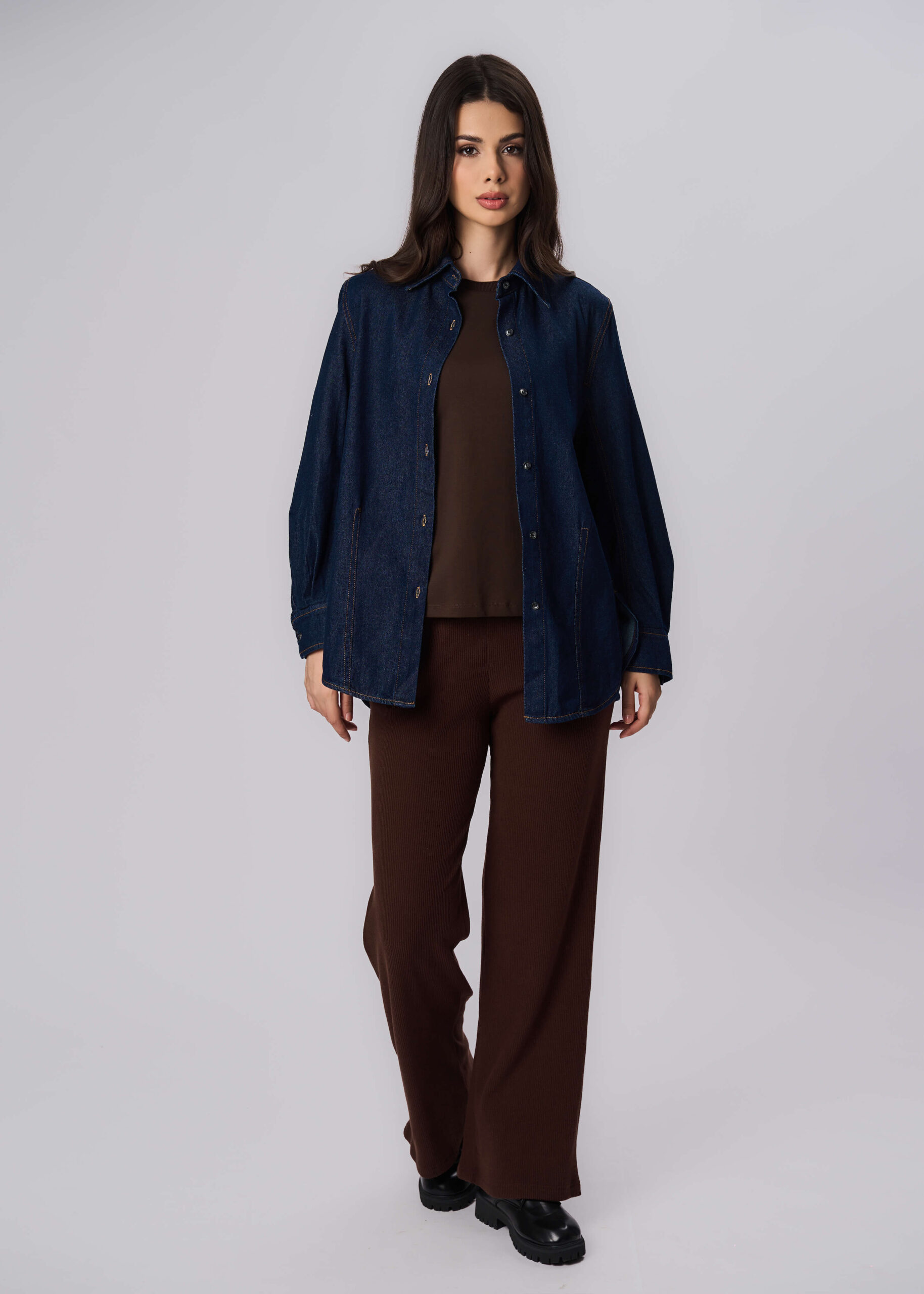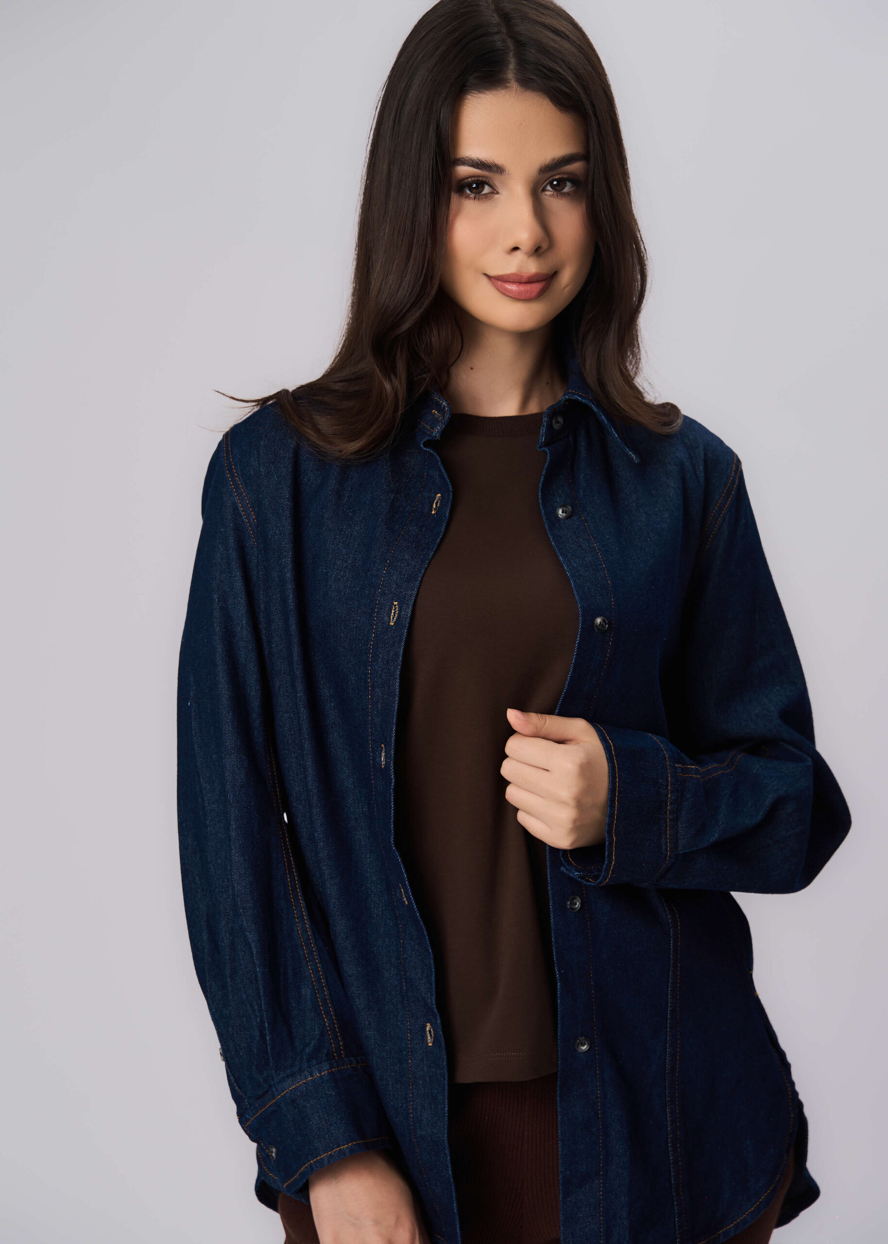 قميص نسائي, جينز, سادة, ياقة مثنية, ازرار من الامام للاغلاق, اكمام طويلة, معصم ضيق مع زر, انيق ومناسب مع عدة تنسيقات