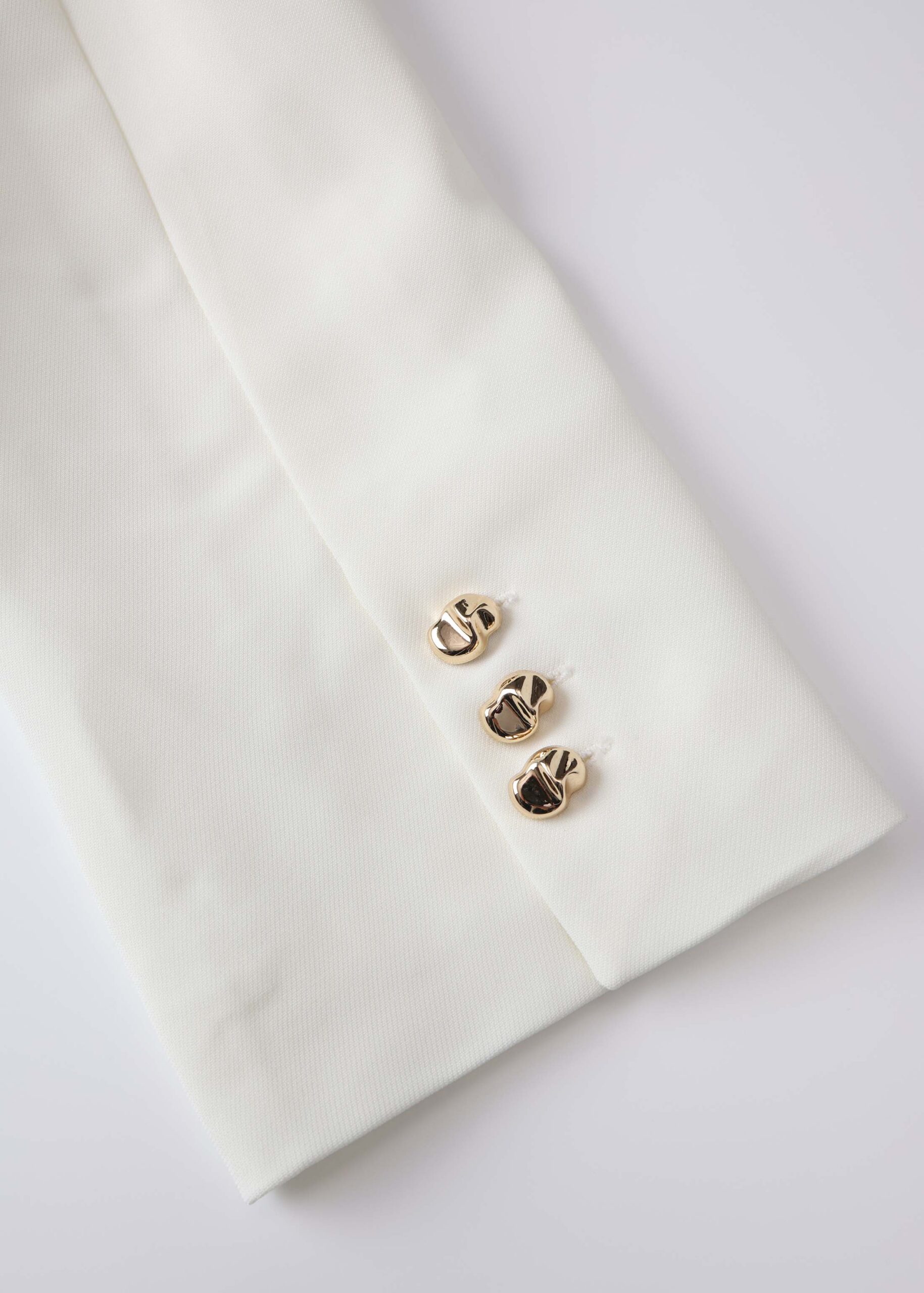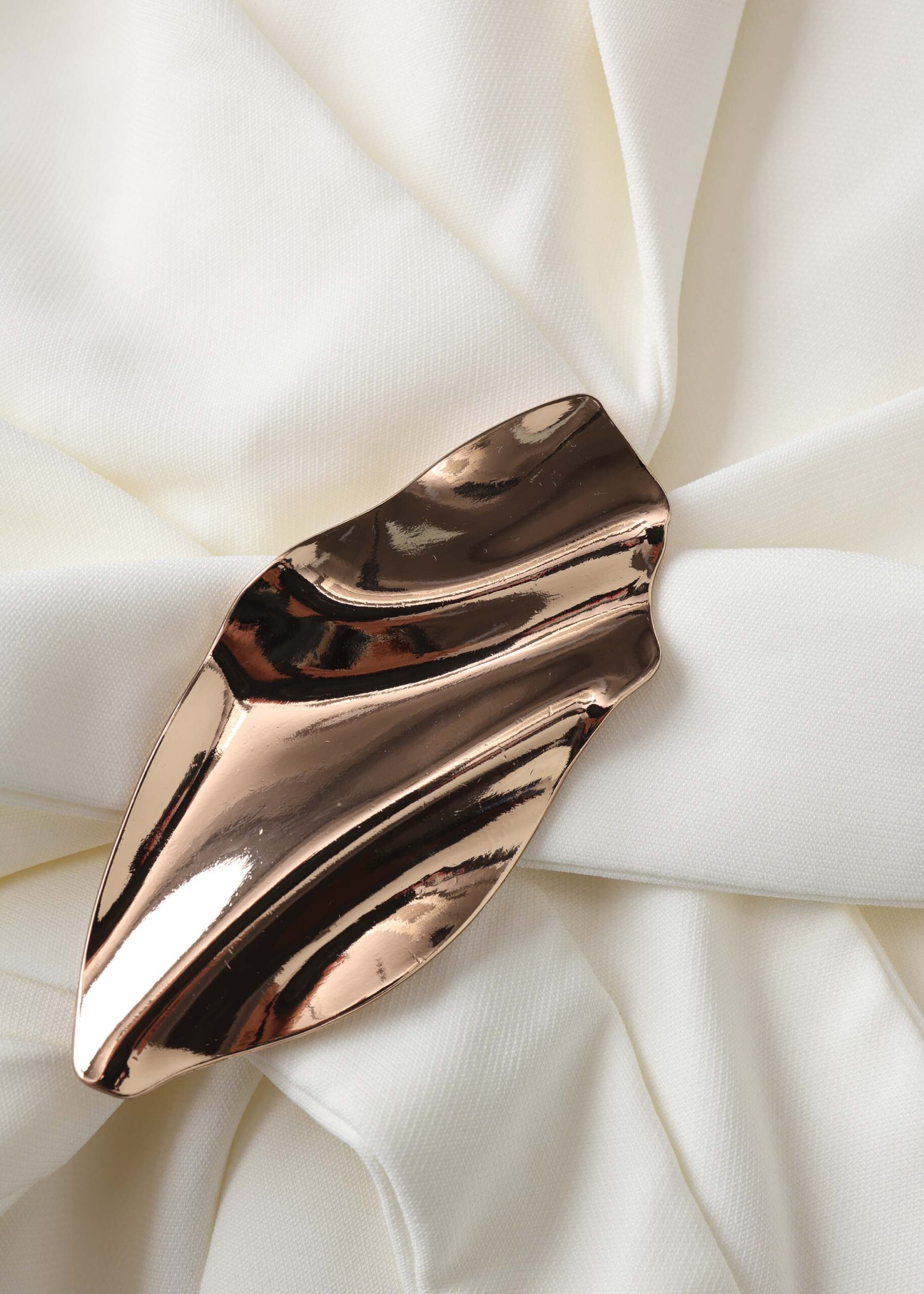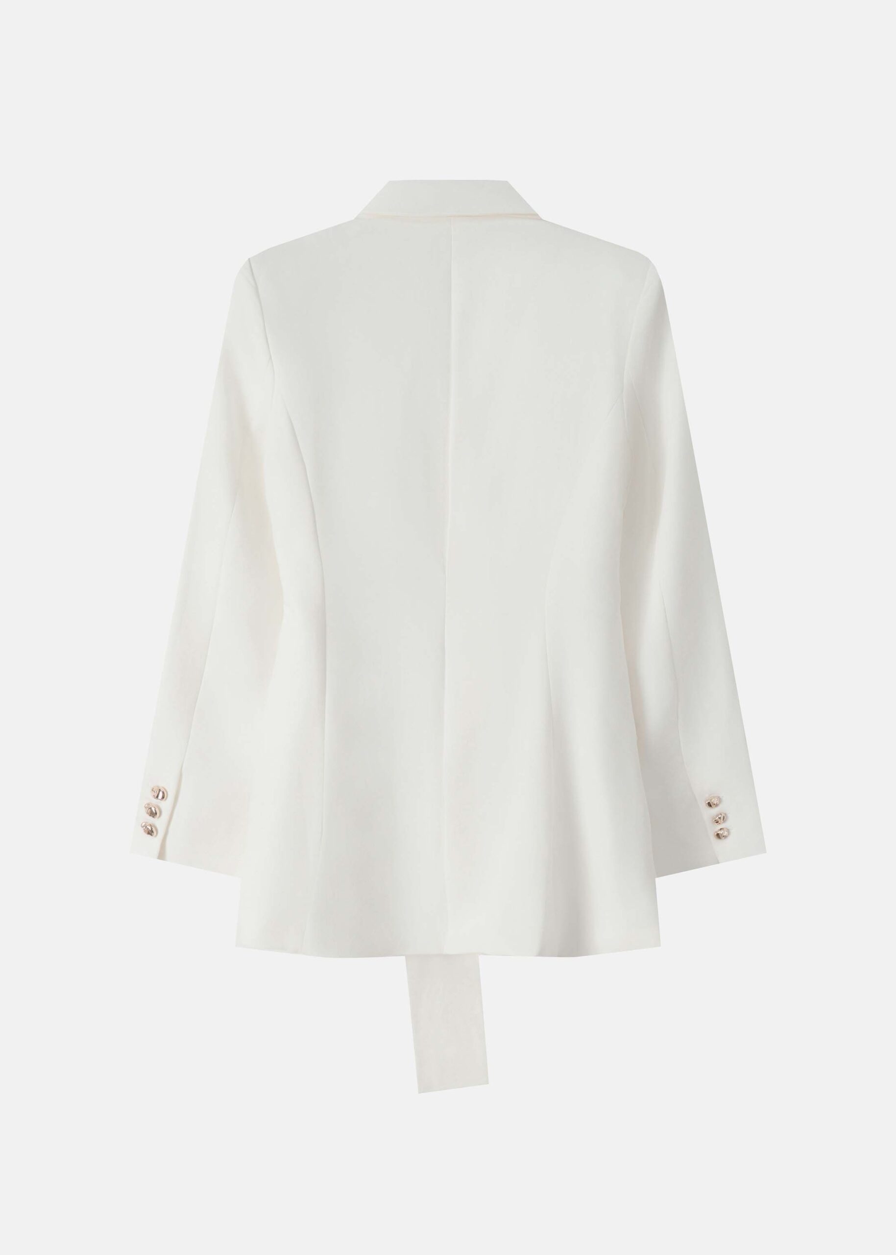 Women blazer, lapel collar, pleats decor, double breasted design with side tie and metal piece decor, long sleeves, unique and modern