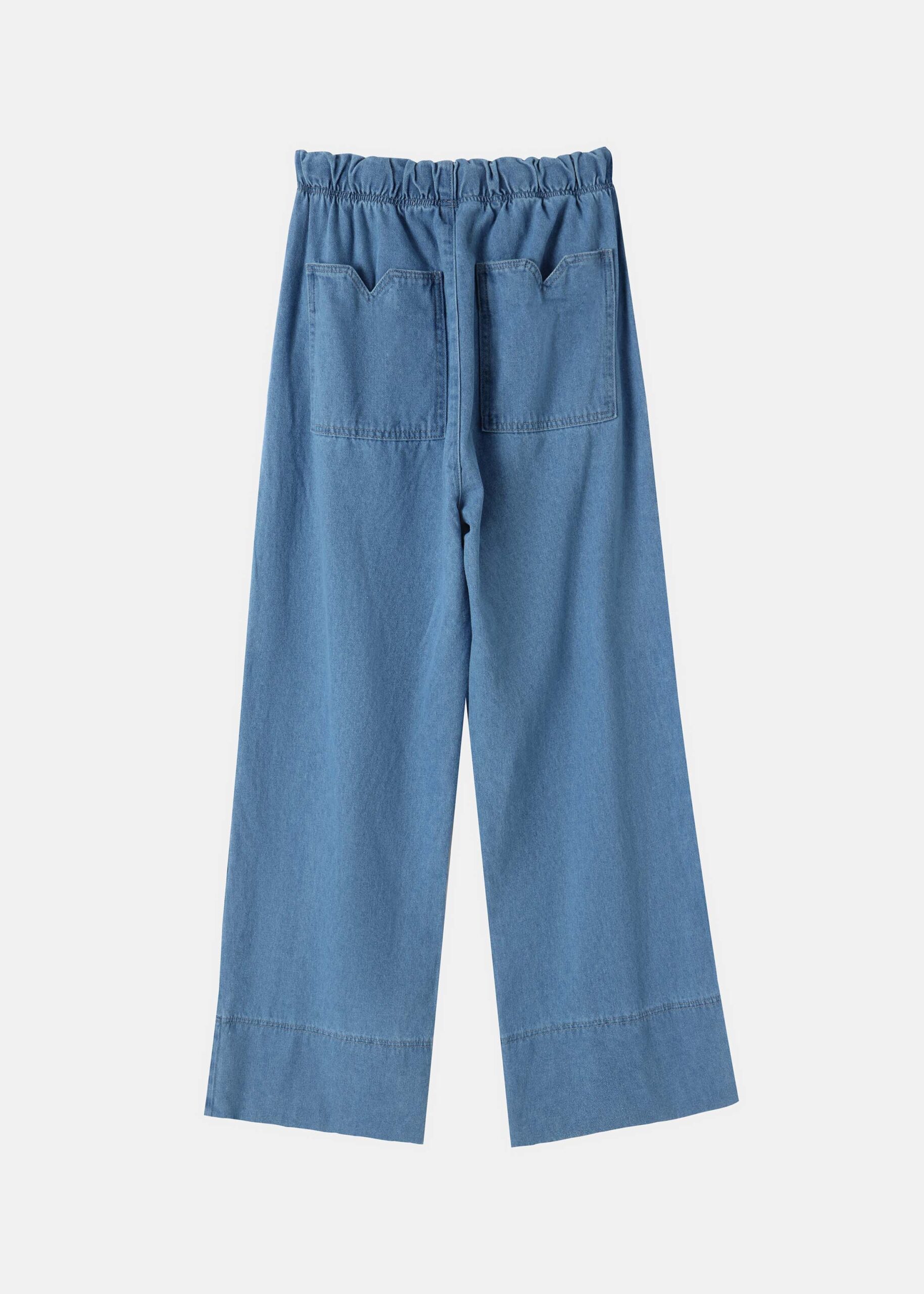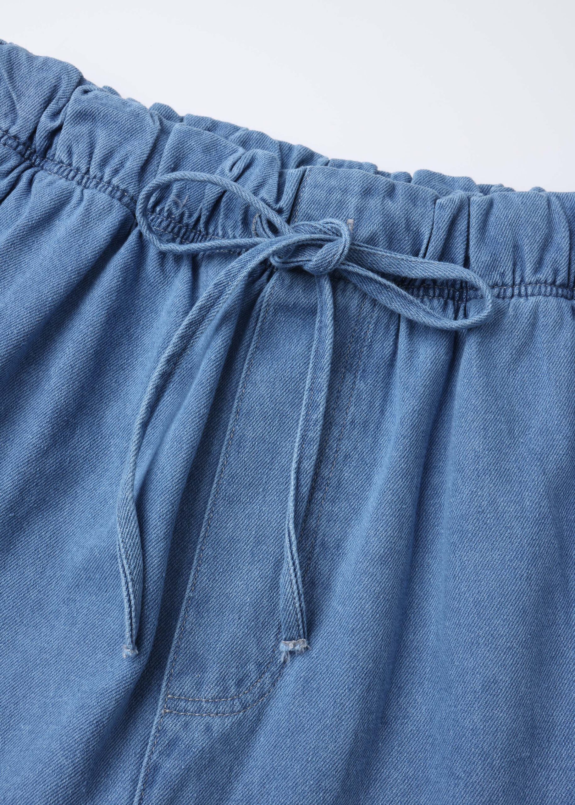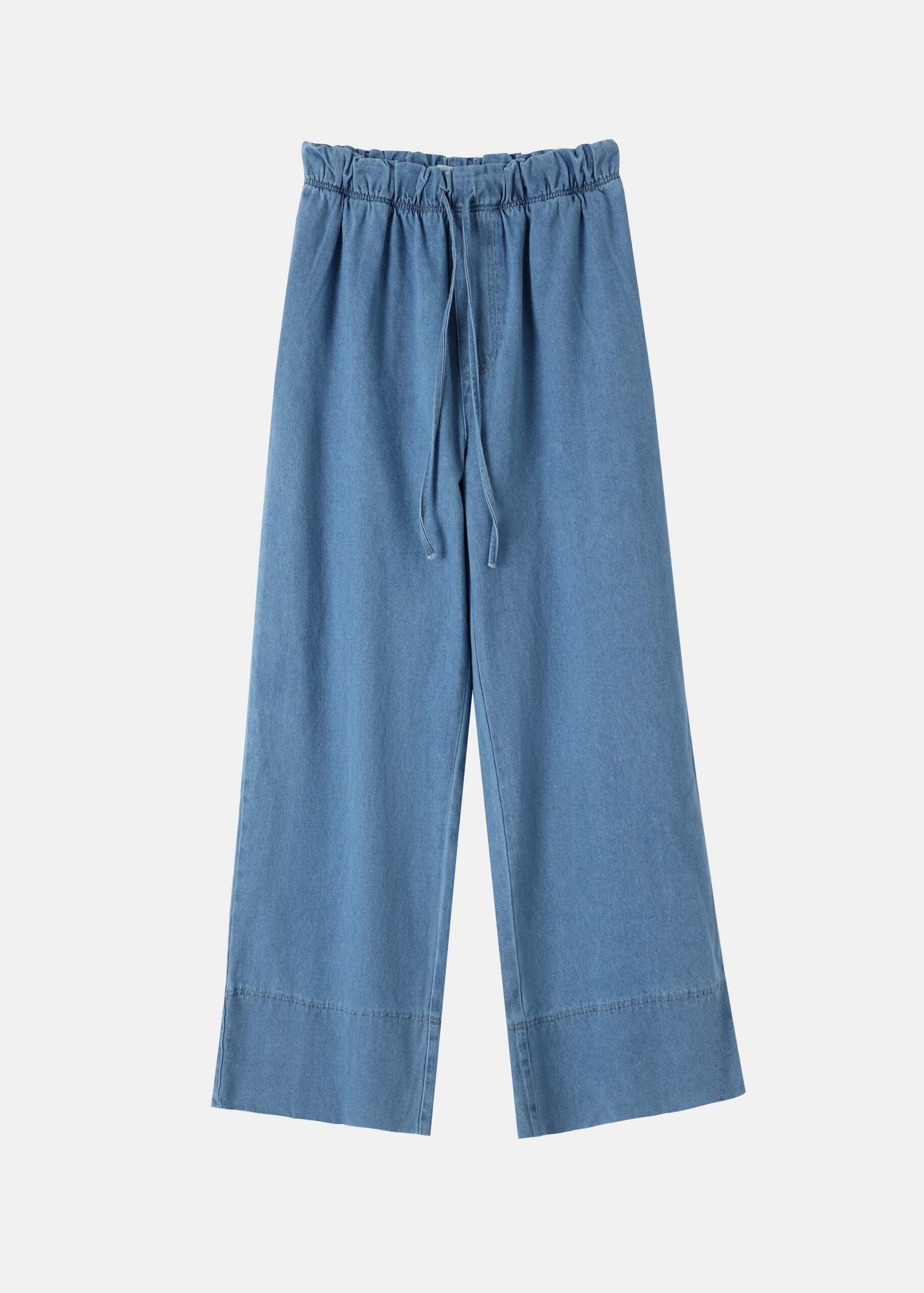 بنطلون نسائي, جينز, wide-leg, خصر مطاطي مع حبل للربط من الامام, جيوب من الامام والخلف, انيق وعملي