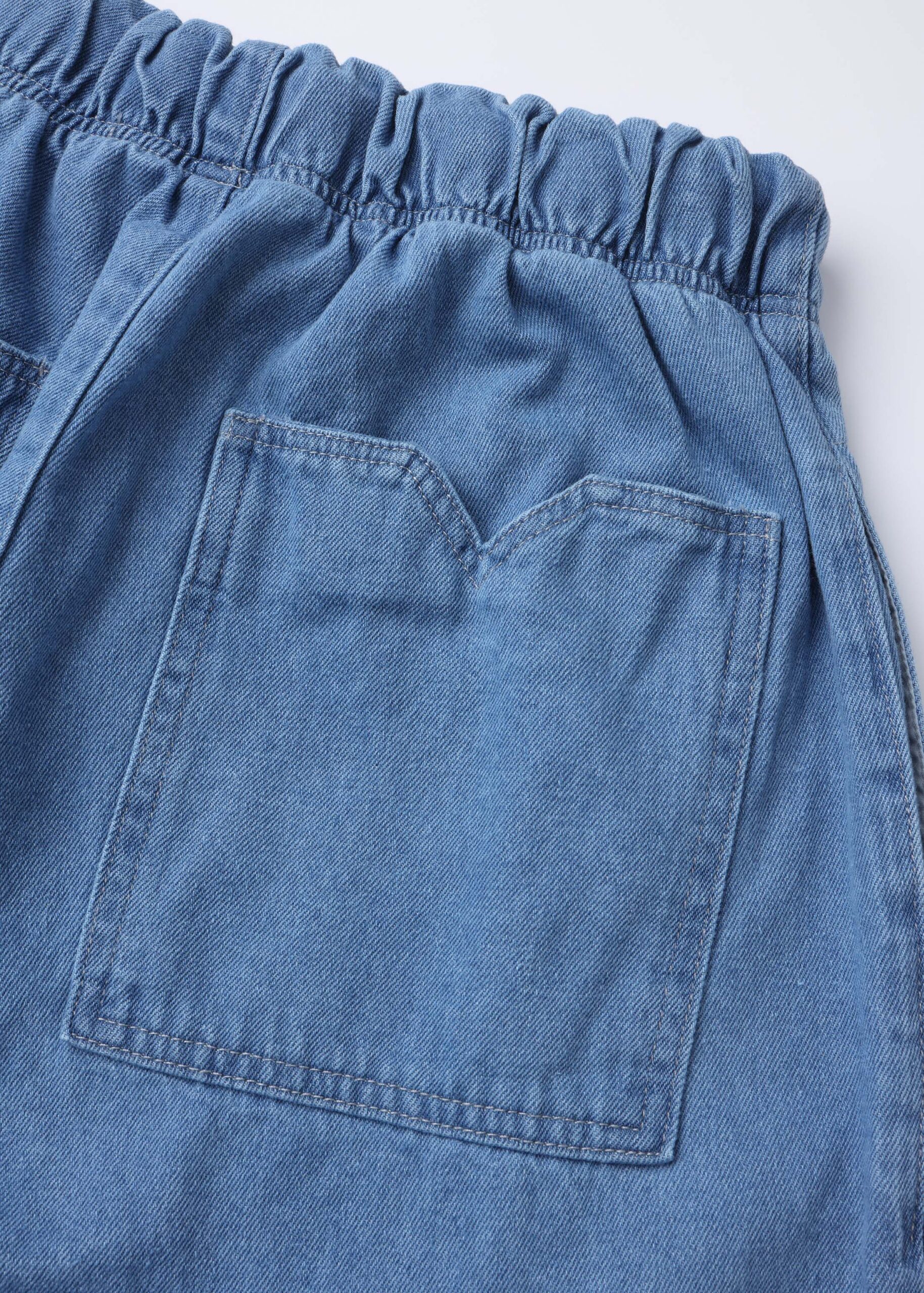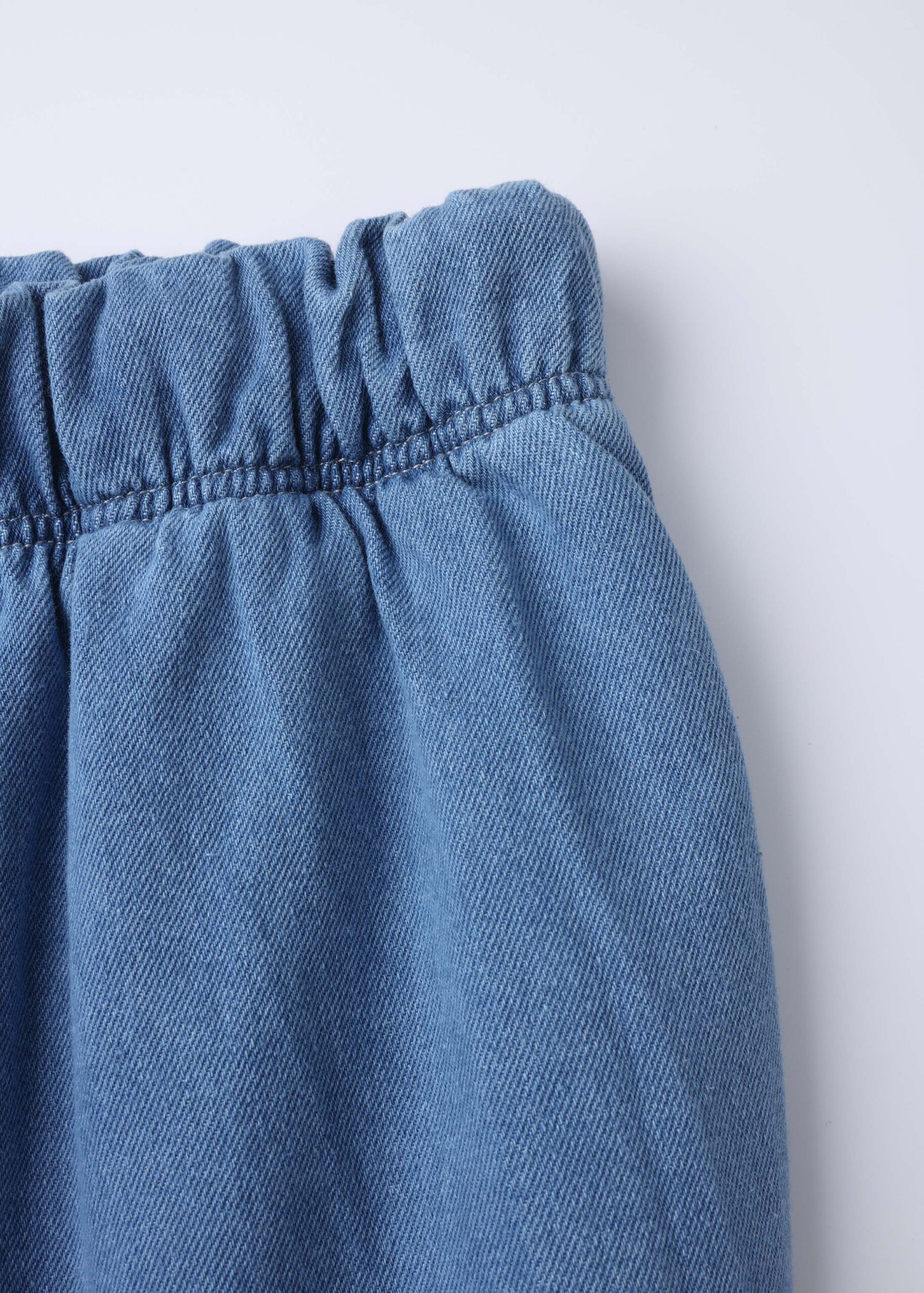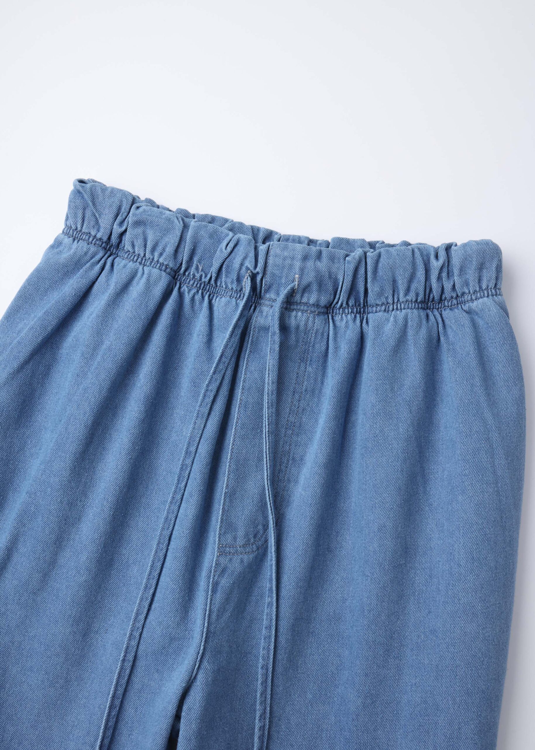 بنطلون نسائي, جينز, wide-leg, خصر مطاطي مع حبل للربط من الامام, جيوب من الامام والخلف, انيق وعملي