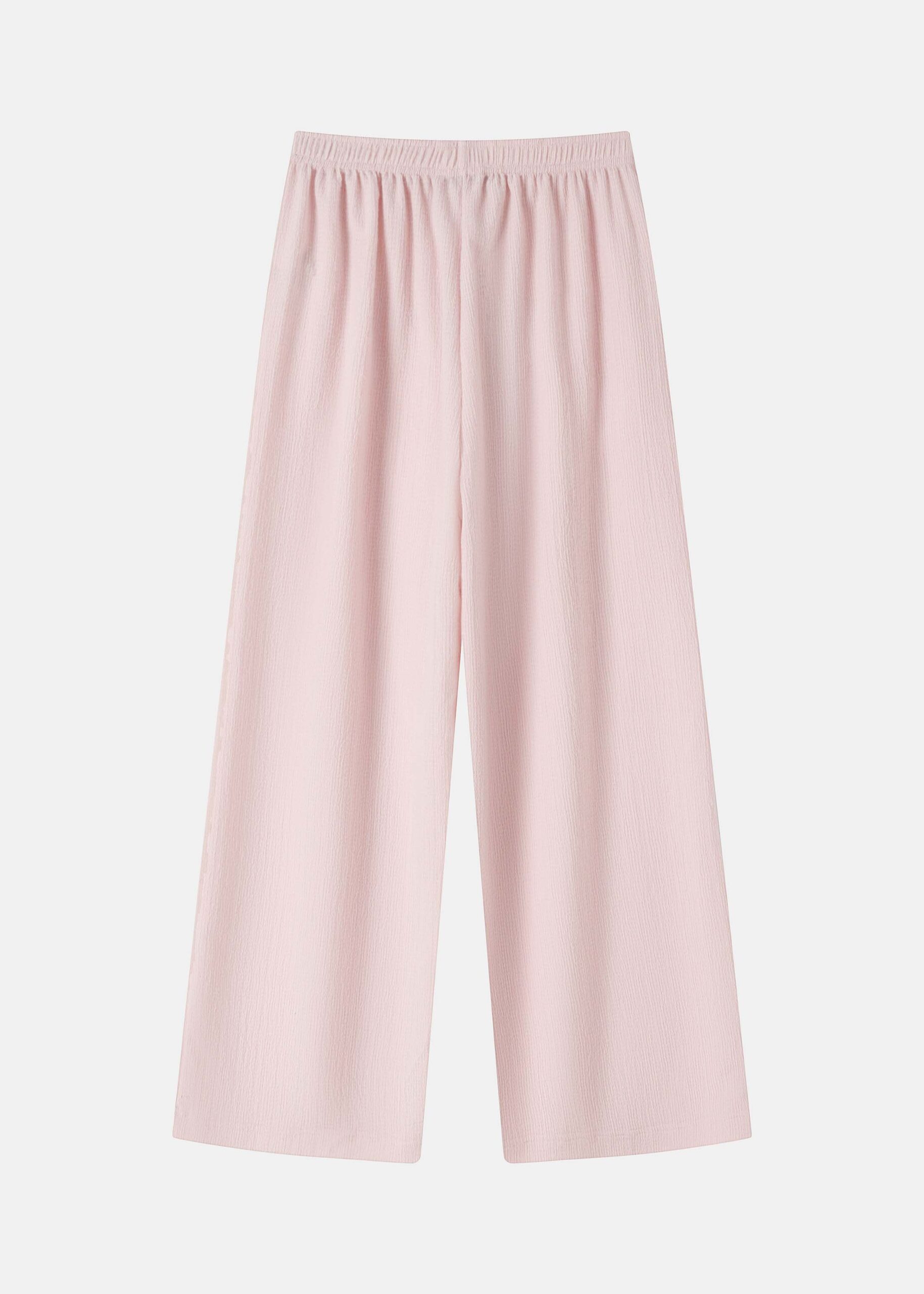 بنطلون نسائي, wide-leg, نسيج بنقش, خصر مطاطي, مريح وعملي
