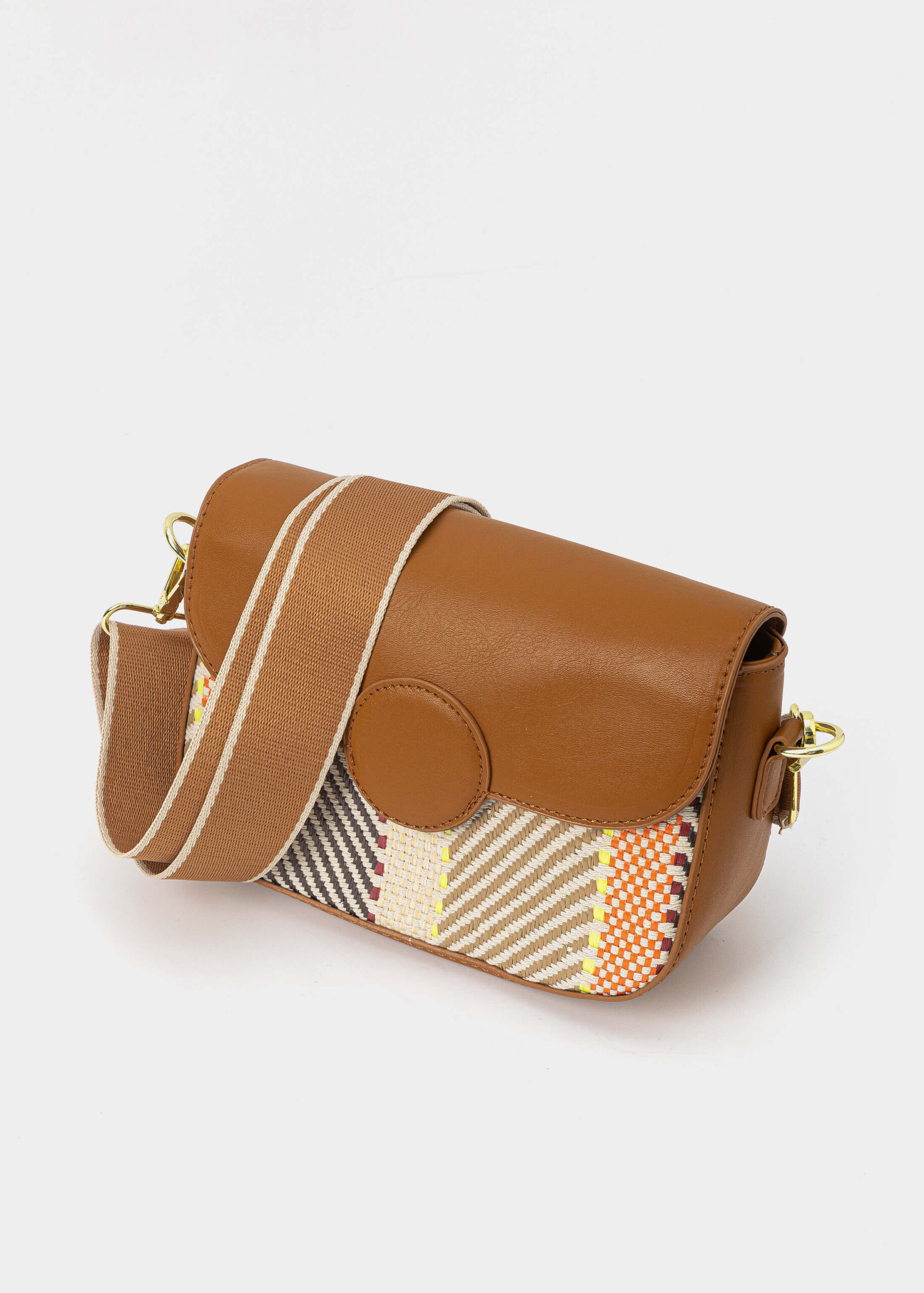 حقيبة نسائي, جلد, تصميم مطرز من الامام, زر من الامام للاغلاق, سحاب من الاعلى,حزام يد قابل للتعديل, انيق وعصري