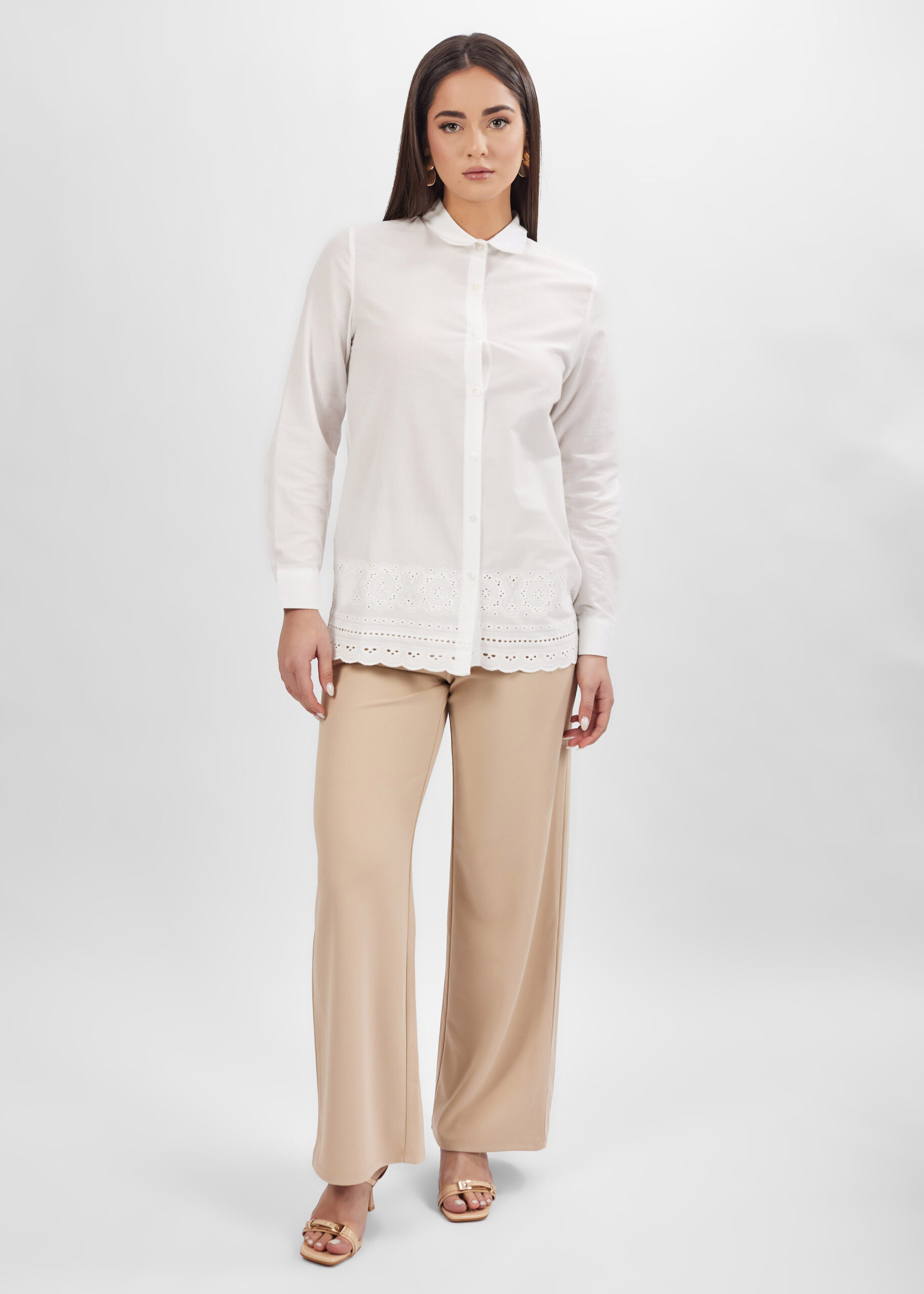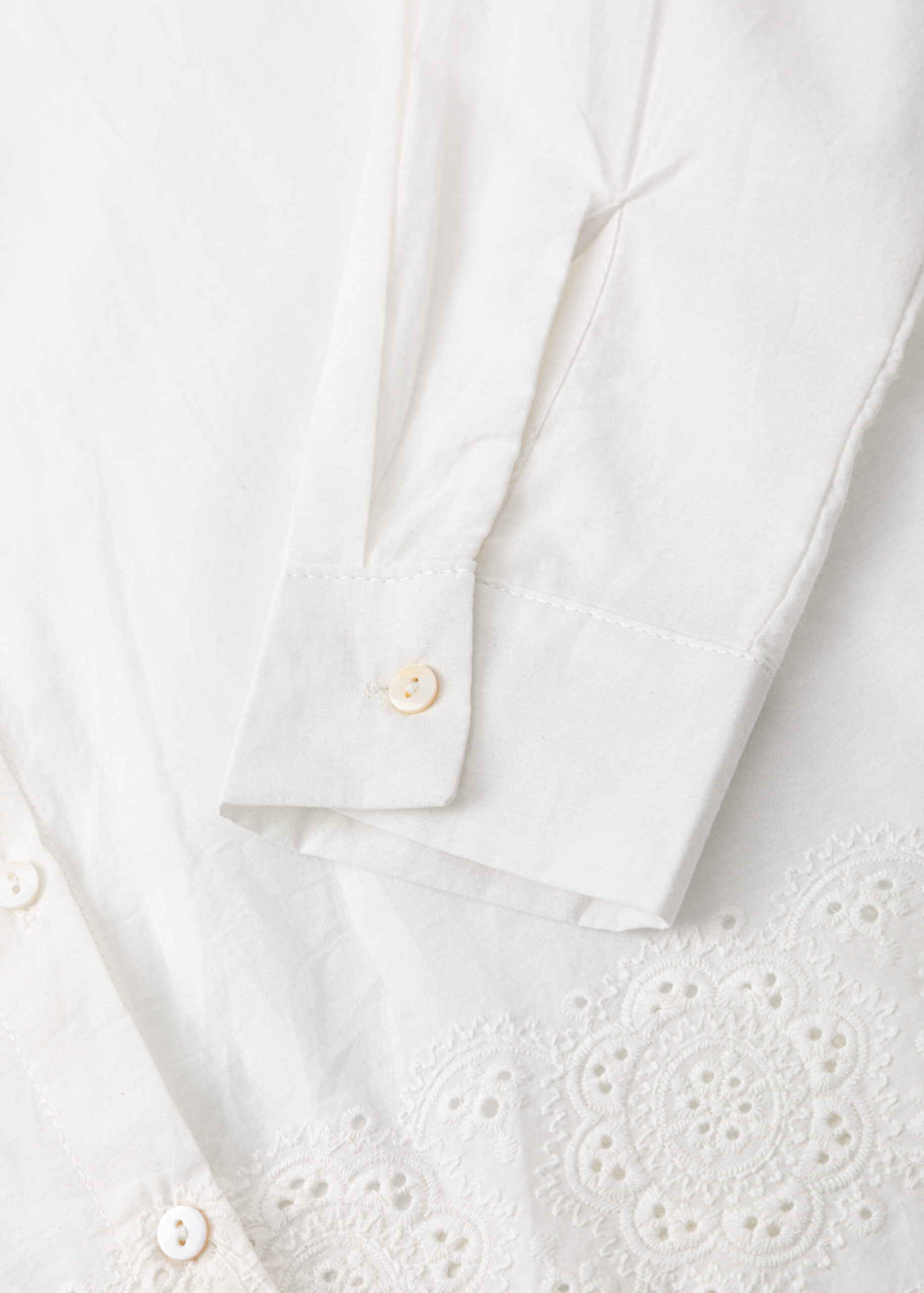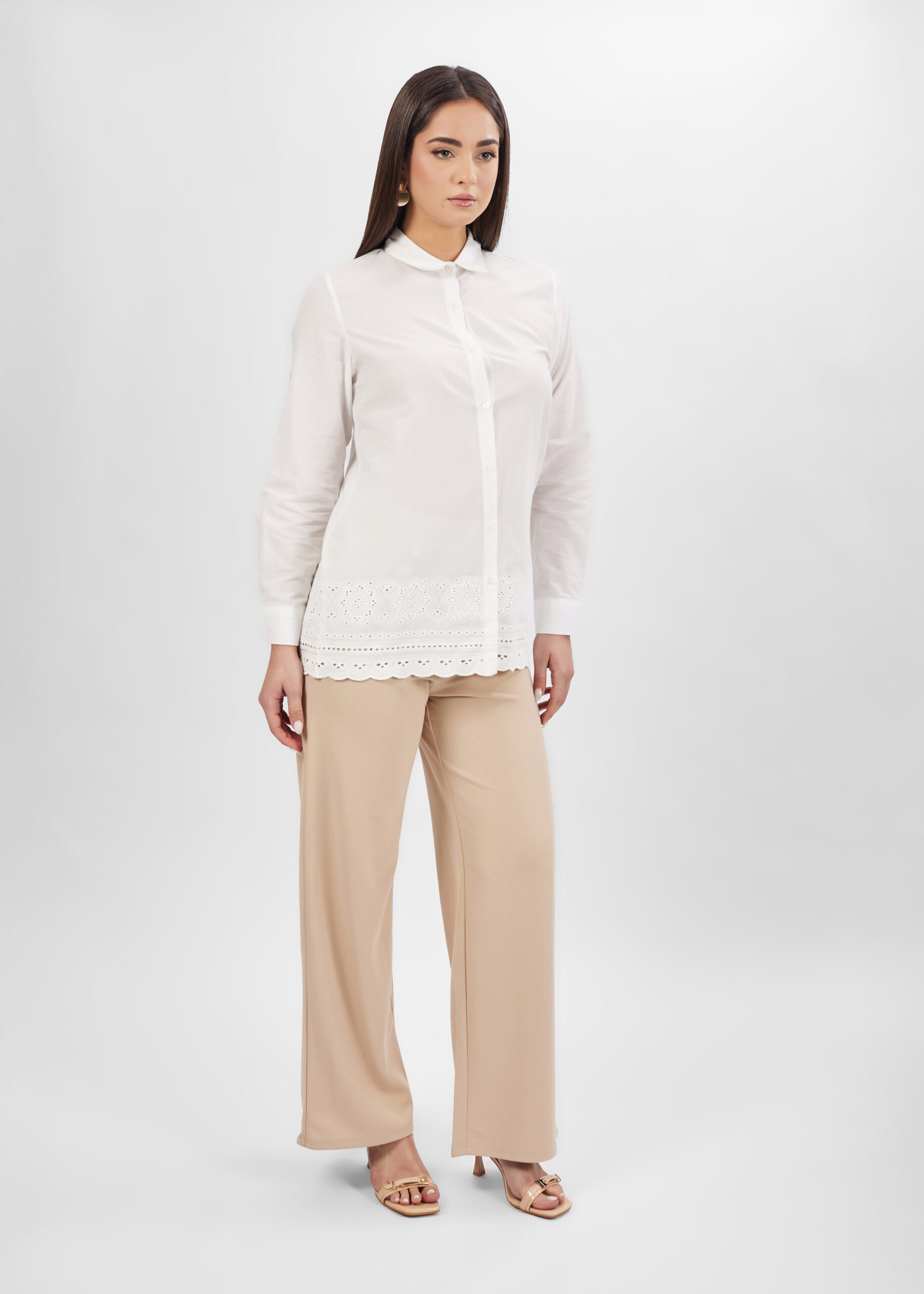 قميص نسائي, مزخرف, اكمام طويلة مع معصم ضيق, ازرار من الامام للاغلاق, ياقة مثنية مع زر من الامام, انيق وعملي