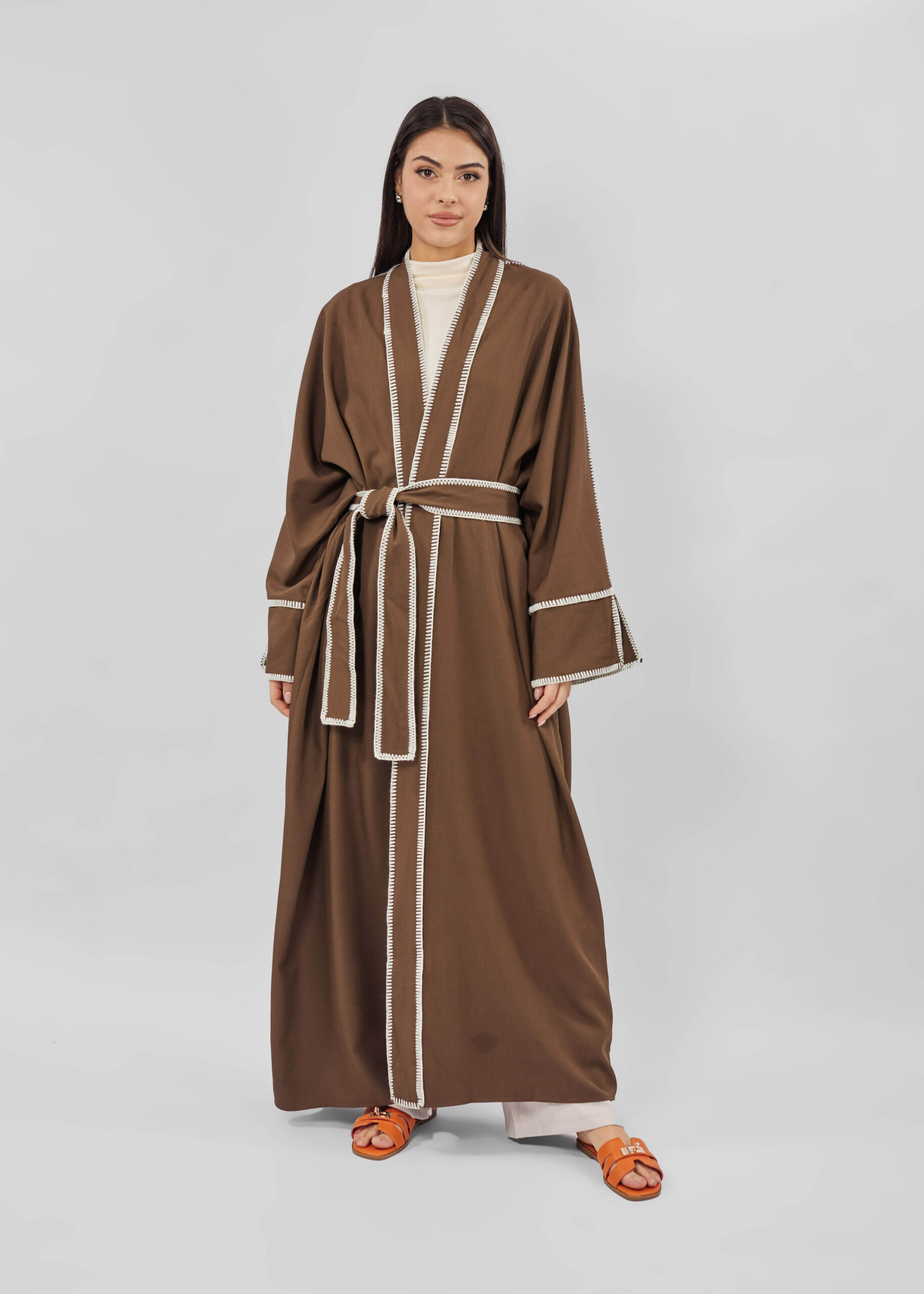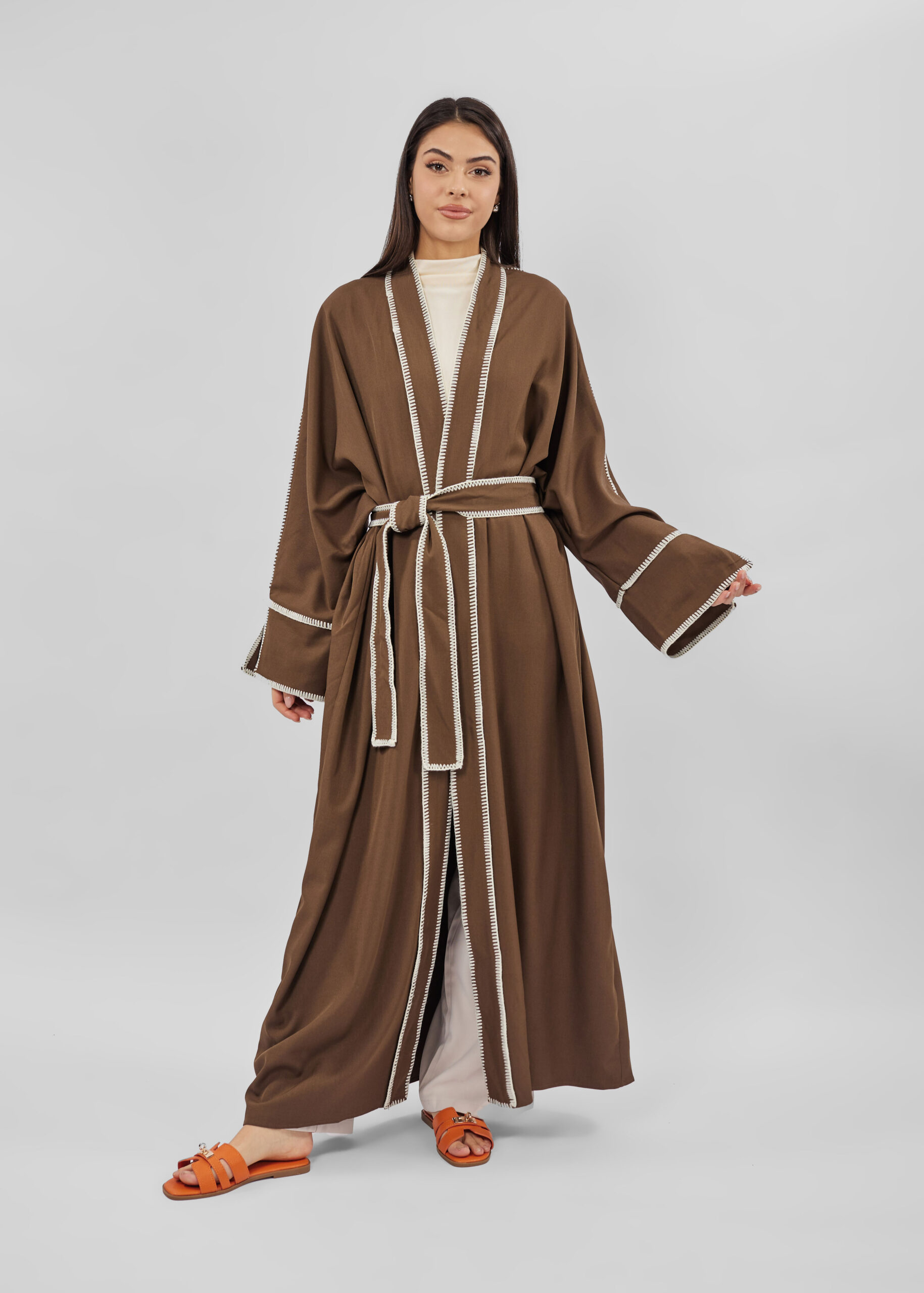 عباية نسائي, مطرزة الأطراف, مفتوحة, حزام للربط على الخصر, اكمام طويلة, انيقة وعملية