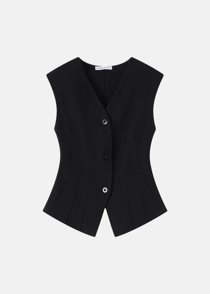 فيست نسائي, Fitted, ياقة سبعة, بدون اكمام, ازرار من الامام للاغلاق, فتحة من اسفل الطرف الامام, انيق وعصري