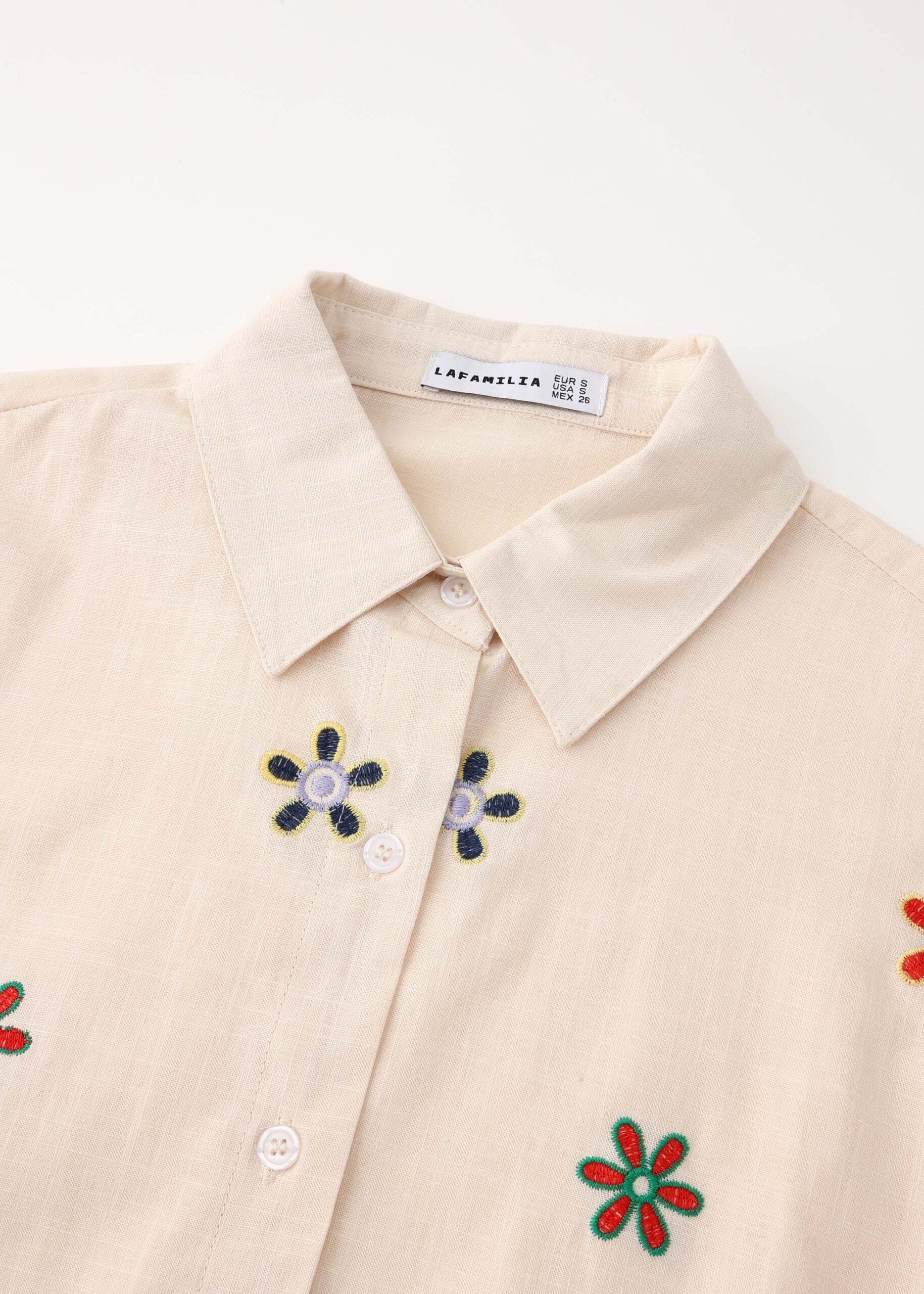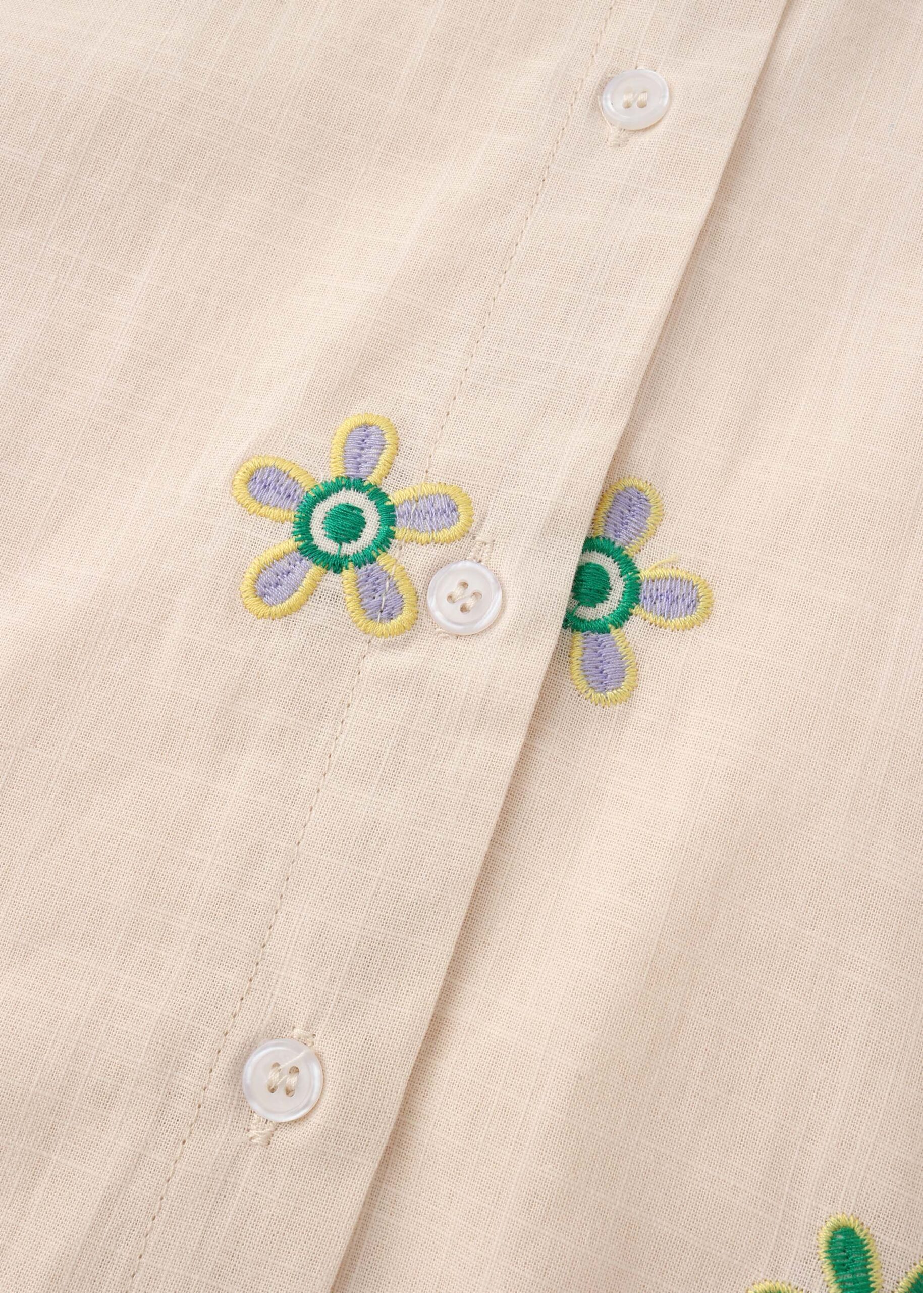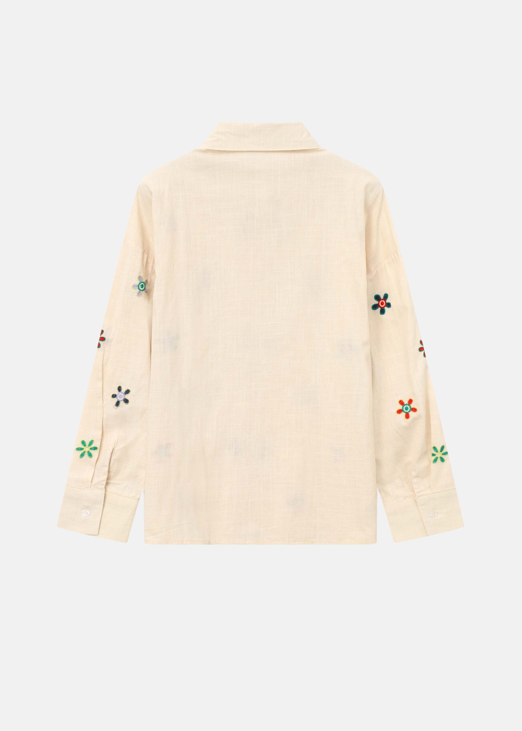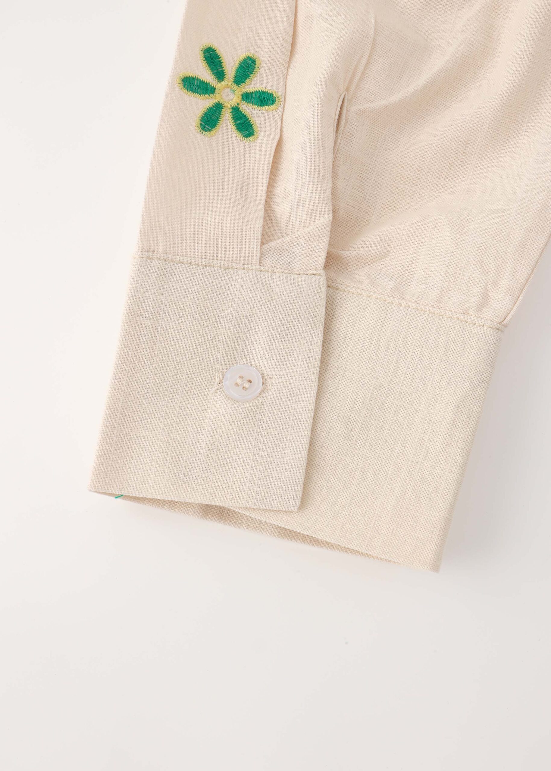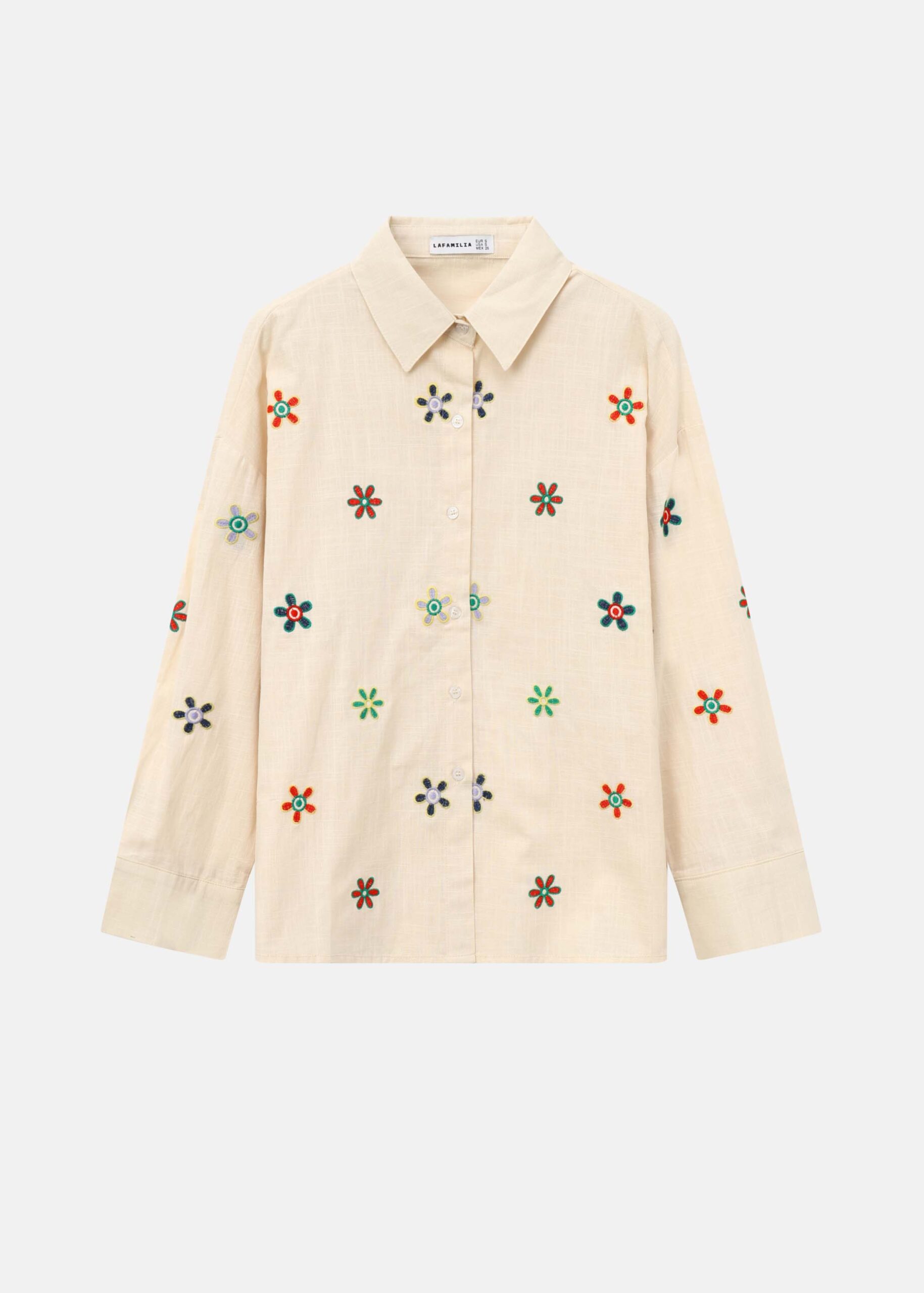 قميص نسائي, مطرز بالورود, ازرار من الامام للاغلاق, ياقة مثنية مع زر من الامام, اكمام طويلة مع معصم ضيق, انيق بألوان زاهية
