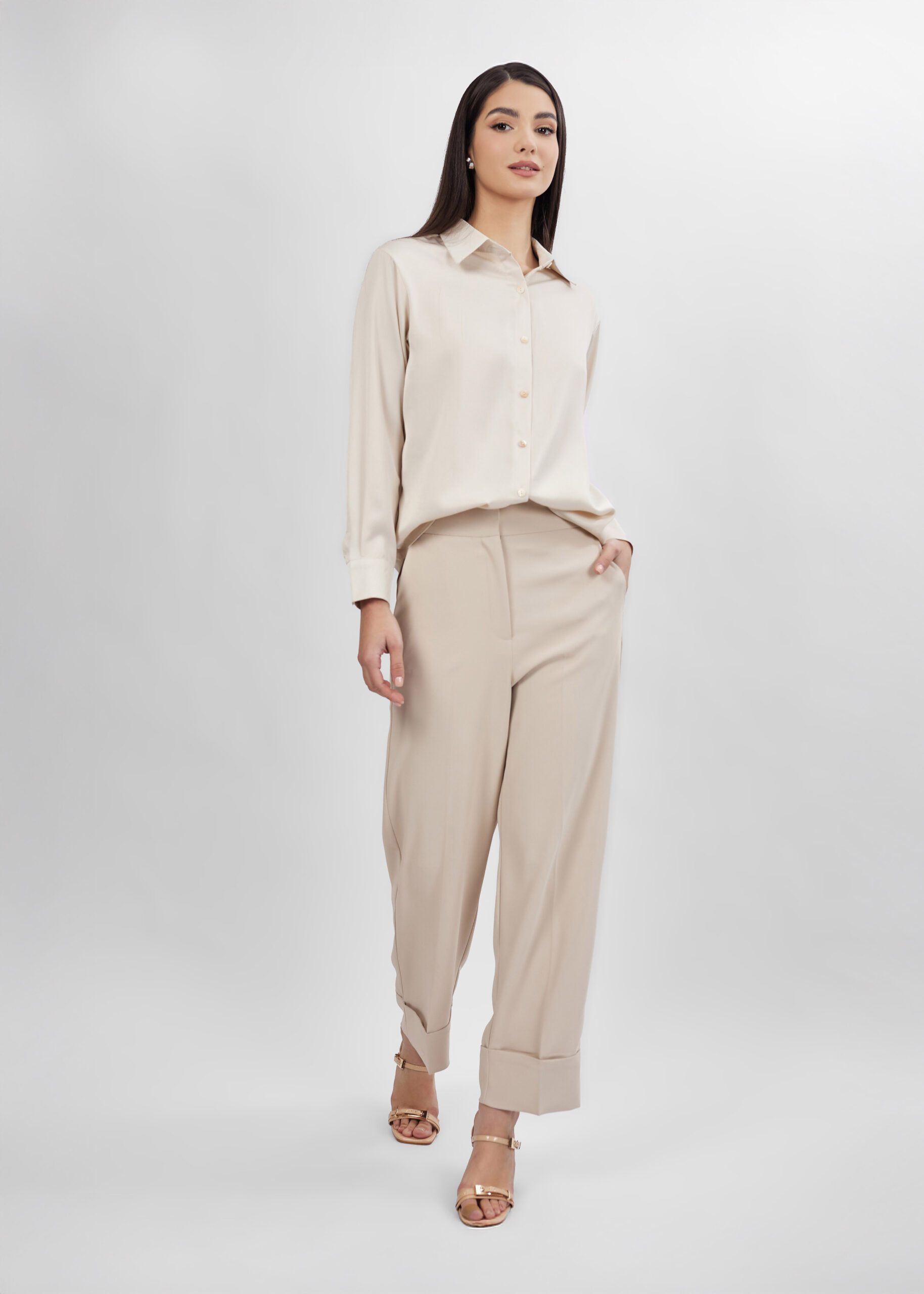 بنطلون نسائي, رسمي, خصر عالي, زر وسحاب من الامام للاغلاق, جيوب من الامام والخلف, انيق وعملي