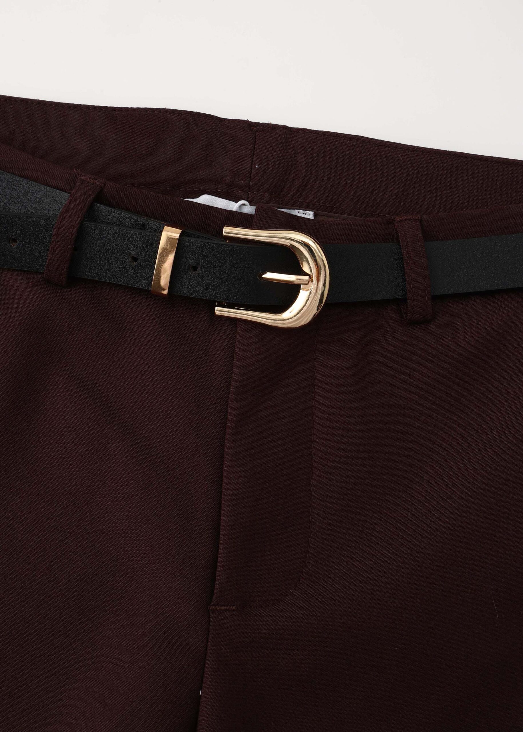 بنطلون نسائي, رسمي, زر وسحاب من الامام للاغلاق, جيوب من الامام والخلف, حزام جلد, انيق وعصري