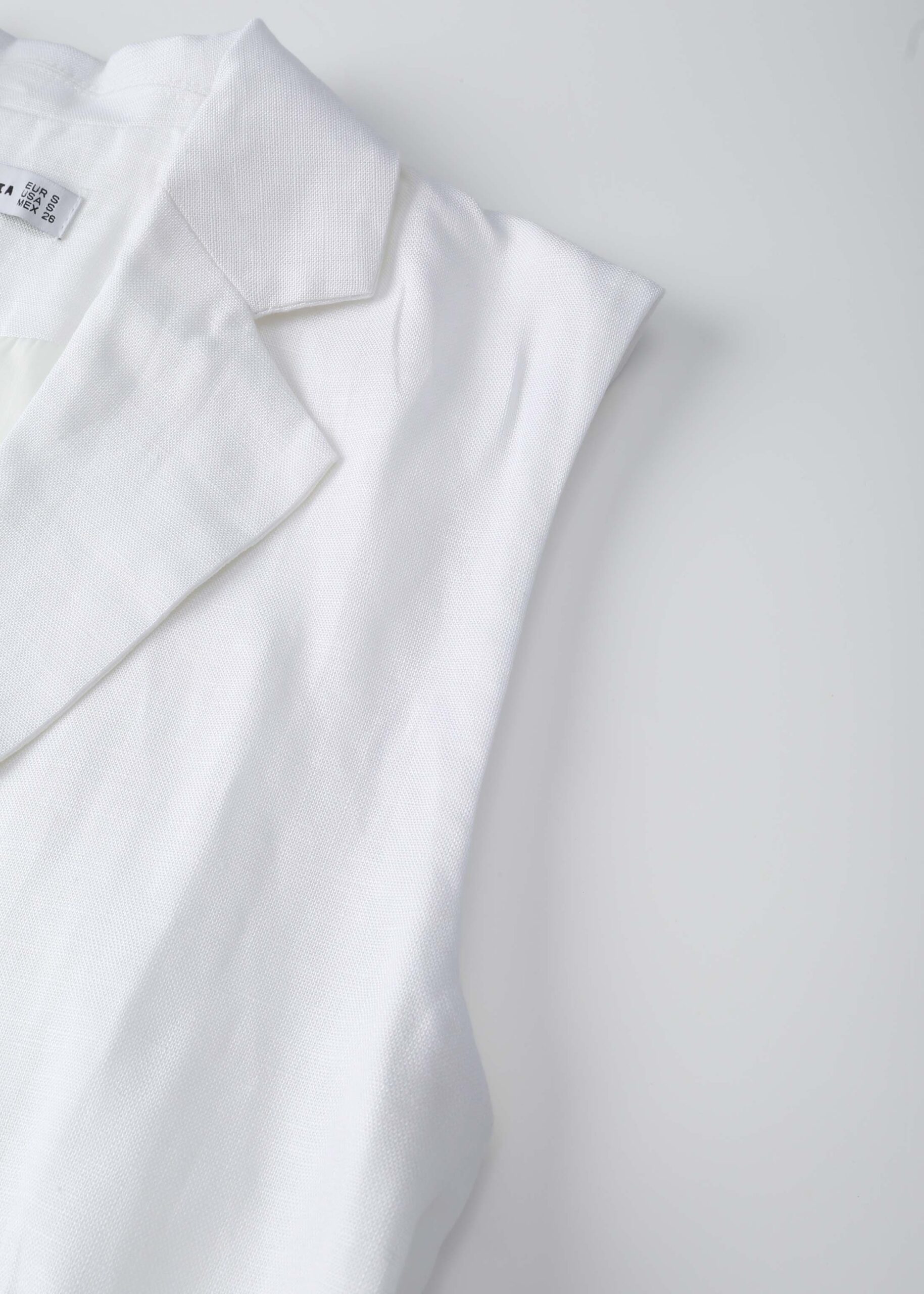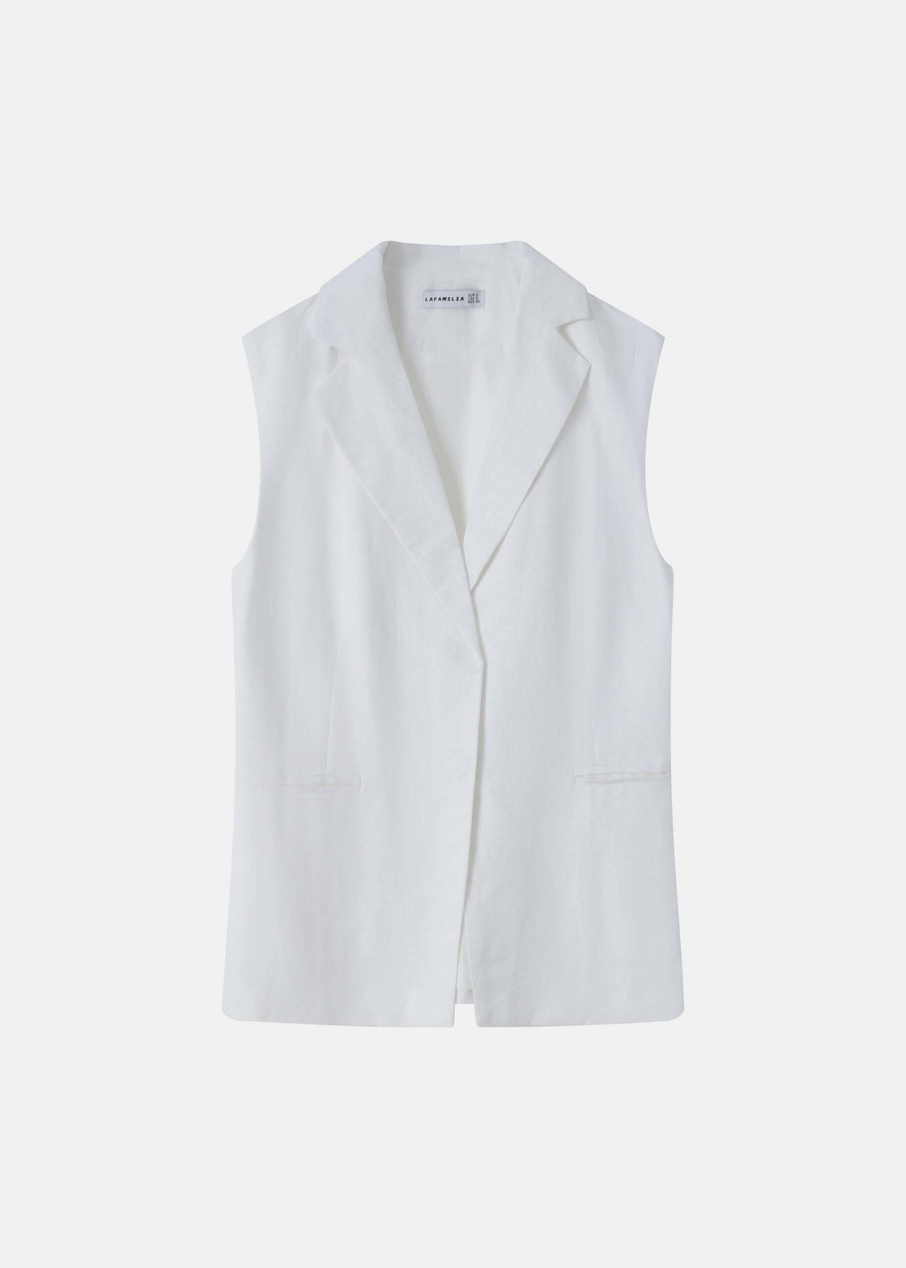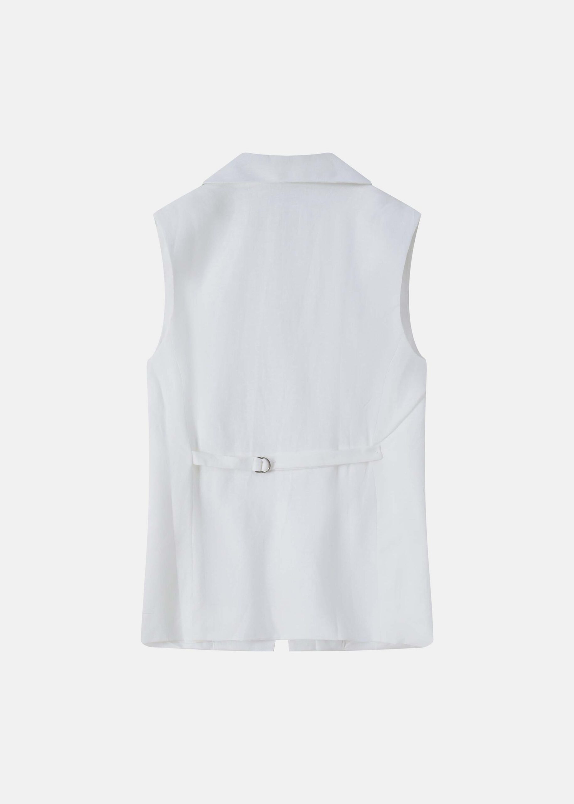 فيست نسائي, ياقة مثنية سبعة من الامام, بدون اكمام, جيوب من الامام, حزام قابل للتعديل مع مشبك من الخلف, ازرار مخفية من الامام, انيق وعصري