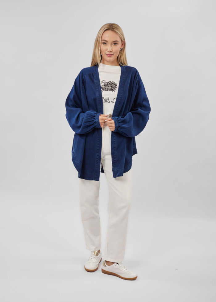 كارديجان نسائي, جينز, سادة, مفتوح, اكمام طويلة مع معصم ضيق, انيق وعملي