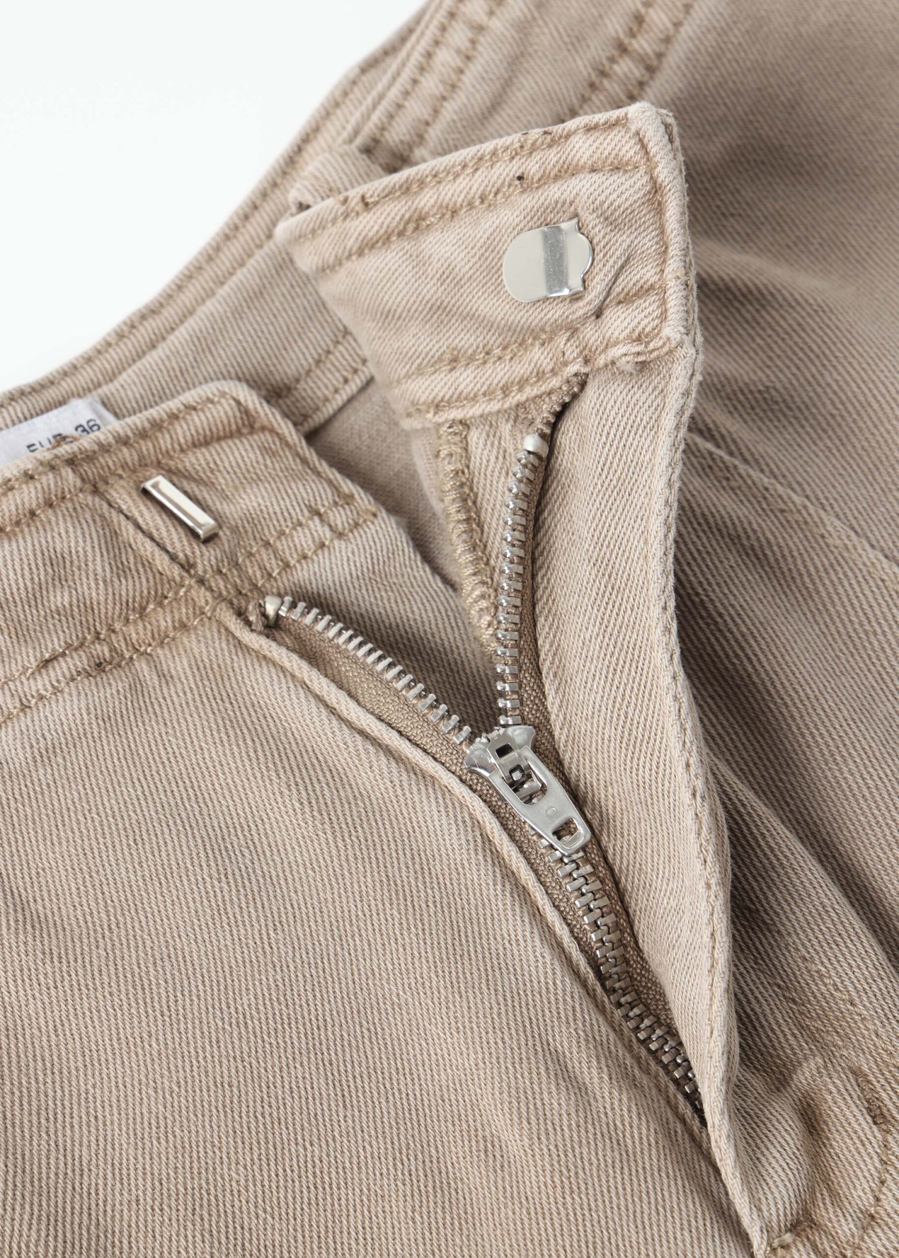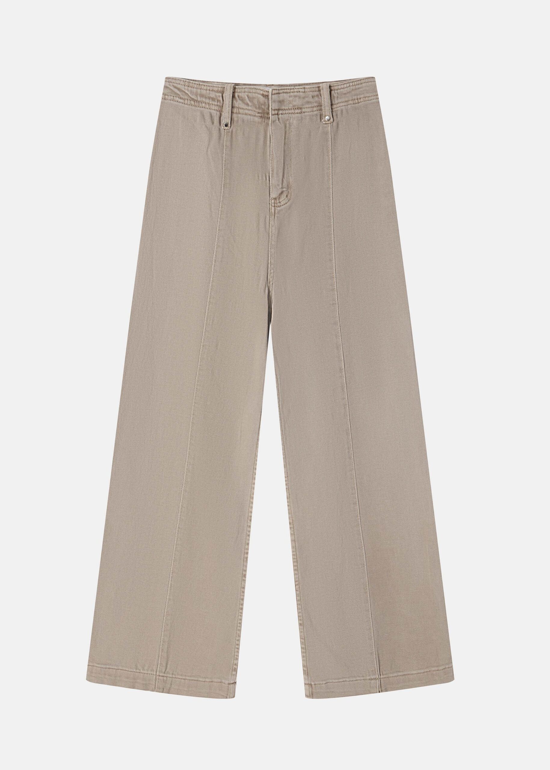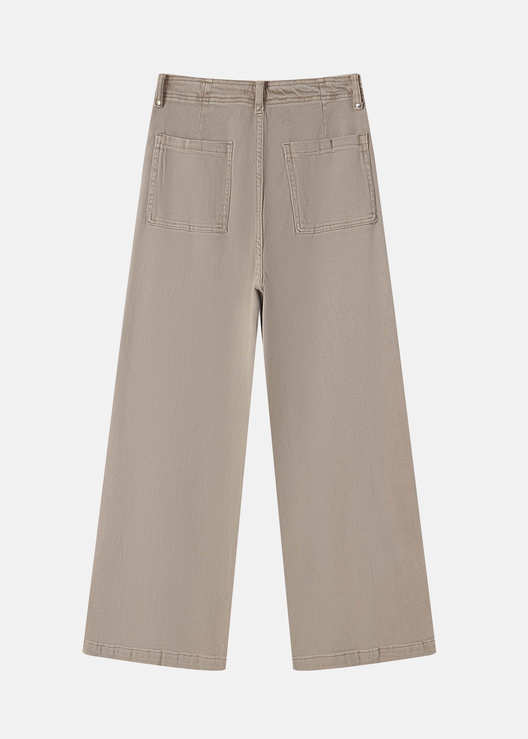 Women trouser, jeans, high-waist, front button and zipper closure, back patch pockets, unique and modern