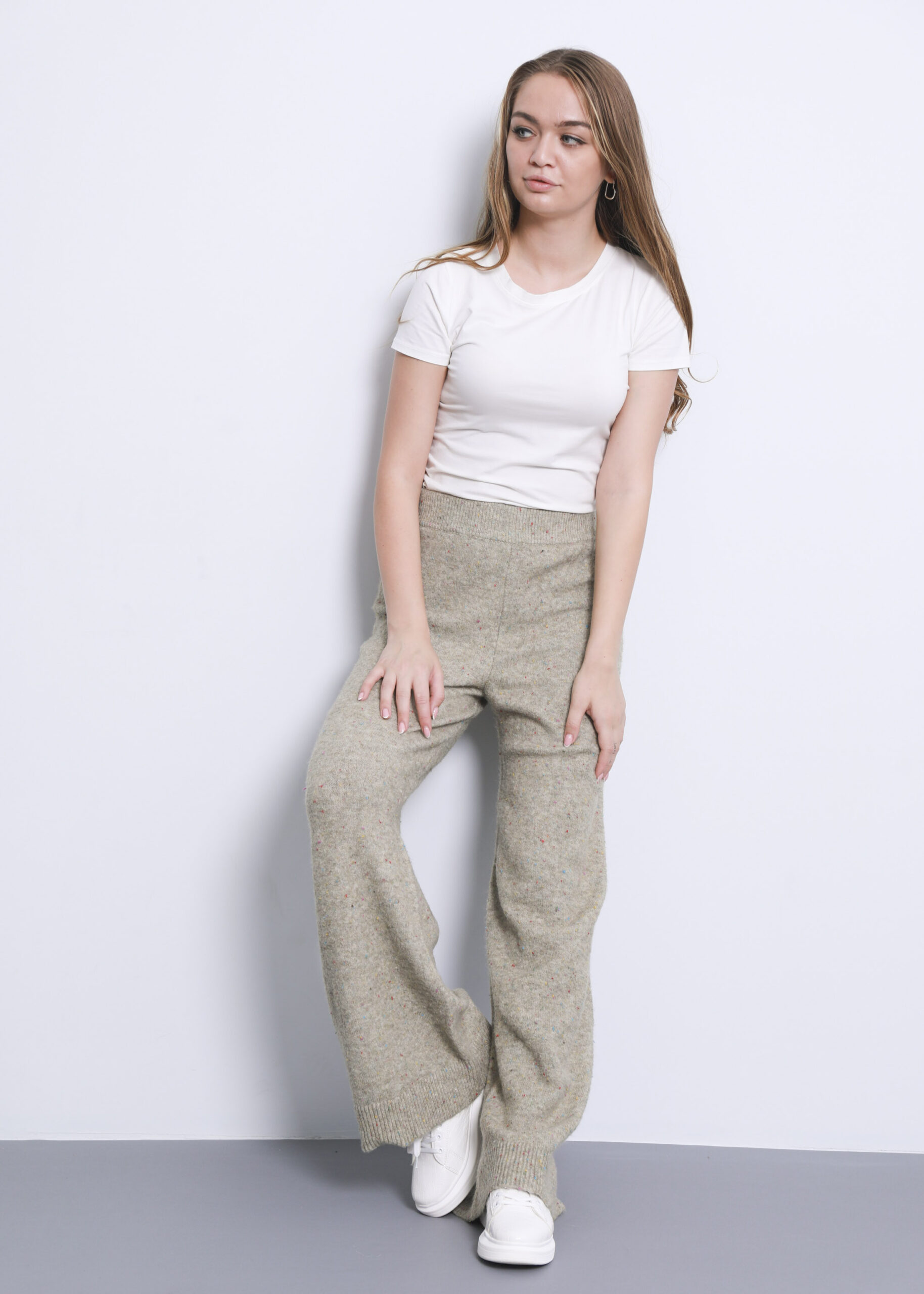 بنطلون نسائي, تصميم محبوك, خصر مطاطي, ساق واسعة, انيق ودافيء, 74% اكريليك 22% بوليستر 4% ايلاستين