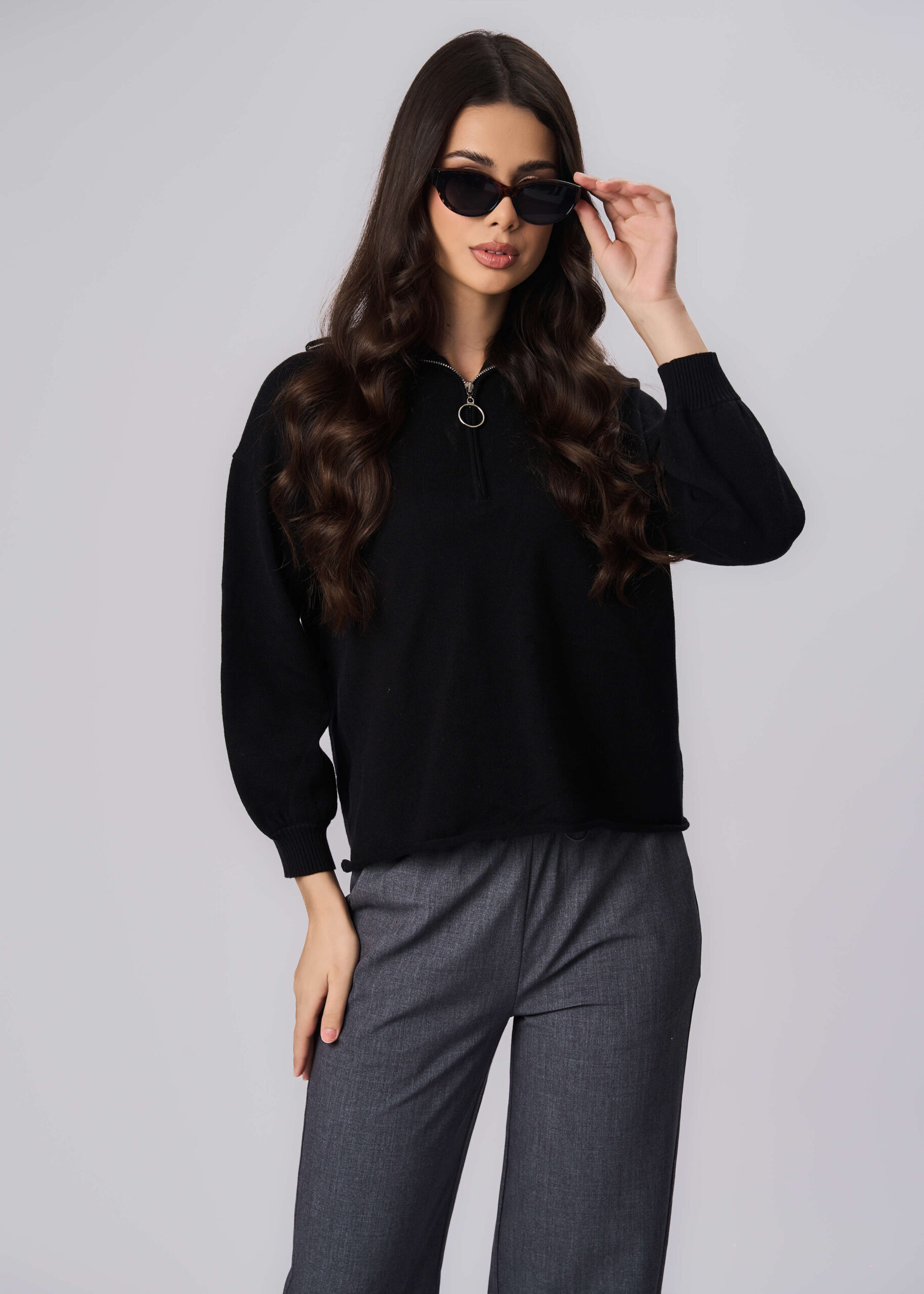 بلوزة نسائي, نسيج محبوك, اكمام طويلة مع معصم ضيق, ياقة مثنية مع سحاب من الامام للاغلاق, انيقة وعصرية