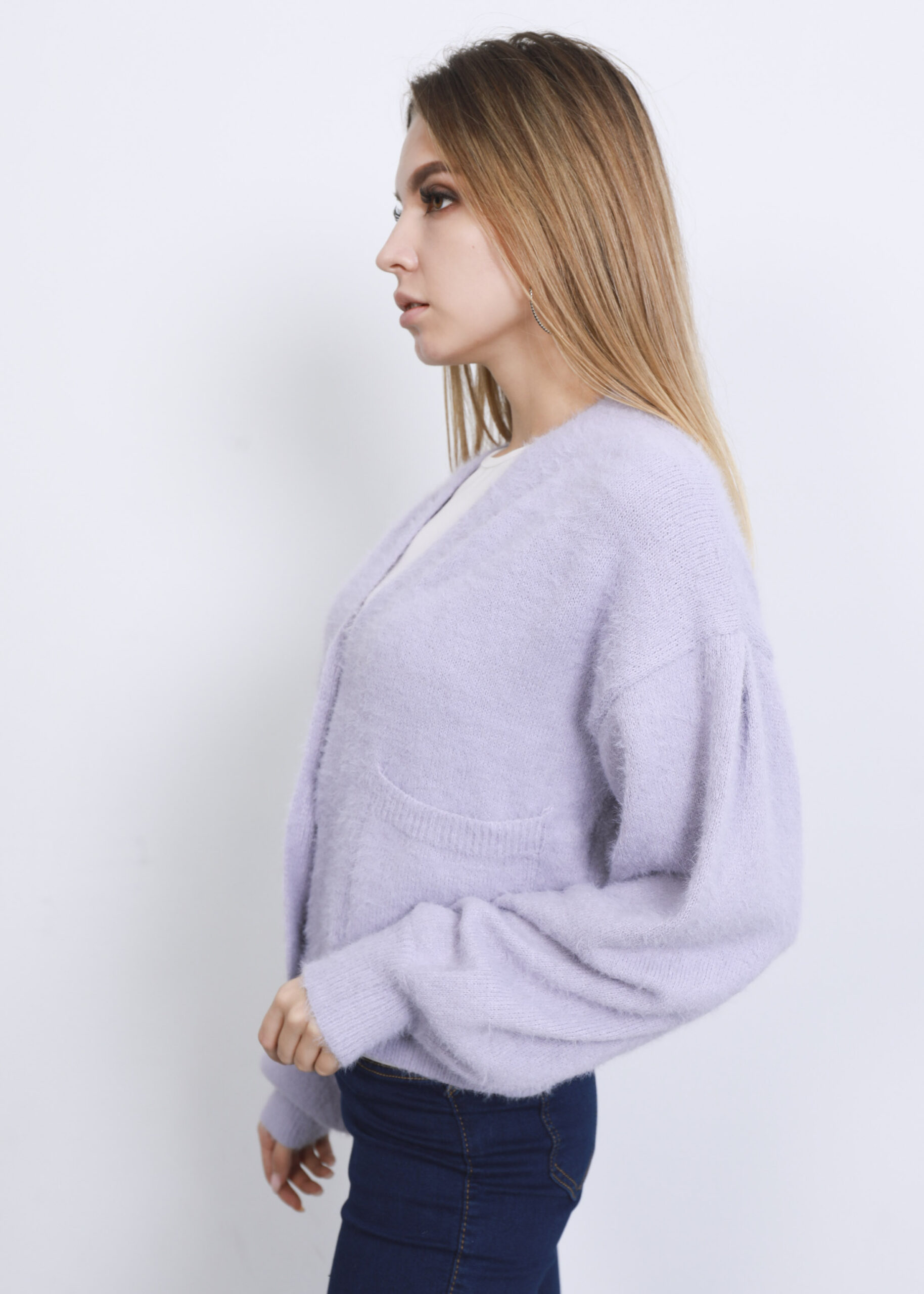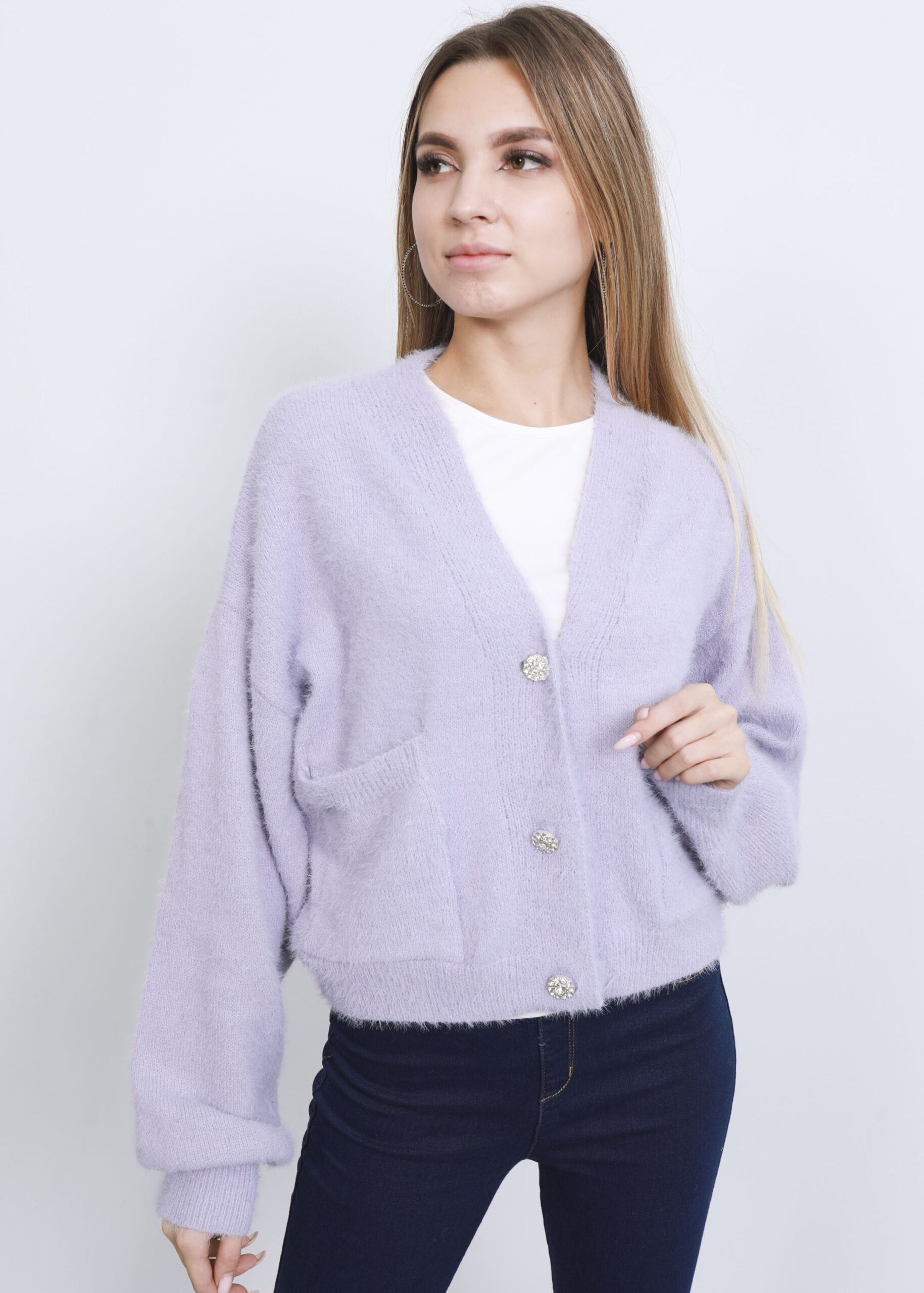 كارديجان نسائي بتصميم وبري محبوك سادة