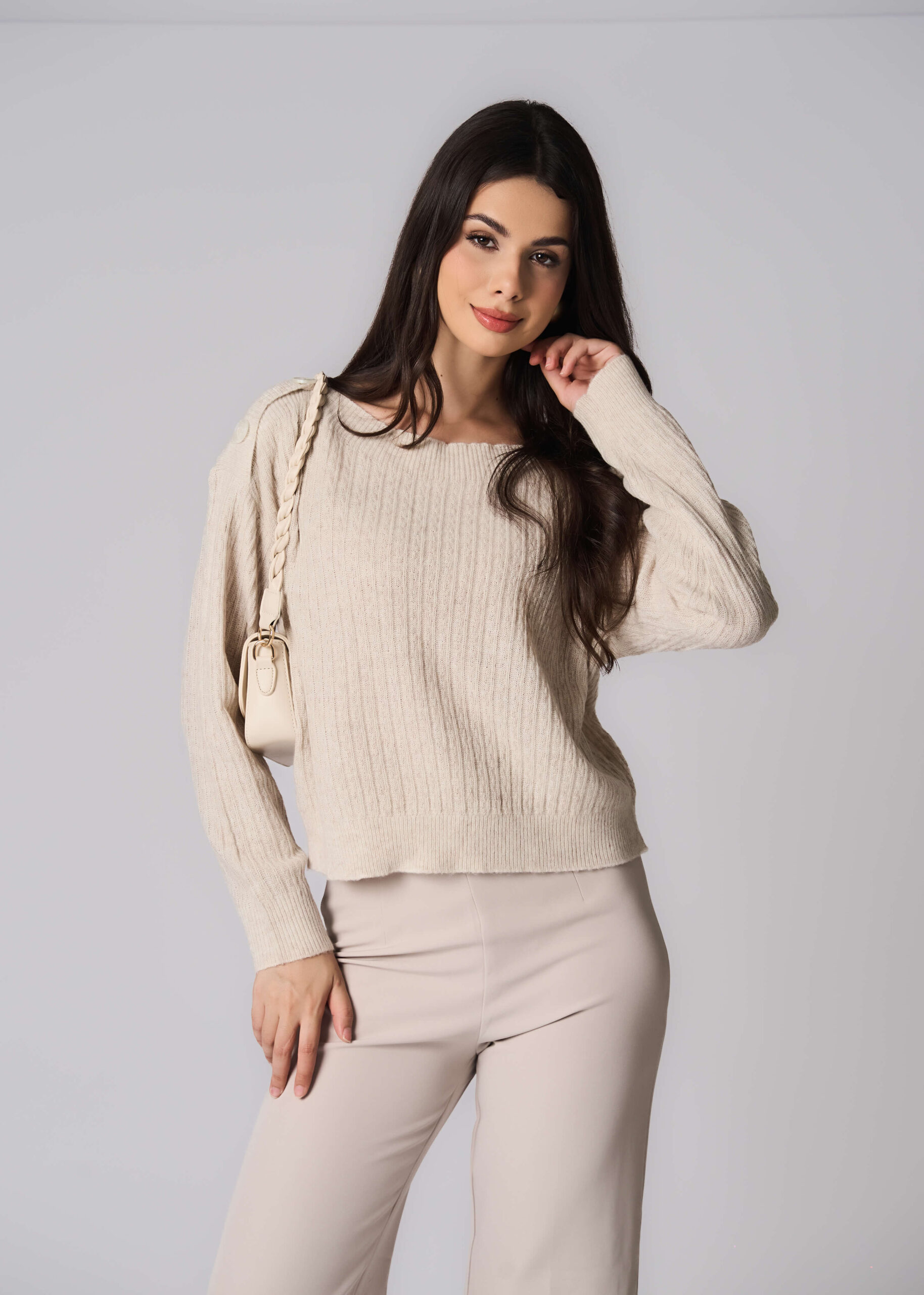 بلوزة نسائي, نسيج محبوك, بنقش, ياقة واسعة مع ازرار جانبية, اكمام طويلة مع معصم ضيق, انيقة وعصرية