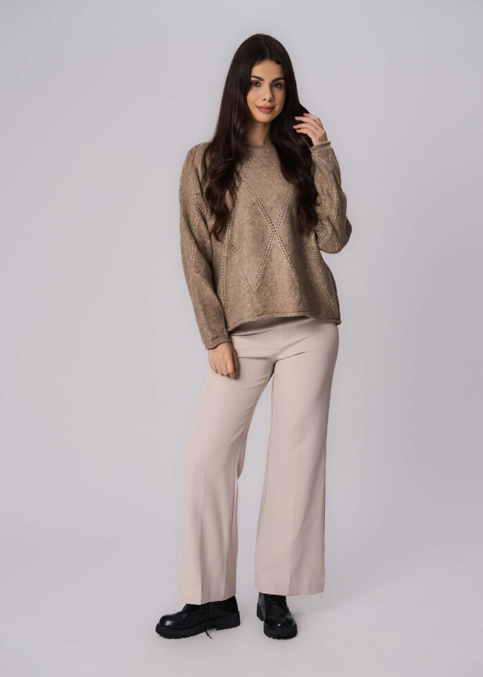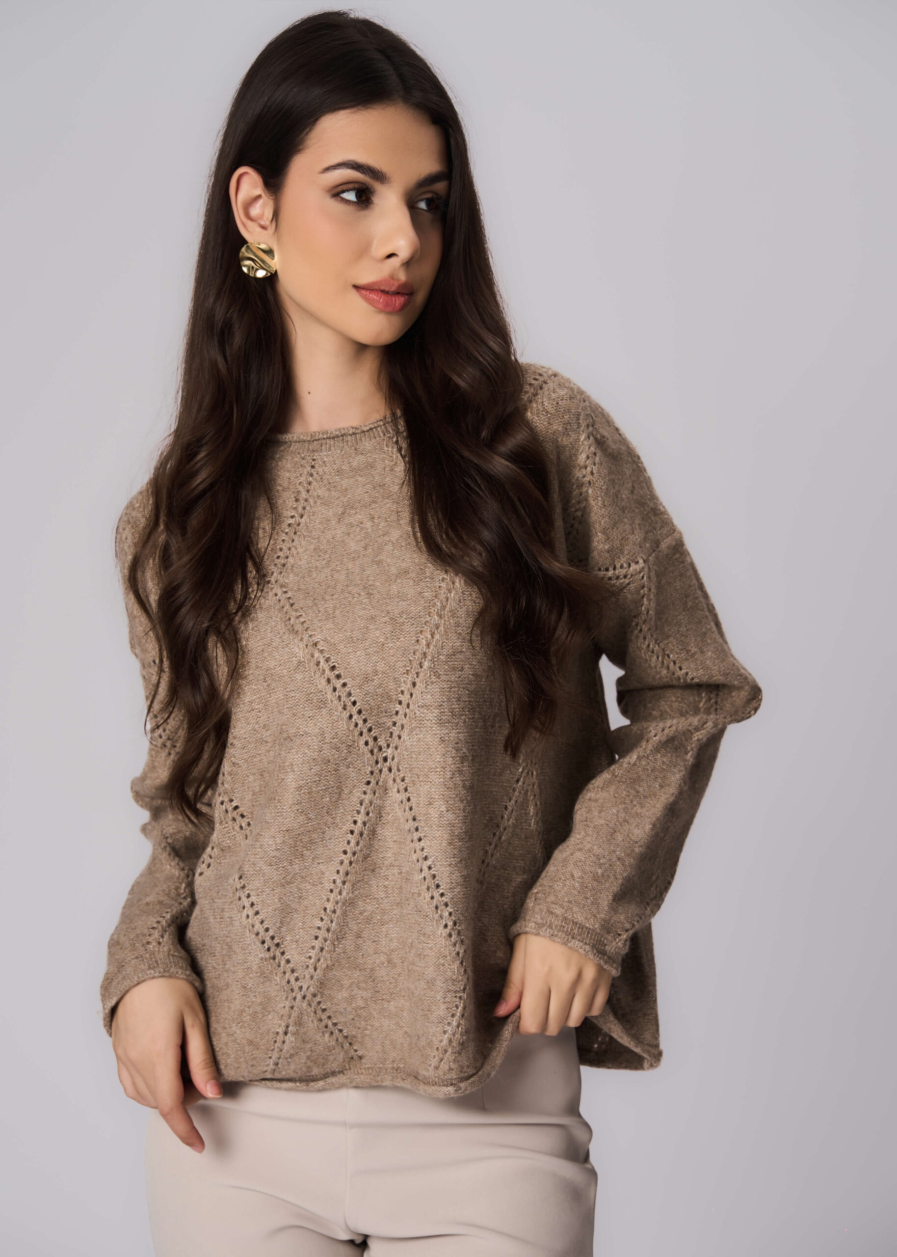 بلوزة نسائي, نسيج محبوك, بنقش, ياقة مدورة, اكمام طويلة, انيقة وعملية