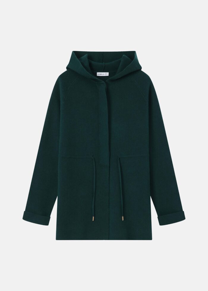 جاكيت نسائي, نسيج محبوك, سادة, طويل, طاقية مع ازرار من الامام للاغلاق, ربطة على الخصر, اكمام طويلة, انيقة وعصري