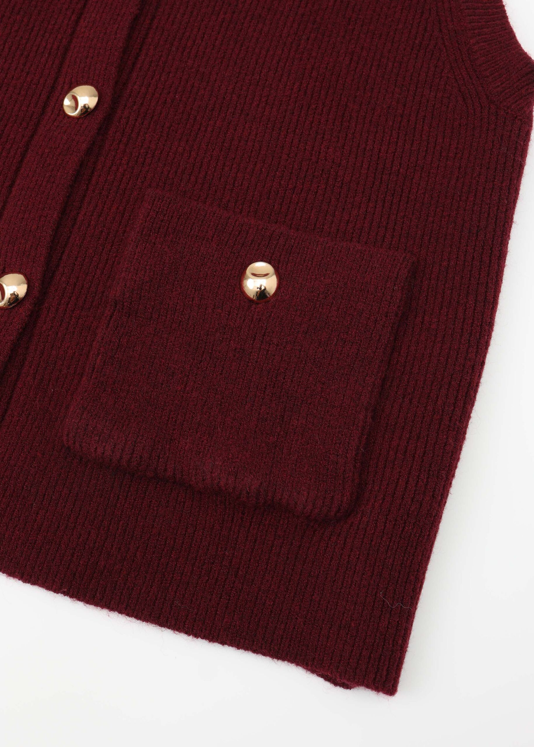 فيست نسائي, نسيج محبوك, سادة, ياقة مدورة, بدون اكمام, ازرار من الامام, جيوب من الامام مزينة بازرار, انيقة ومناسبة مع عدة تنسيقات